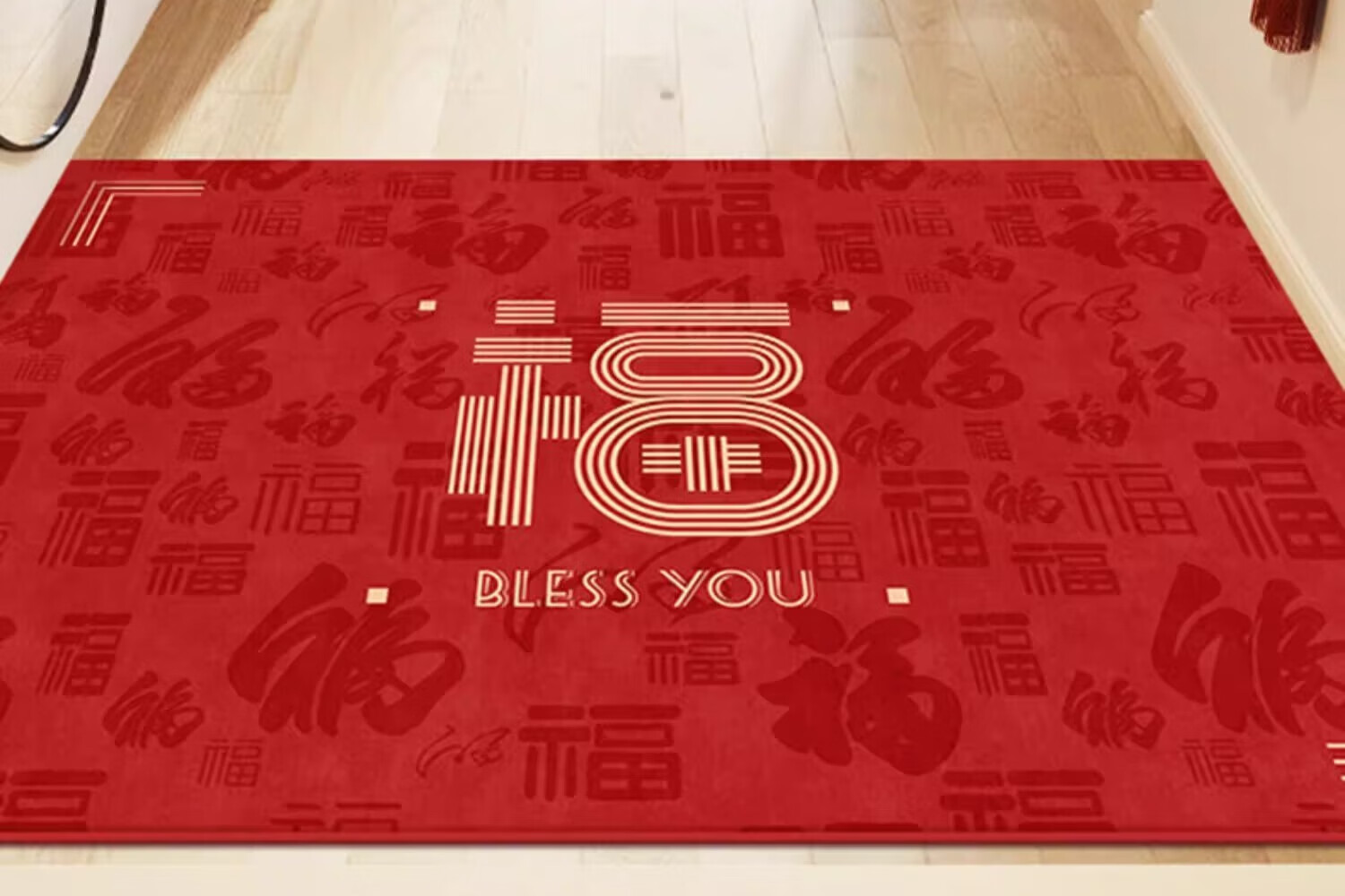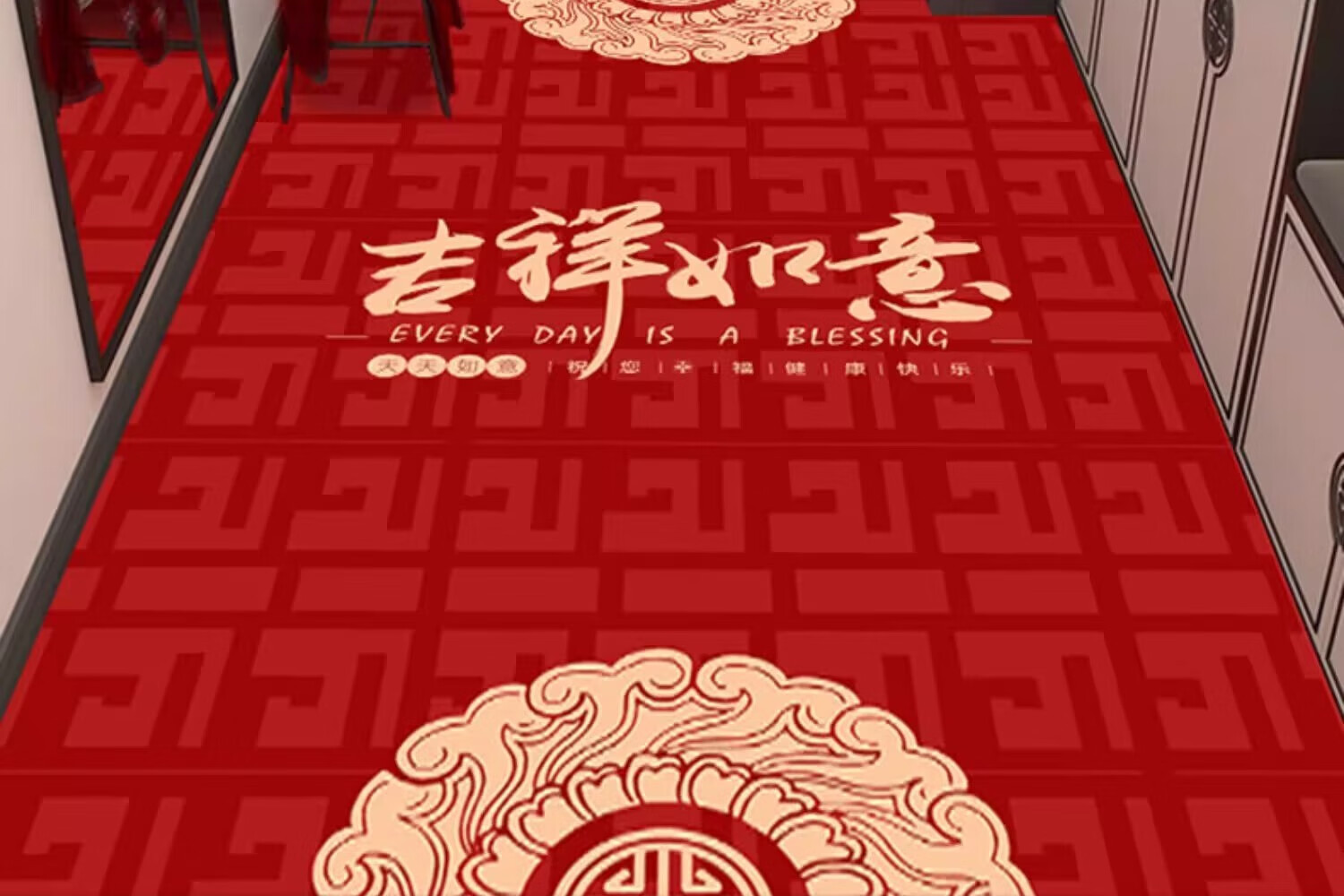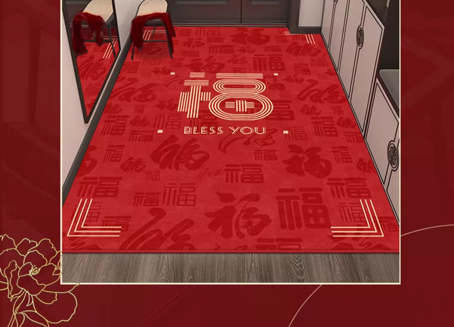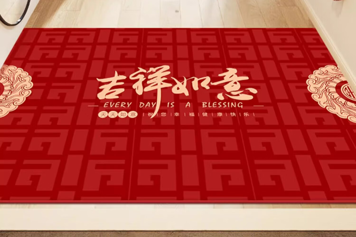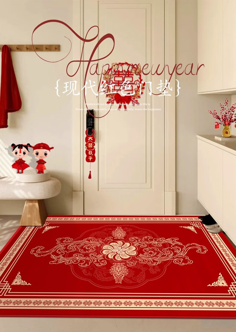 织百佳福字新中式地毯门垫进门地垫入户门垫门口玄关防滑可裁剪喜庆脚垫 扇叶平安喜乐--横版 200*300CM【客厅推荐】