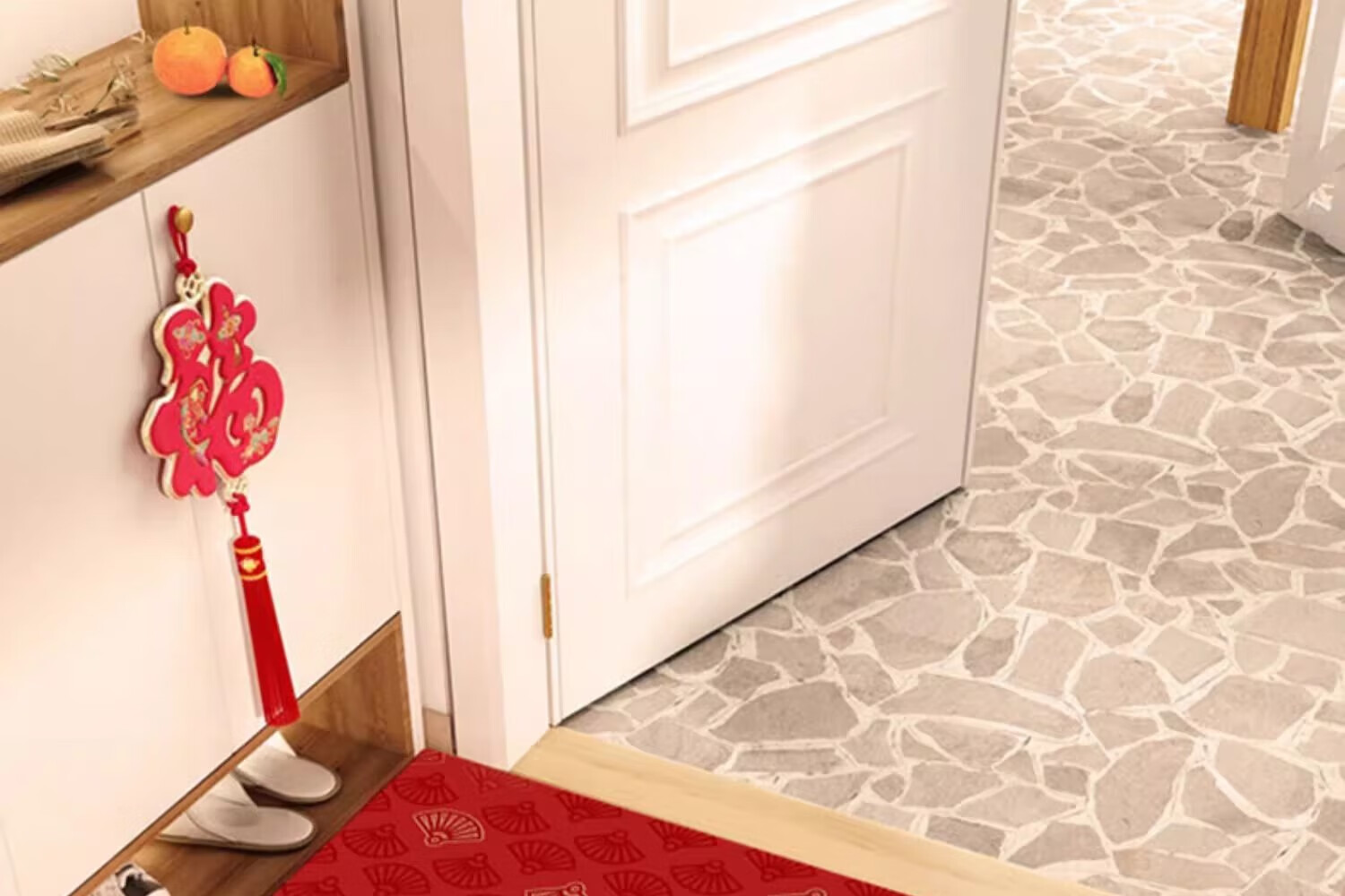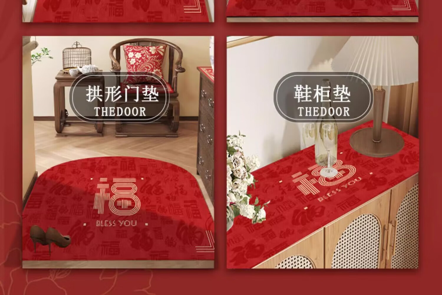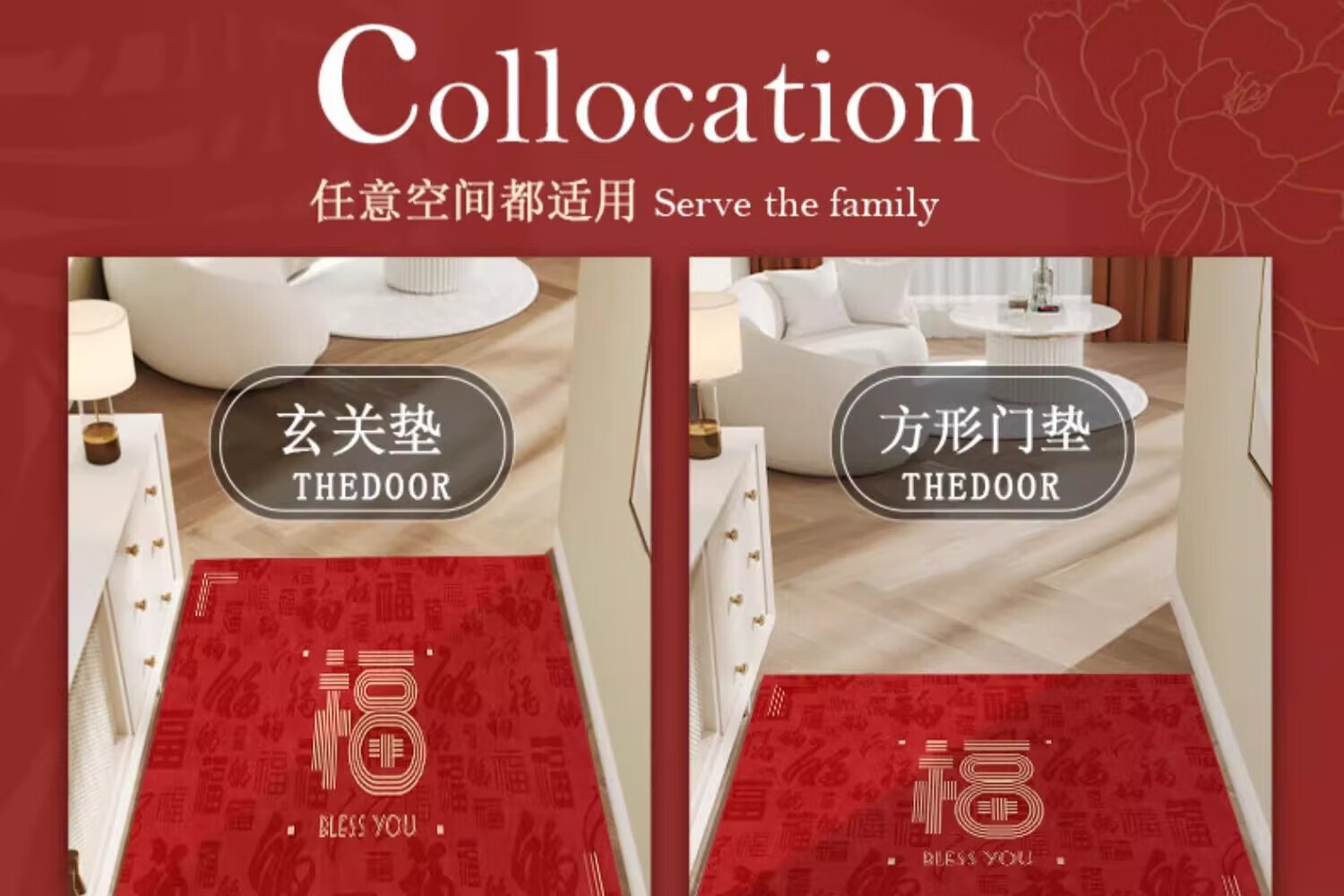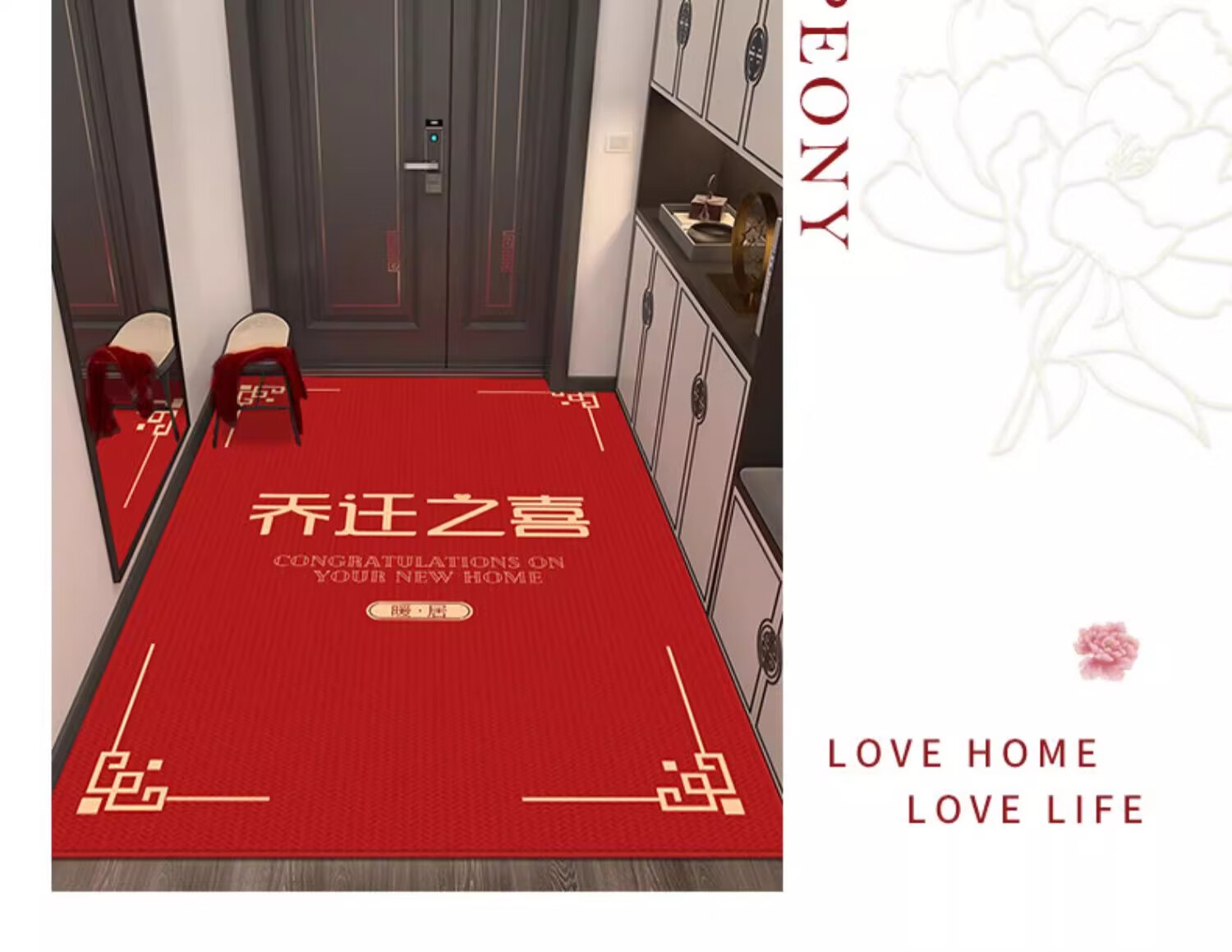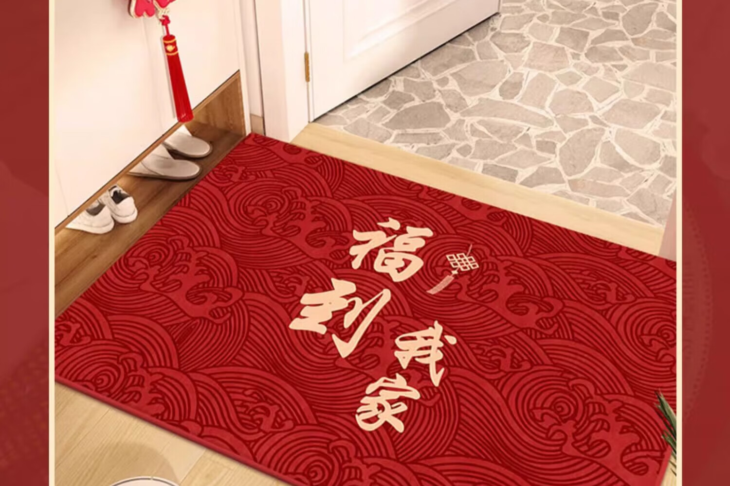 织百佳福字新中式地毯门垫进门地垫入户门垫门口玄关防滑可裁剪喜庆脚垫 扇叶平安喜乐--横版 200*300CM【客厅推荐】