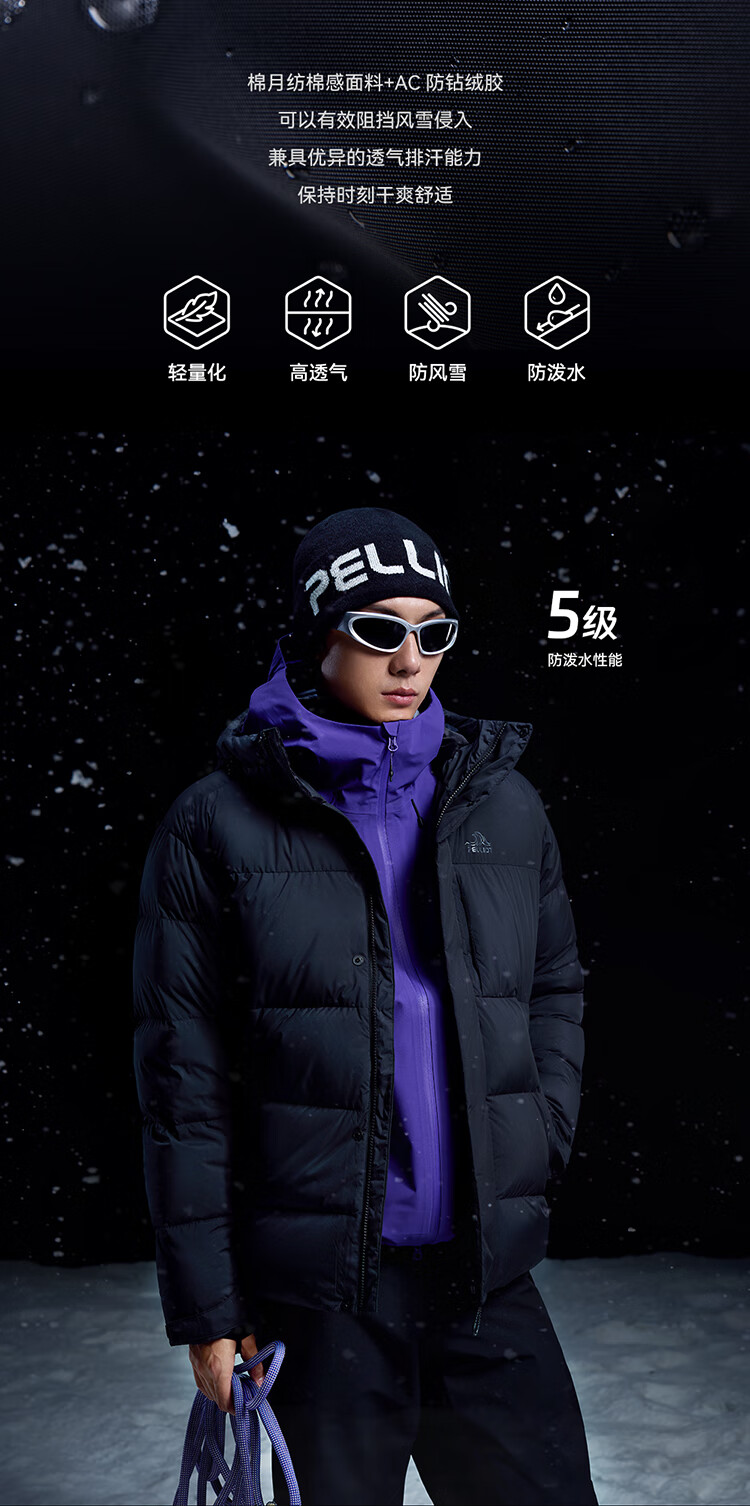 伯希和(Pelliot)[极寒pro]800蓬鹅绒羽绒服男防风保暖夹克冬季外套115408025黑L