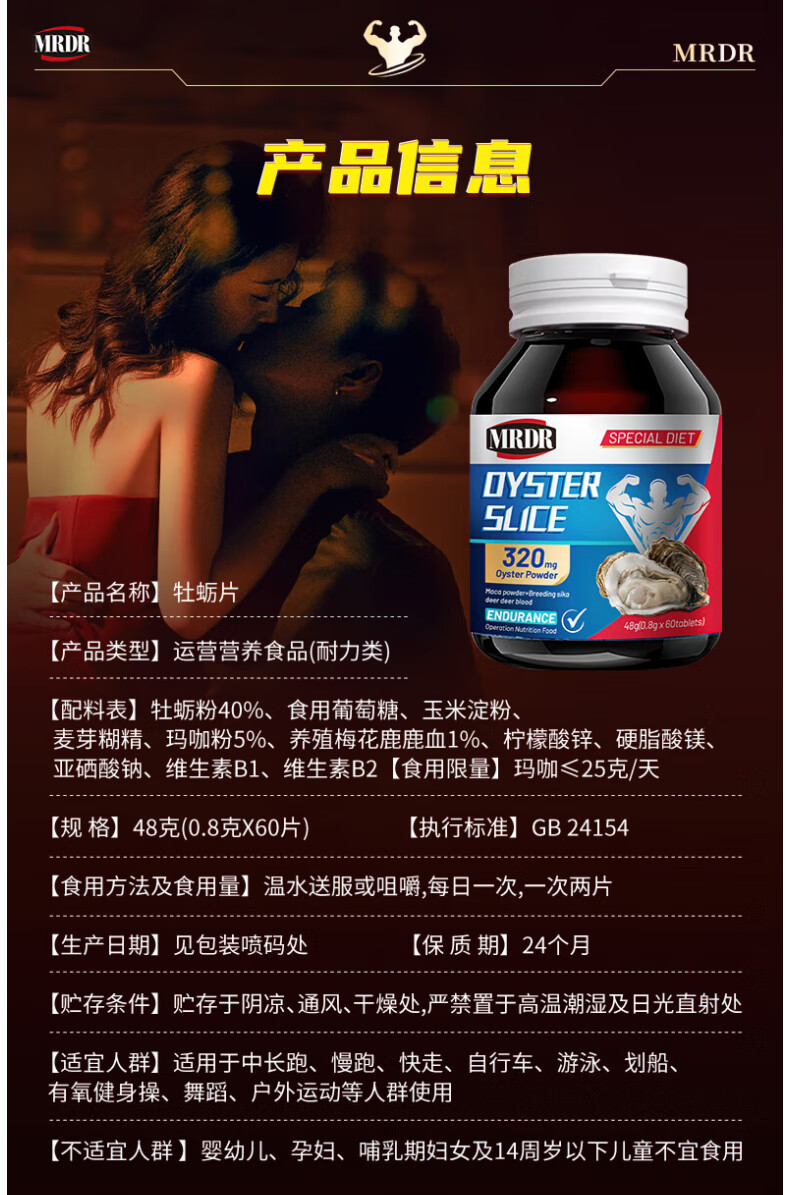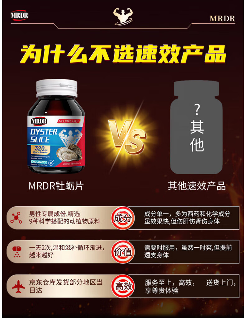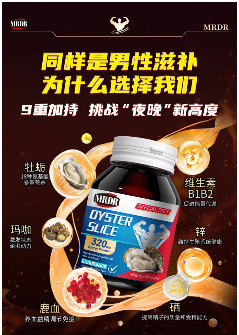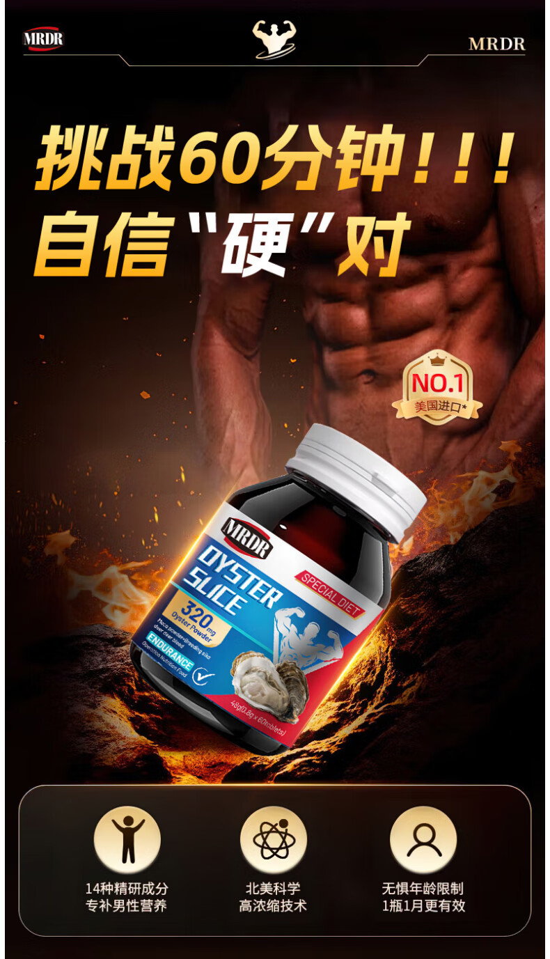 MRDR牡蛎片男士小钢炮补肾壮阳早泄敏感射精快持久男科用药男士保健品 1瓶装【60片】全新体验