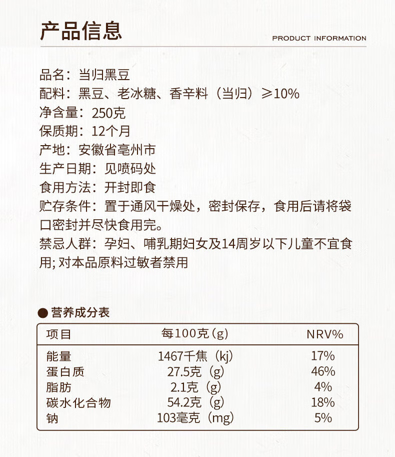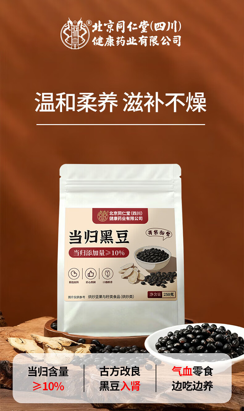 朕皇北京同仁堂当归黑豆即食零食纯手工古法熬制补血独立包装九蒸九晒 基础装 古法熬制 开袋即食 250g*1袋