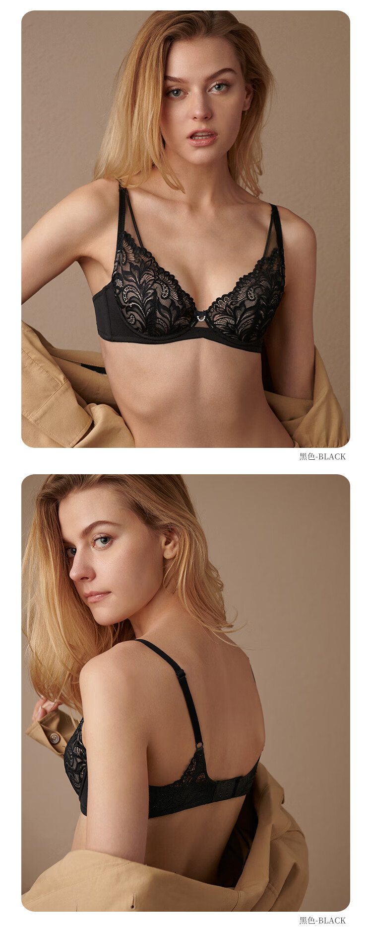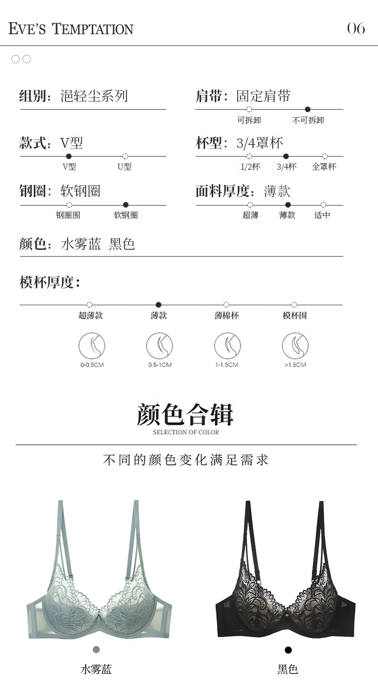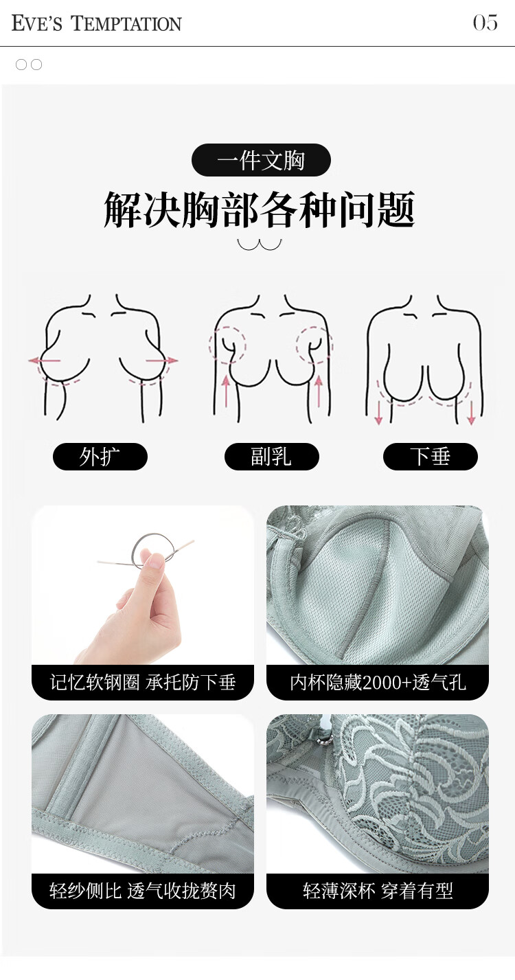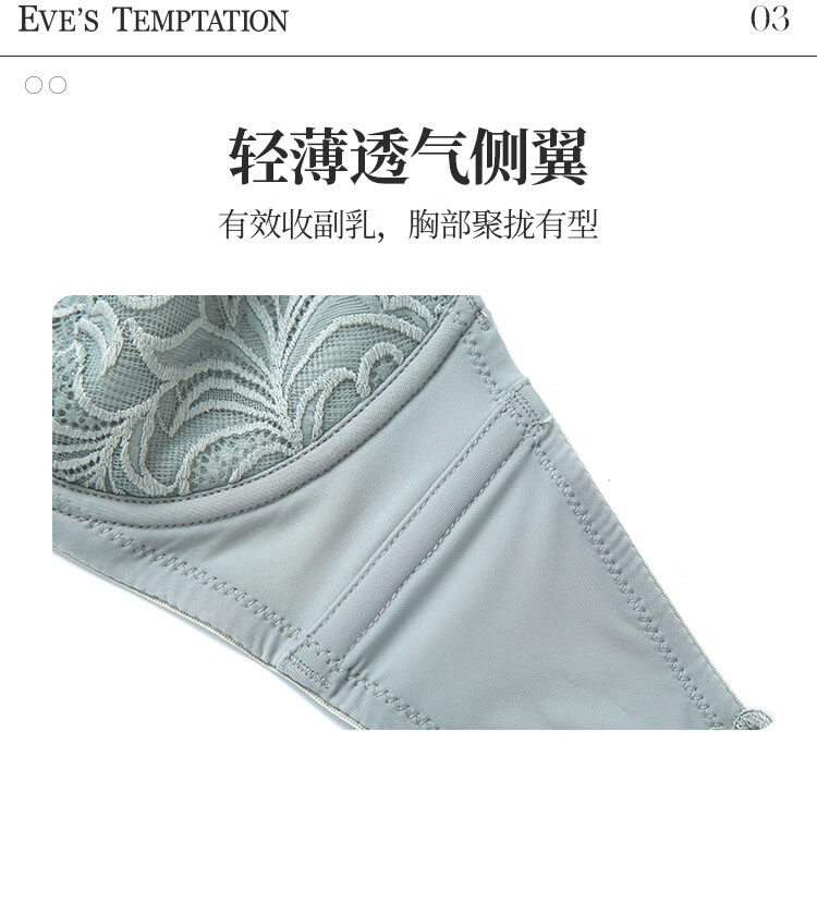 夏娃的诱惑浥轻尘组内衣女夏季薄款软钢圈大胸显小蕾丝性感文胸上托防下垂 水雾蓝 85E