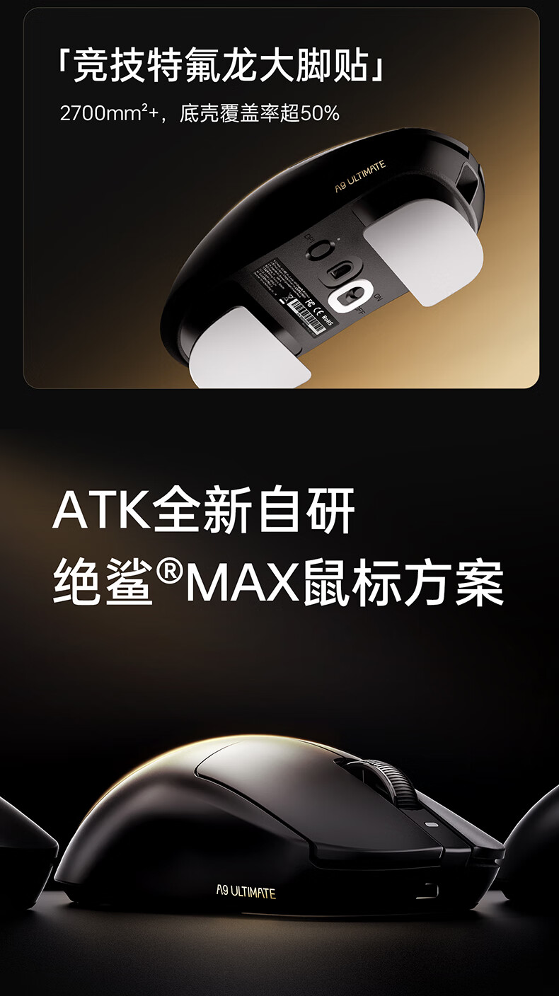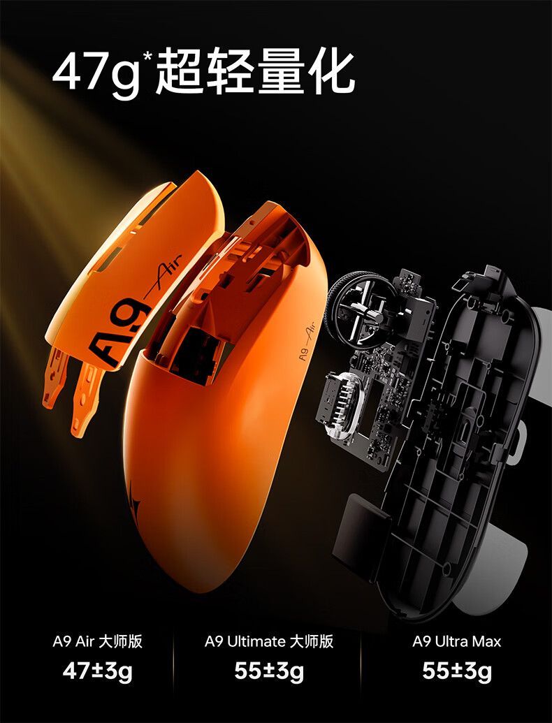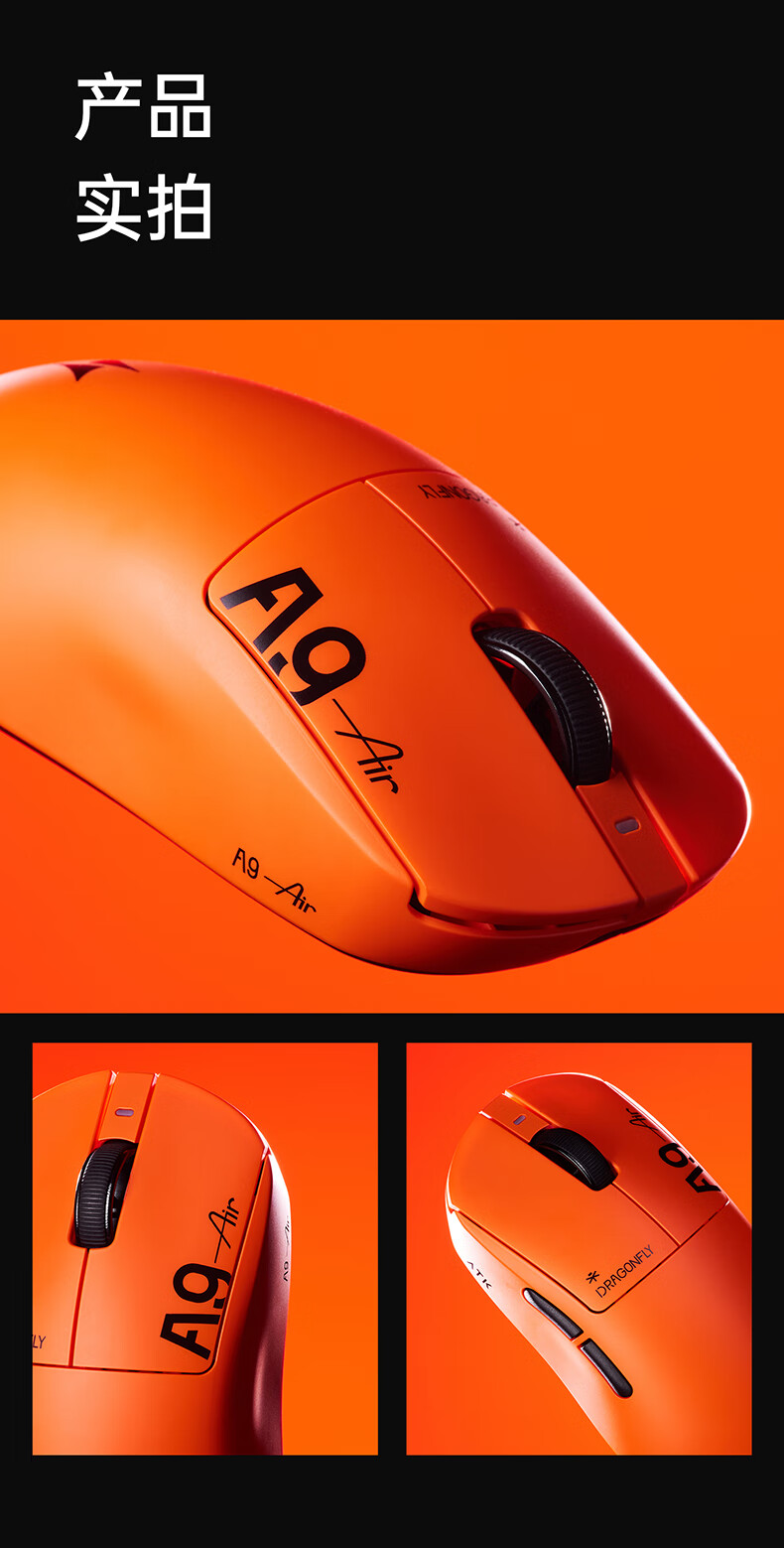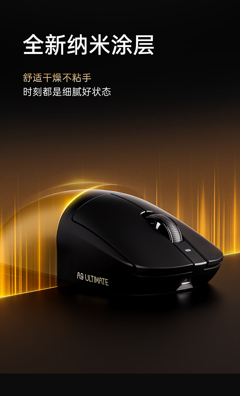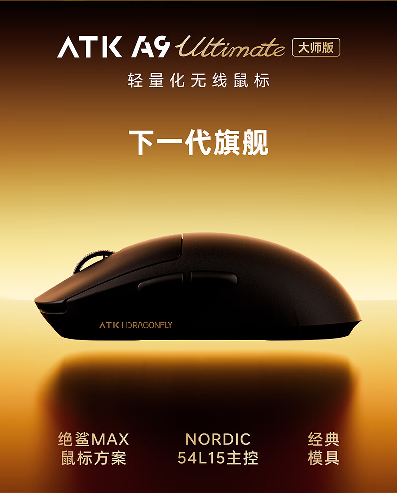 ATK蜻蜓A9无线鼠标游戏电竞办公鼠标 54芯片轻量化对称极简工学设计 FPS/MOBA大师版 A9UltraMax黑色