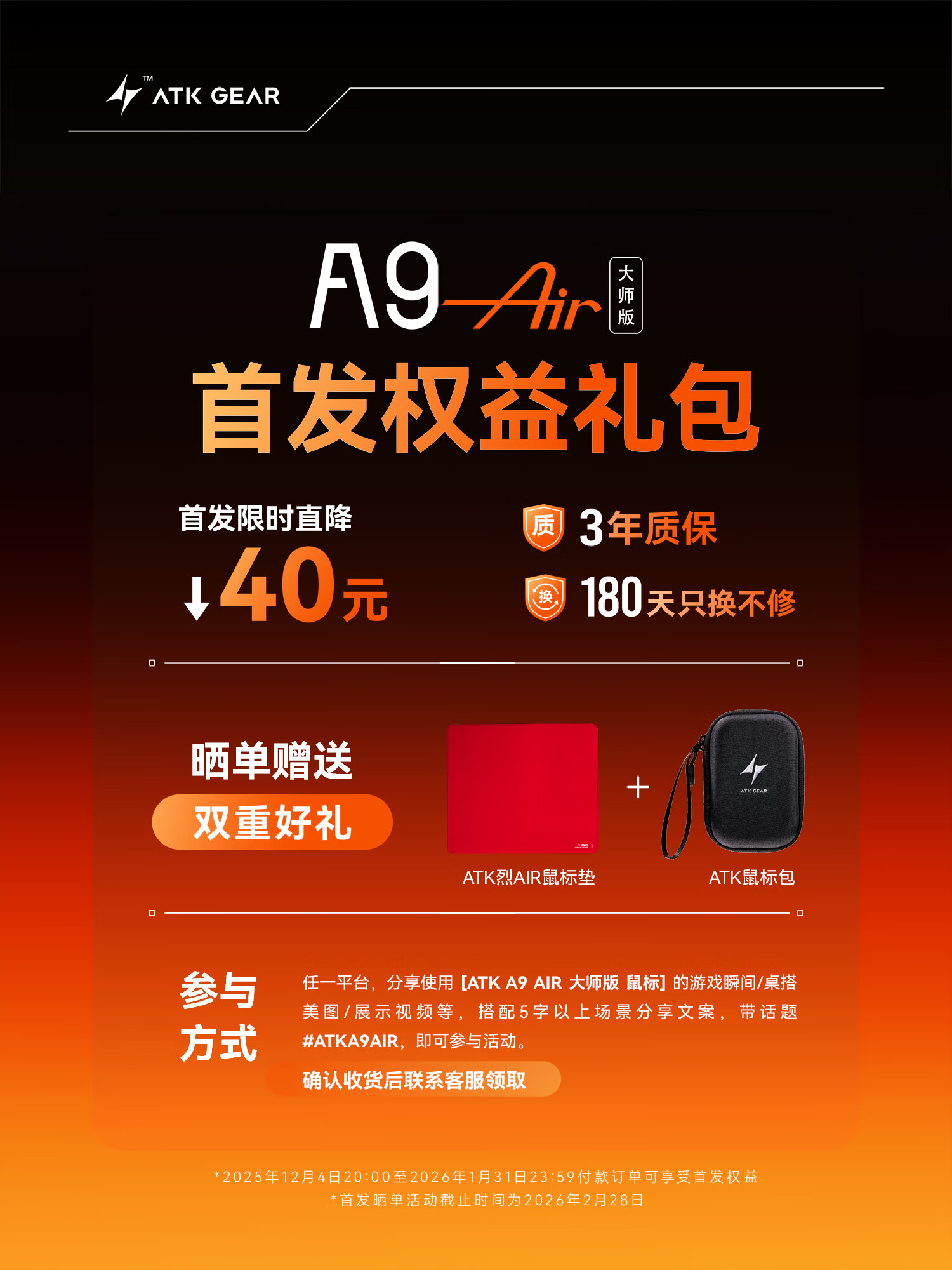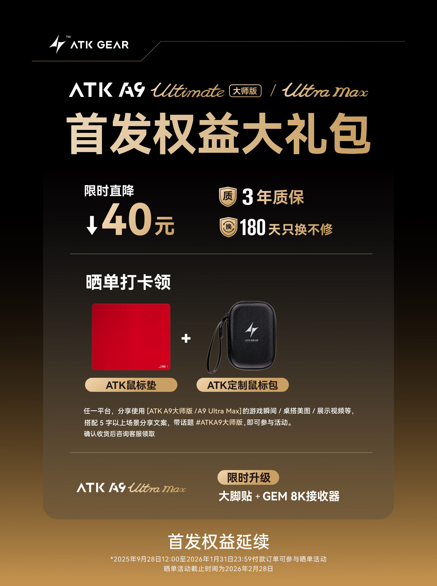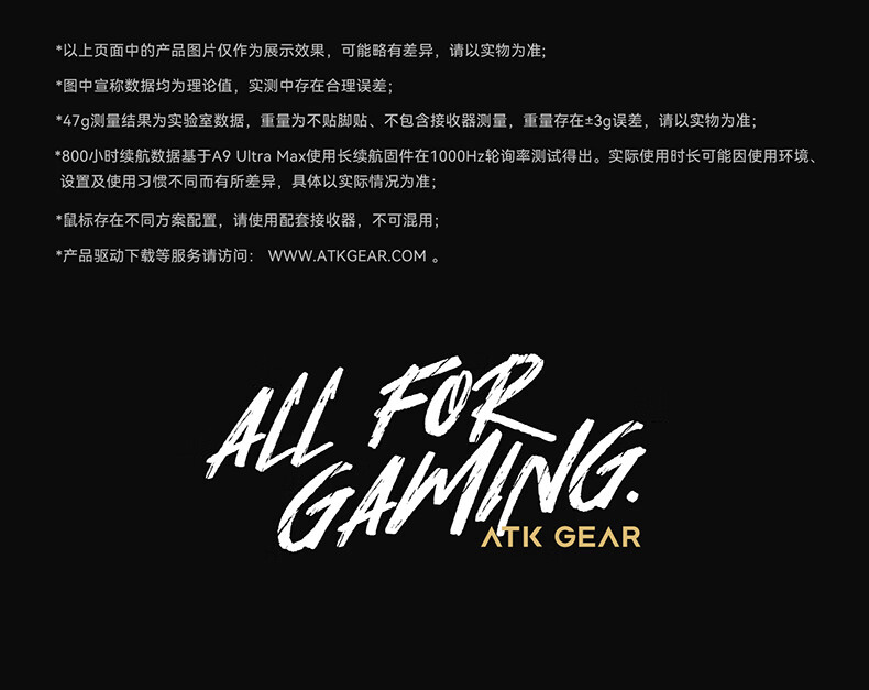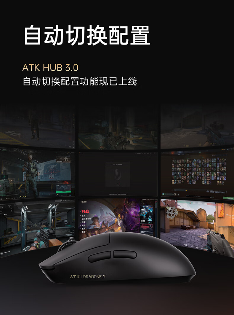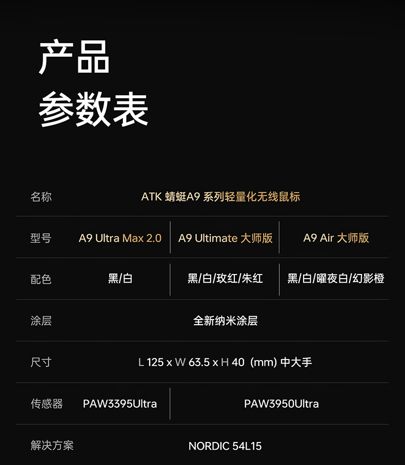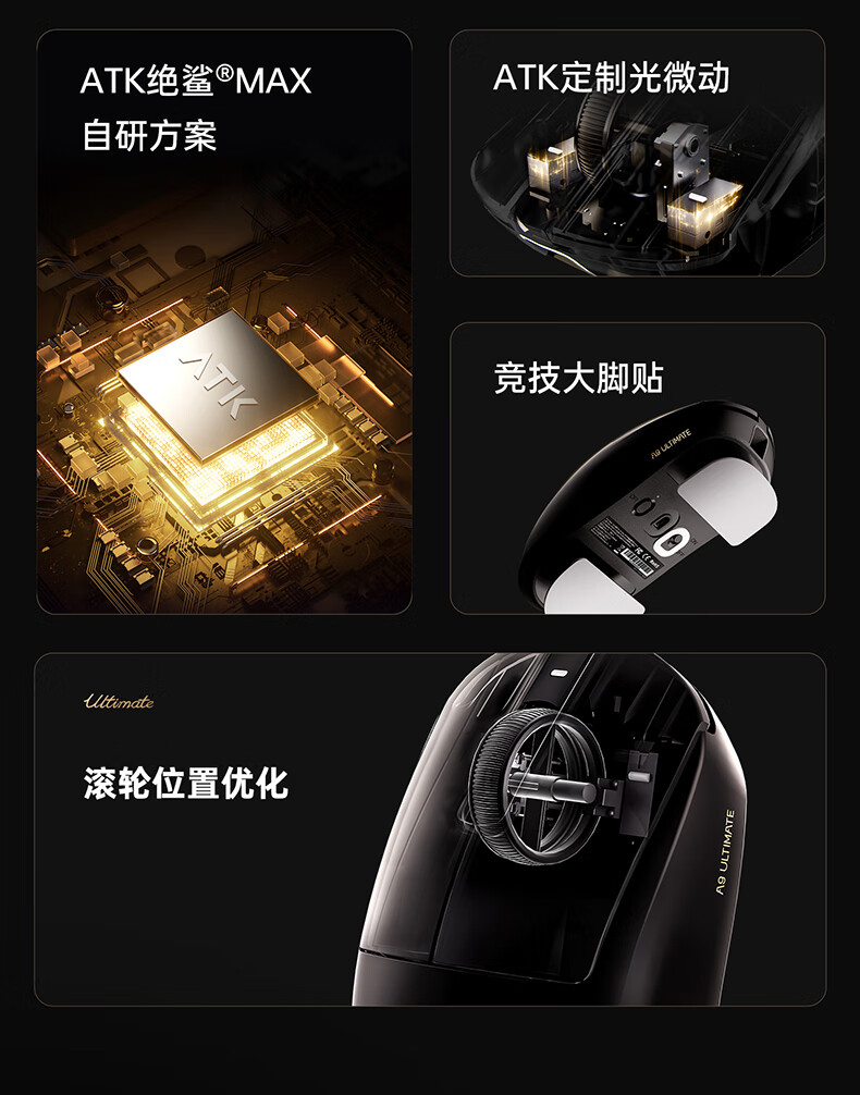 ATK蜻蜓A9无线鼠标游戏电竞办公鼠标 54芯片轻量化对称极简工学设计 FPS/MOBA大师版 A9UltraMax黑色