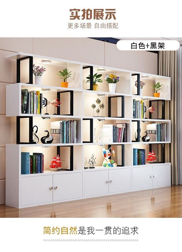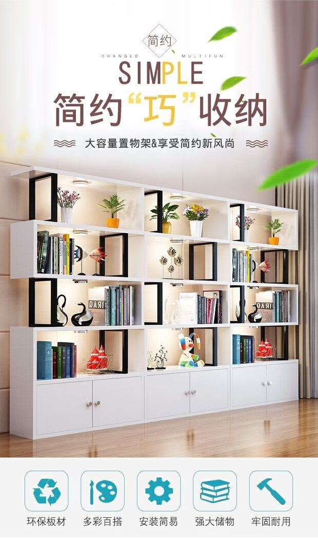 倘然之家简易书柜书架落地多层置物架儿童玩具储物柜飘窗收纳柜客厅隔断架 3层长60带柜子