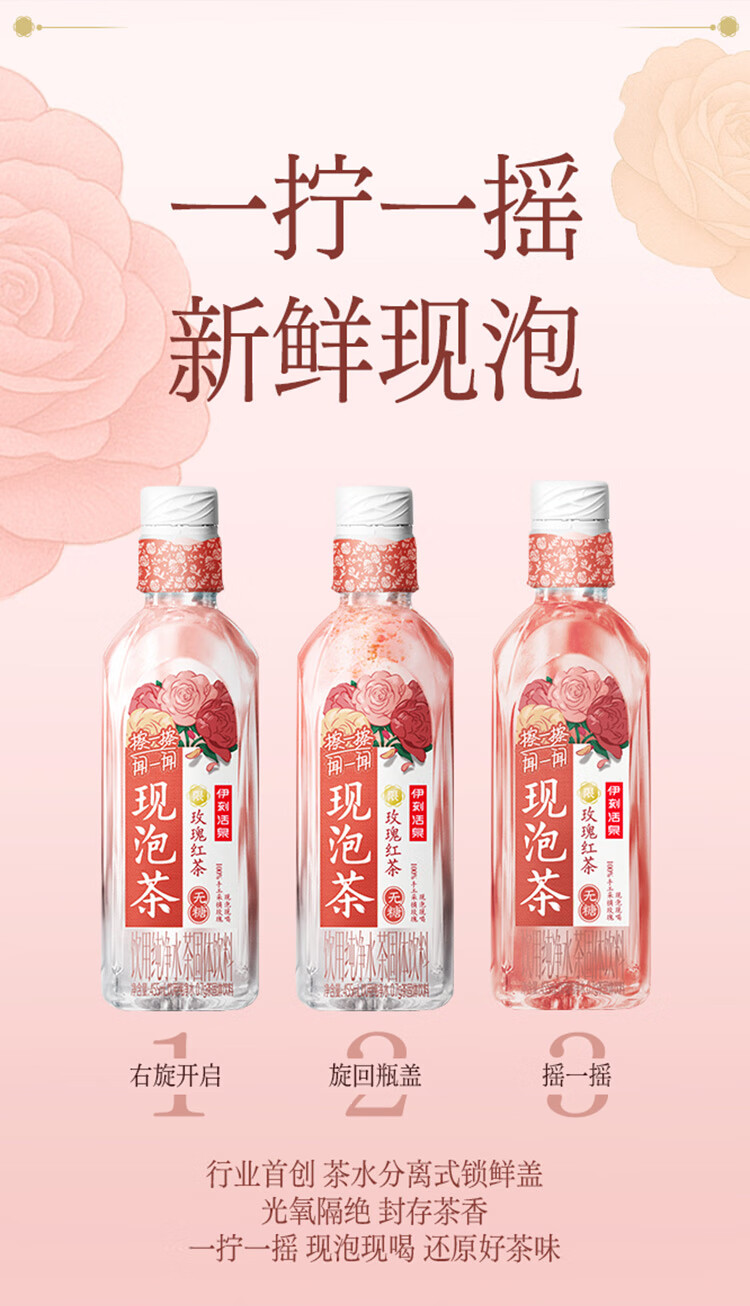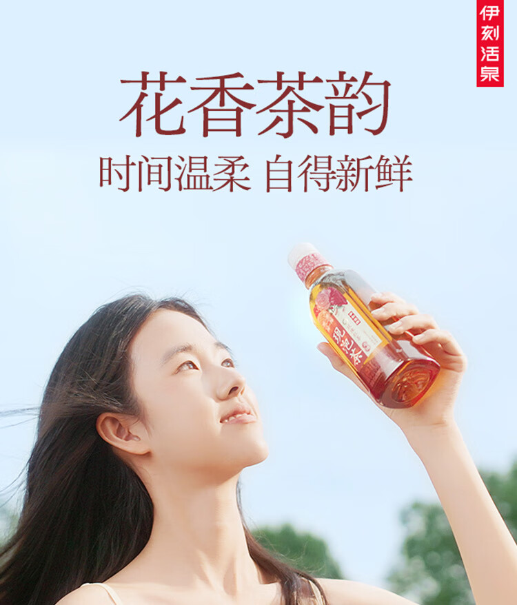 伊利伊刻活泉现泡茶玫瑰红茶饮料 0糖0卡 455ml*3瓶