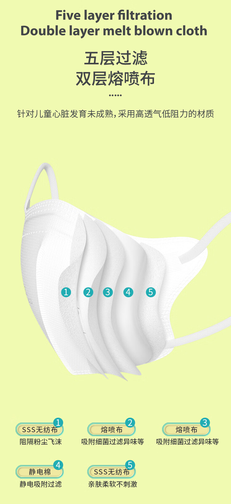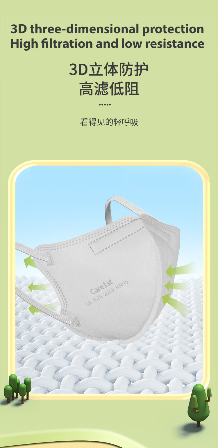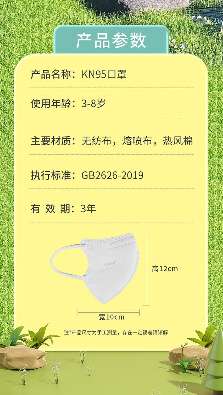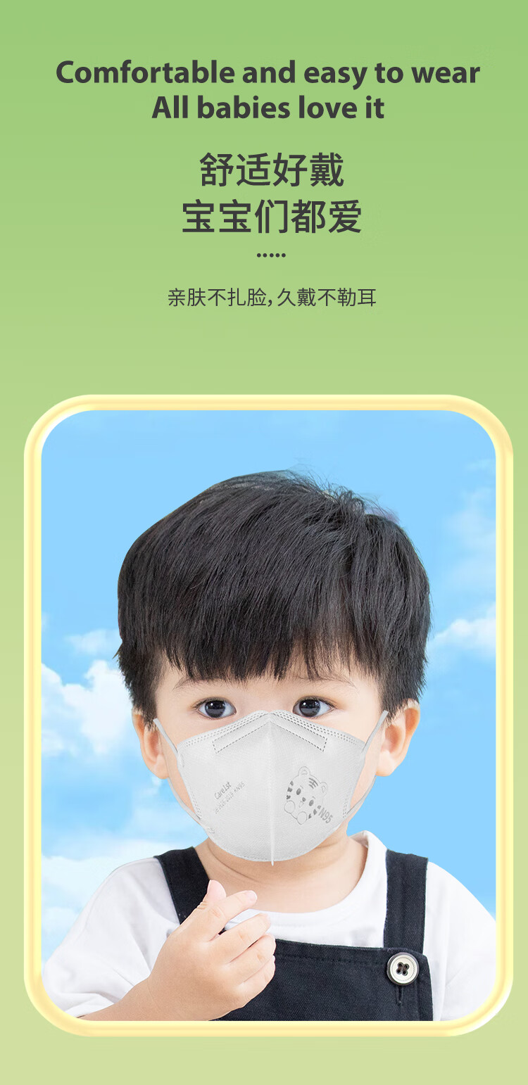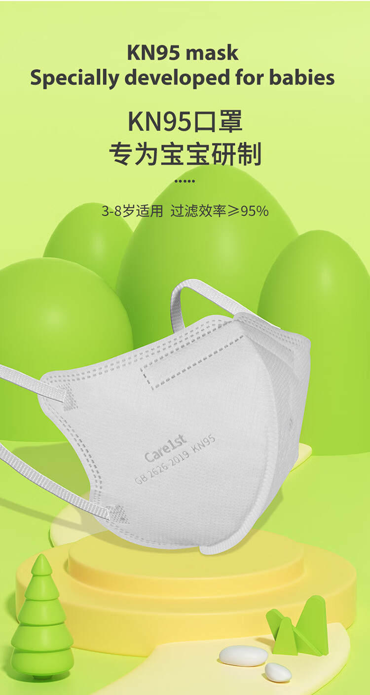 Care1st嘉卫士KN95儿童口罩 学生防护 5层过滤防尘防飞沫 3-8岁30个装