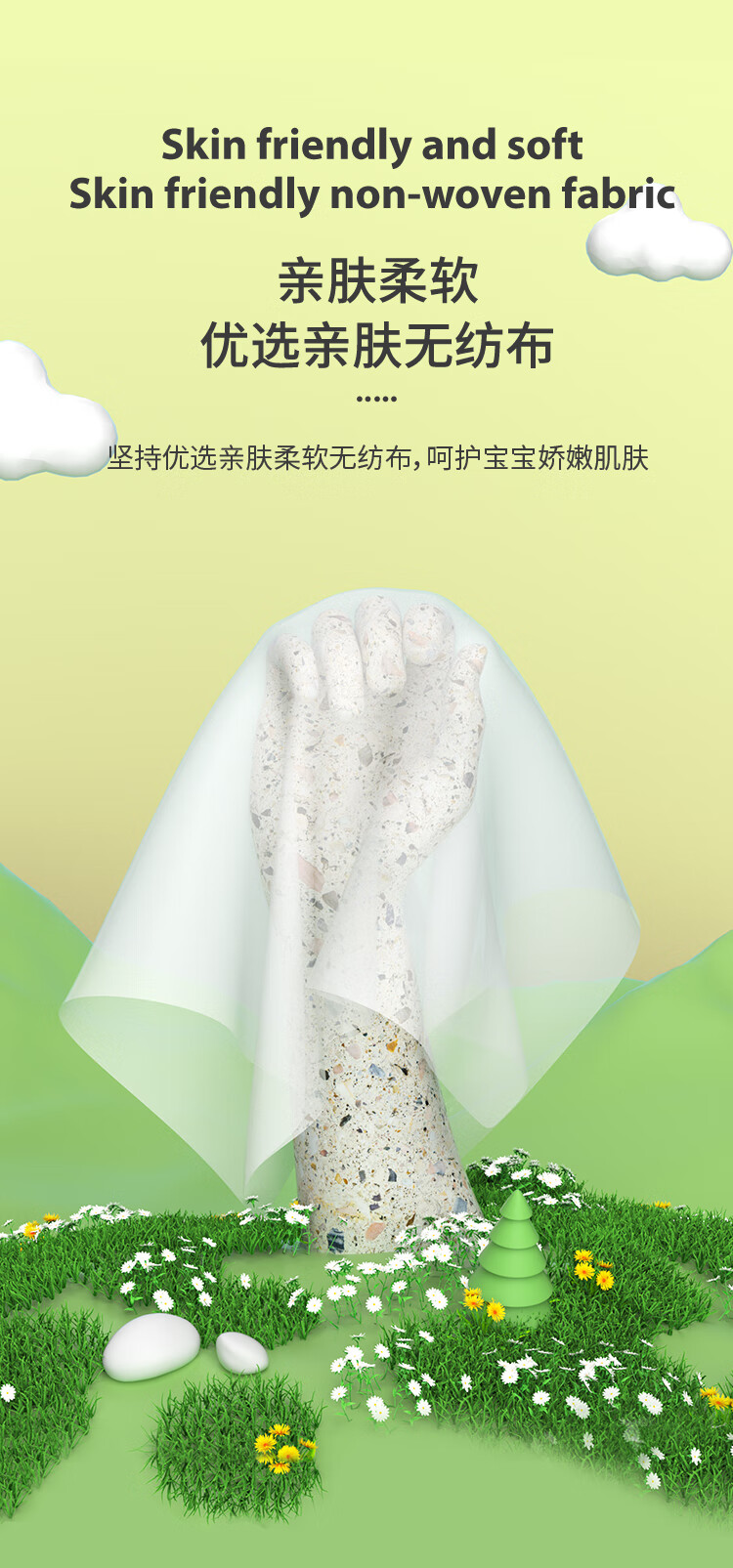 竹印象(BAMBOO IMPRESSION)洗脸巾一次性毛巾洗脸巾珍珠纹婴儿用洁面巾擦脸巾80抽 中号M*6包