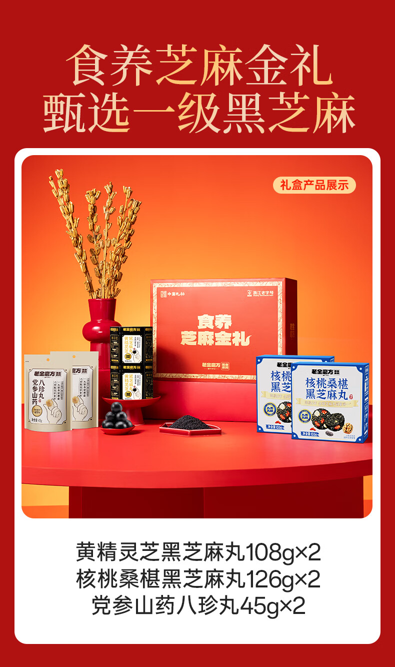 老金磨方食养芝麻金礼礼盒558g黄精芝麻丸核桃桑葚礼品送人企业团购