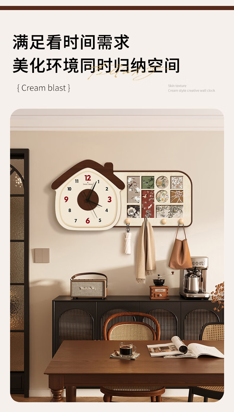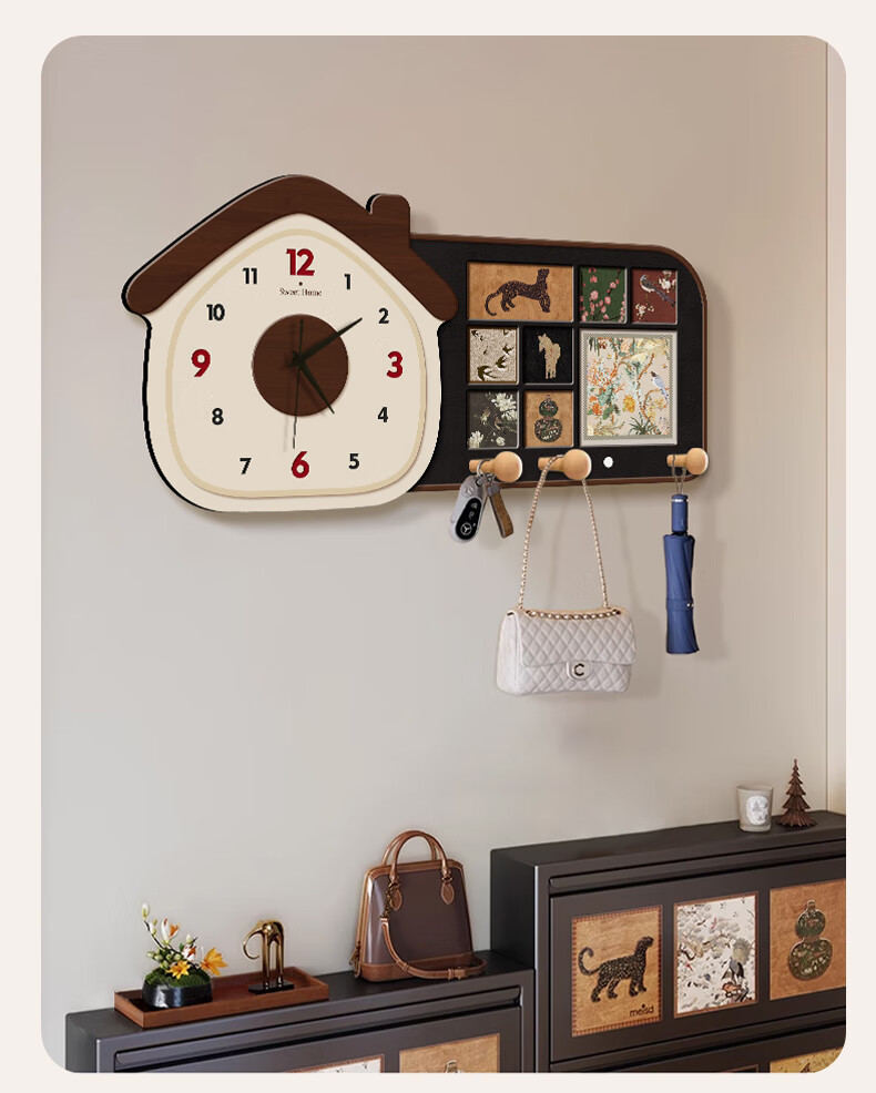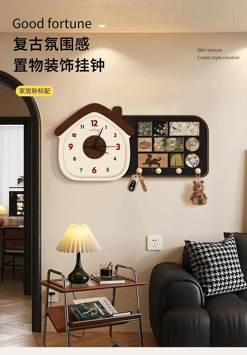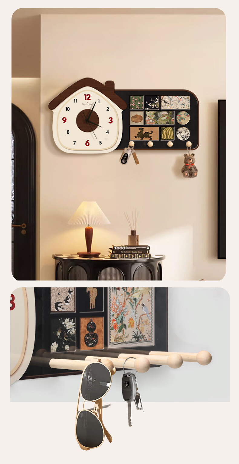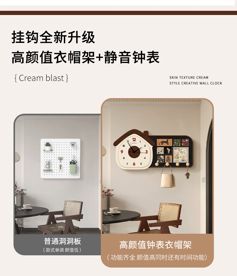立始2025新款洞洞板收纳门后挂钩静音挂钟装饰画感衣帽架挂表时钟 复古格调 小号 【洞洞板置物架+钟表】