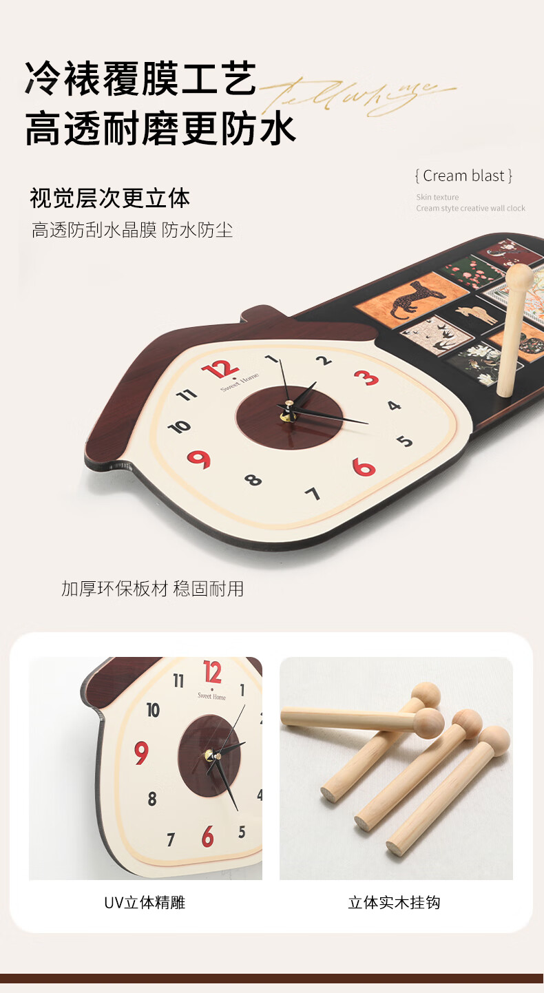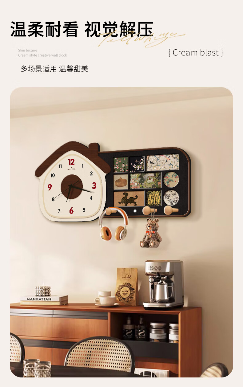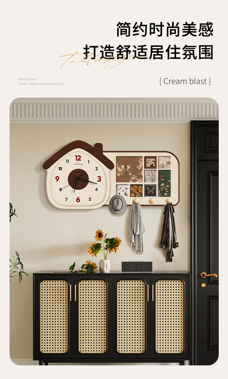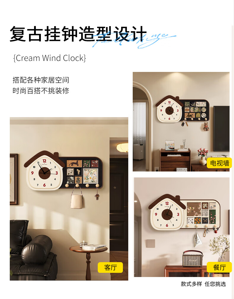 立始2025新款洞洞板收纳门后挂钩静音挂钟装饰画感衣帽架挂表时钟 复古格调 小号 【洞洞板置物架+钟表】