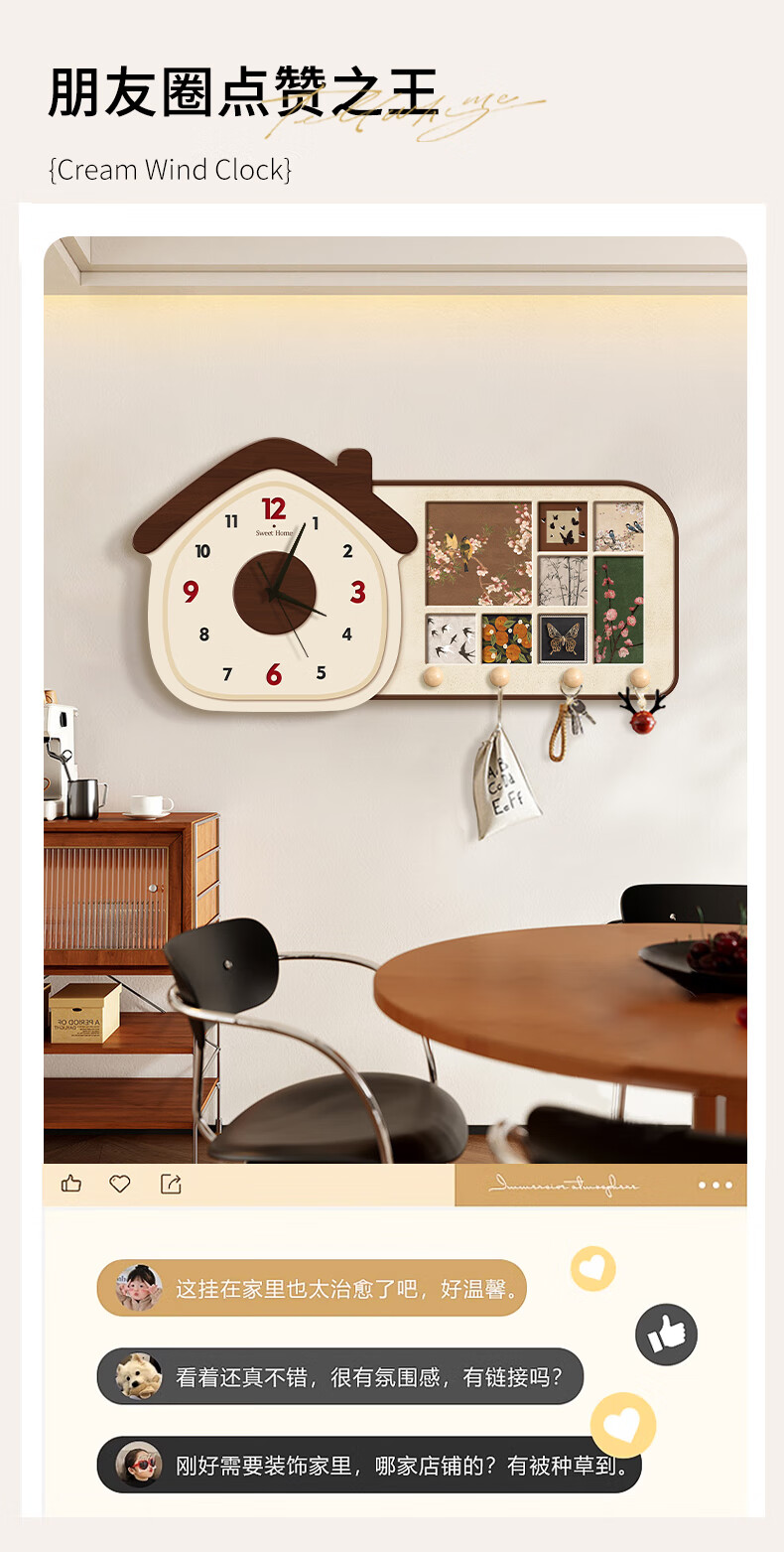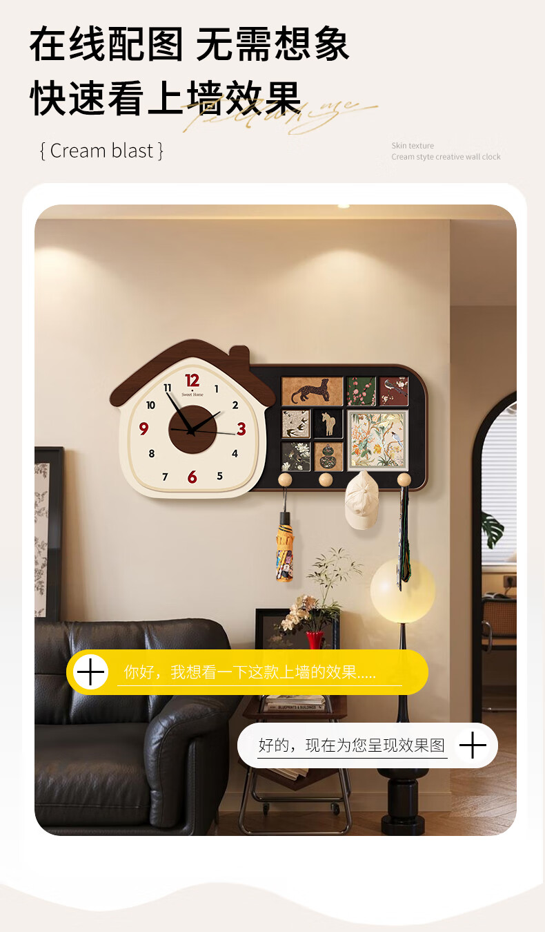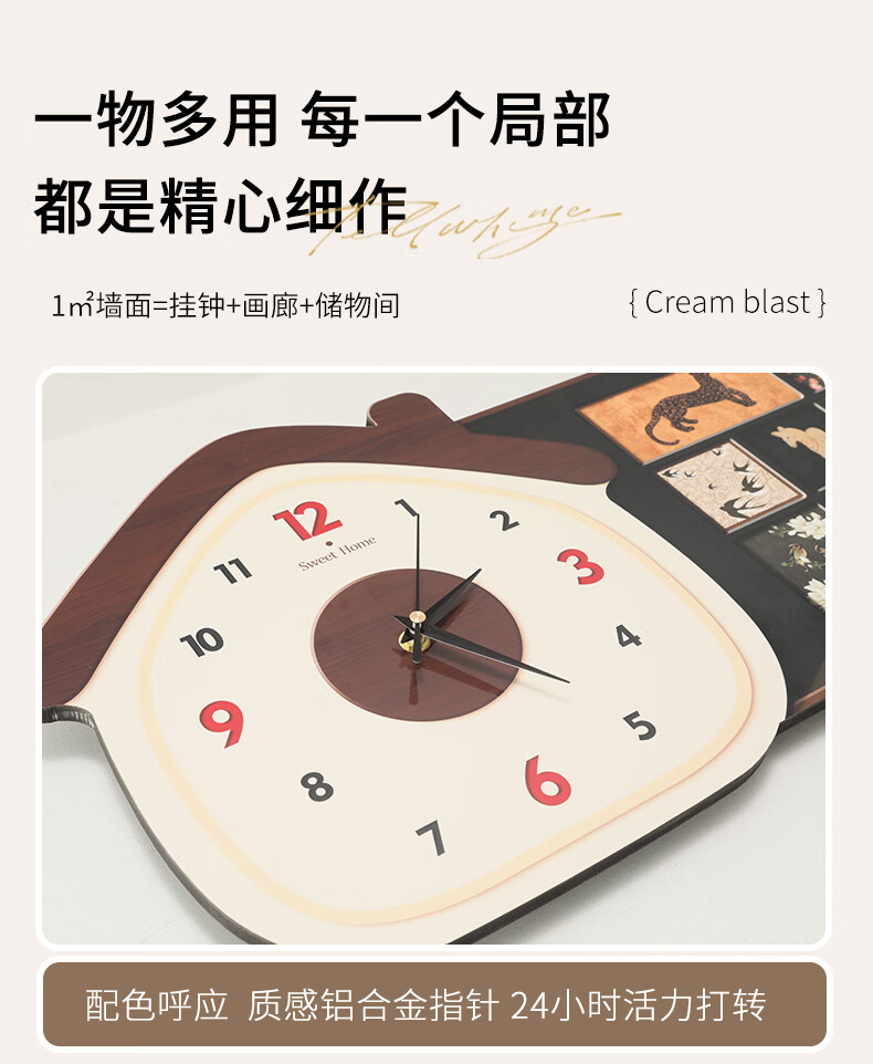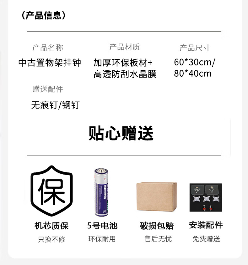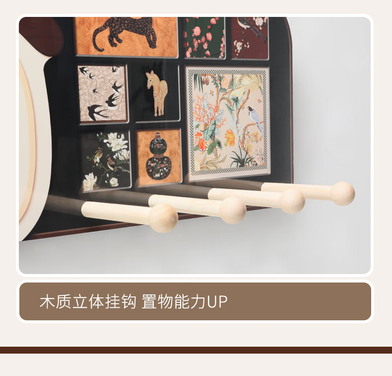 立始2025新款洞洞板收纳门后挂钩静音挂钟装饰画感衣帽架挂表时钟 复古格调 小号 【洞洞板置物架+钟表】