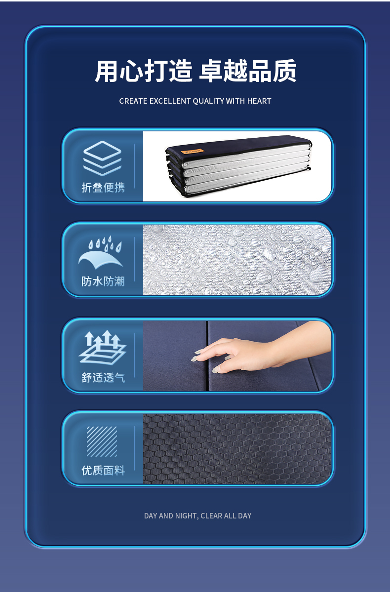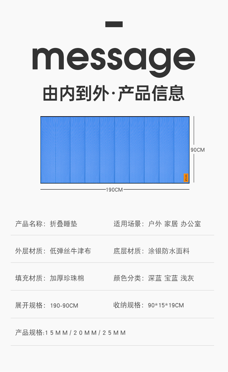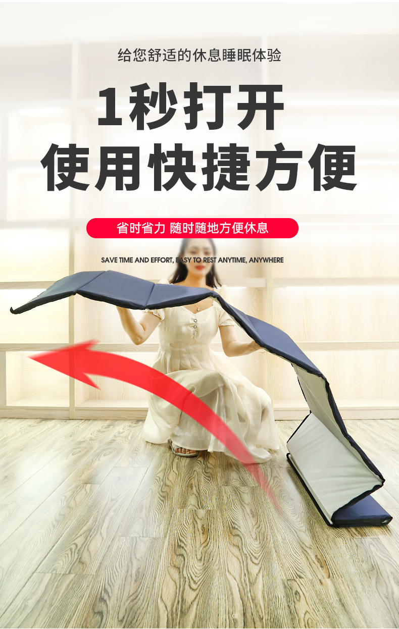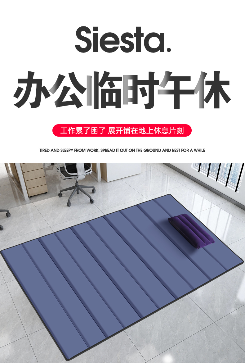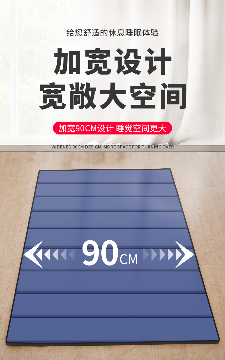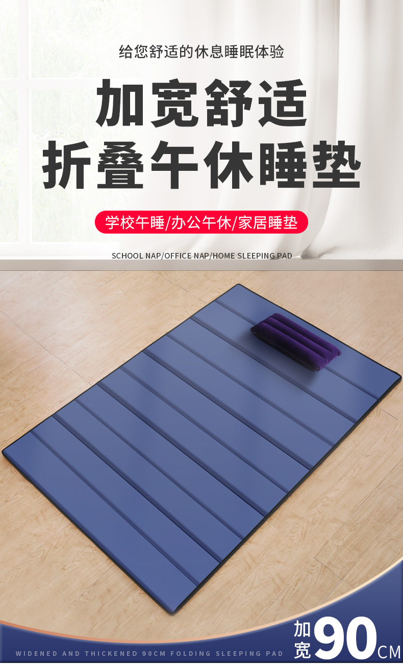 凡卡印象 午睡垫便携办公室睡觉午休垫折叠防潮垫子午睡地铺睡垫地垫垫子 90宽【浅灰色-厚1.5CM】
