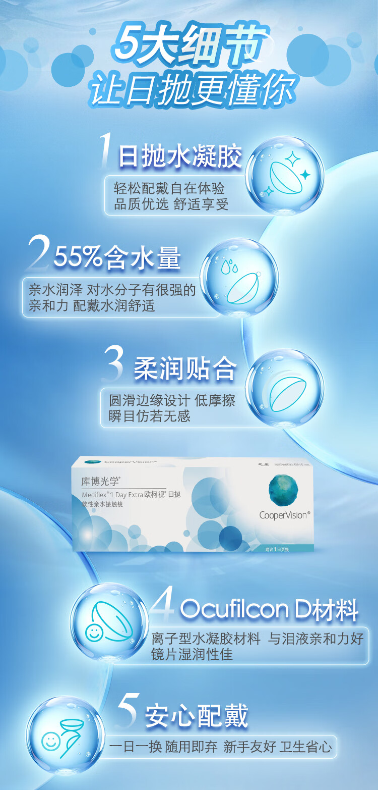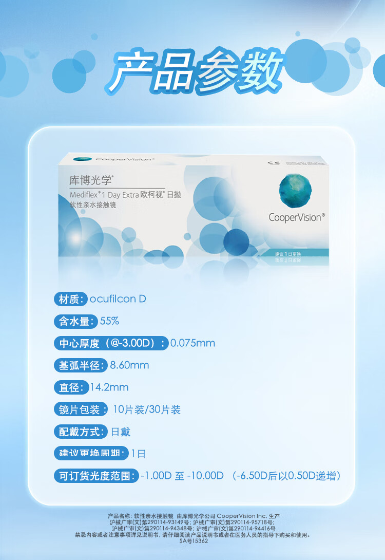 库博光学(coopervision)欧柯视进口透明隐形眼镜日抛30片装 575度