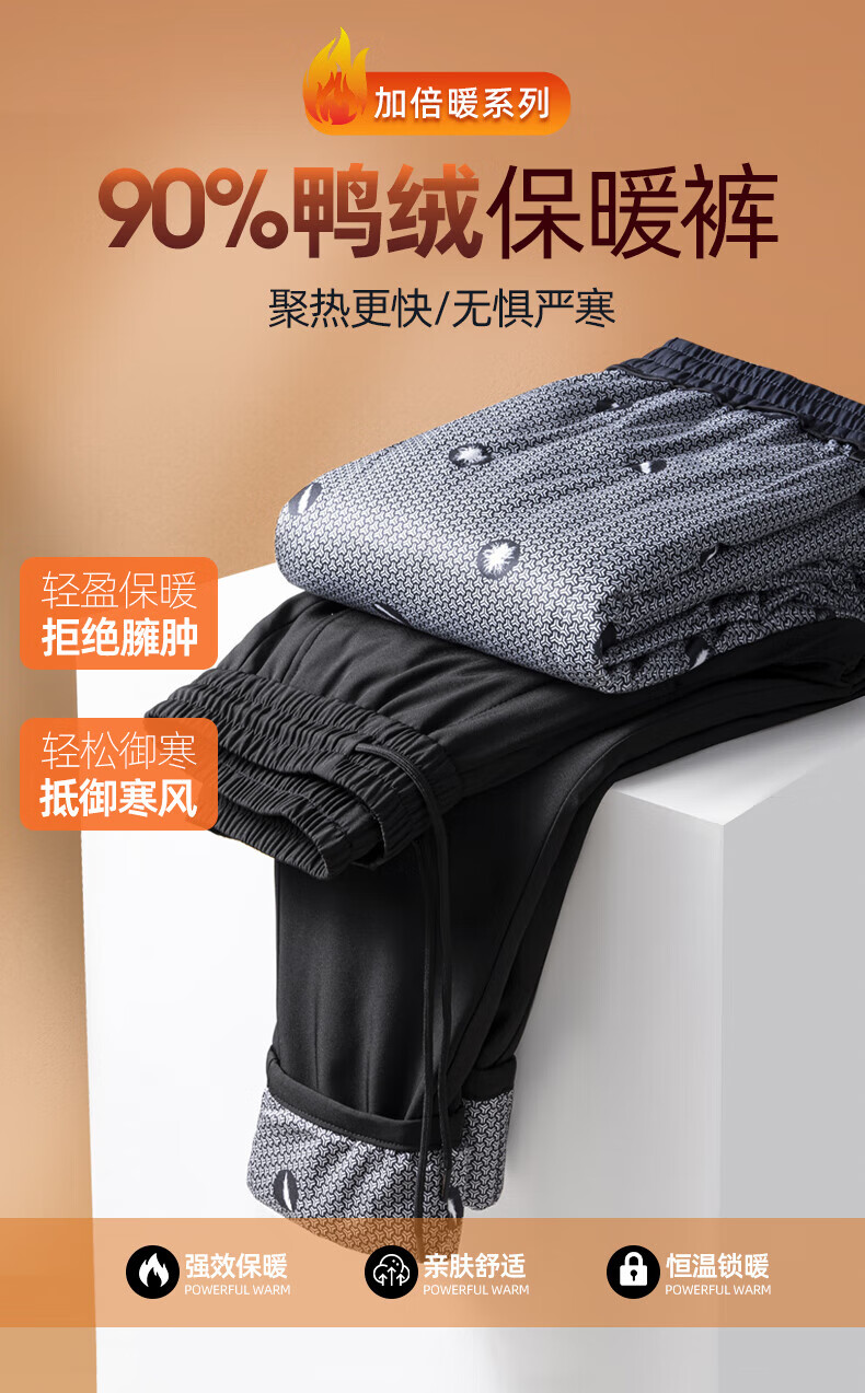 雅鹿羽绒裤男2025秋冬季新款加厚防风保暖直筒鸭绒裤商务休闲防寒裤子 黑色 2XL 【推荐145-160斤】