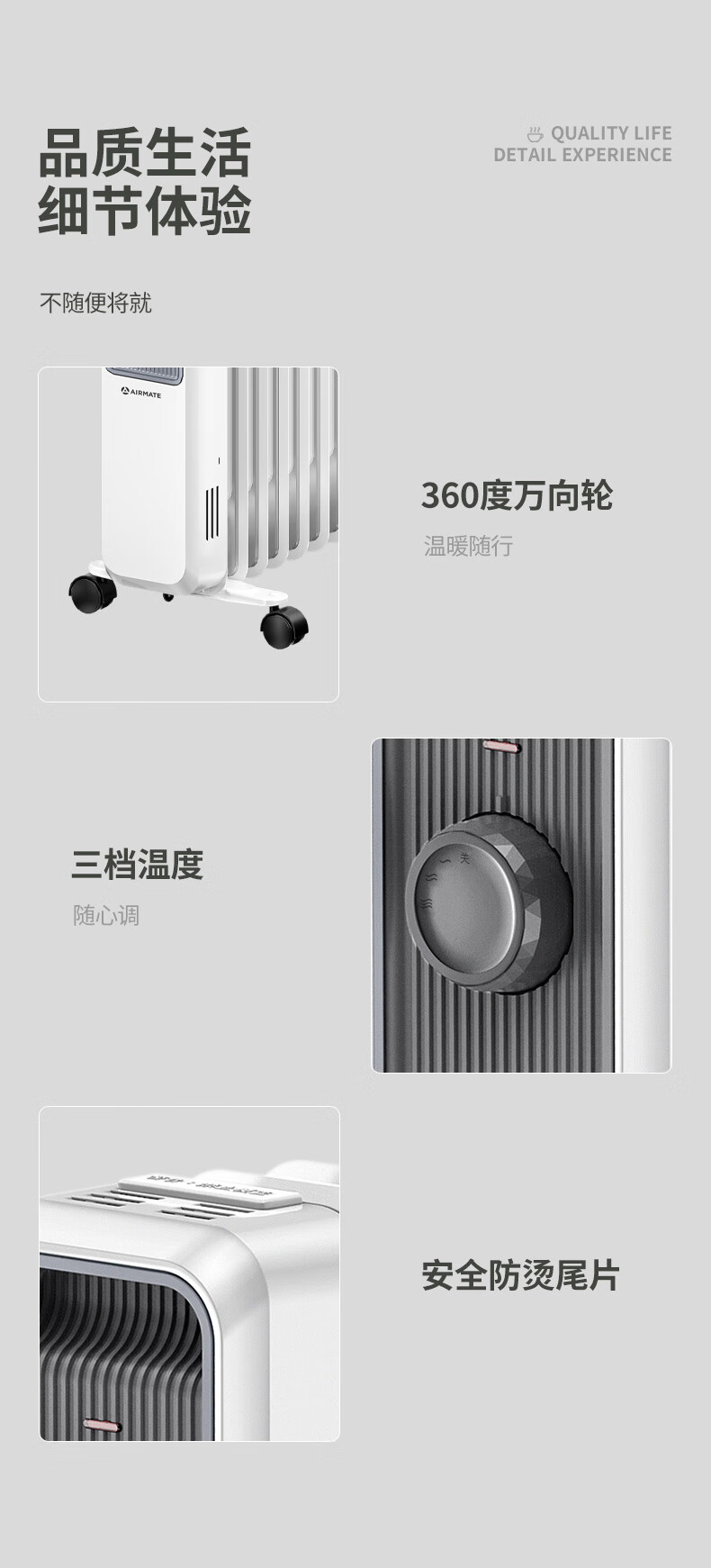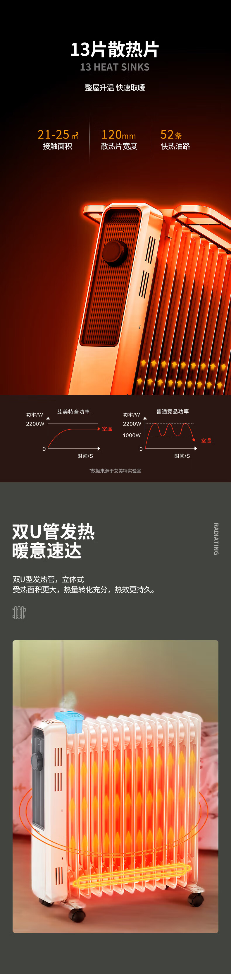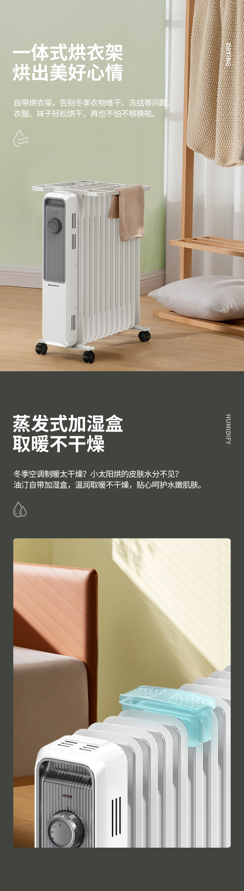 艾美特(AIRMATE)【明星单品】取暖器/电热油汀/电暖器家用/电暖气片 13片大面积速热加湿烘衣干衣烤火炉电油汀