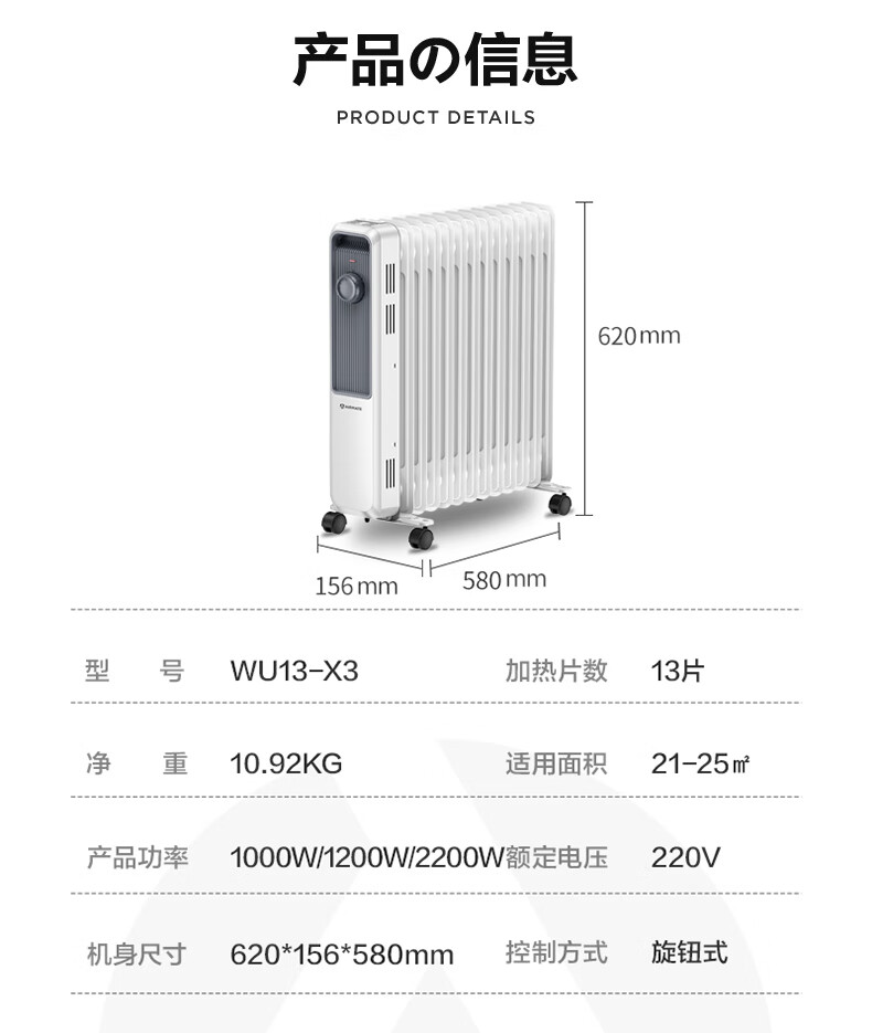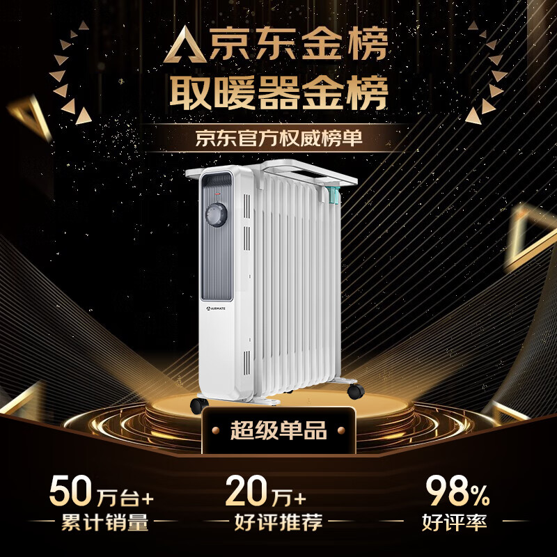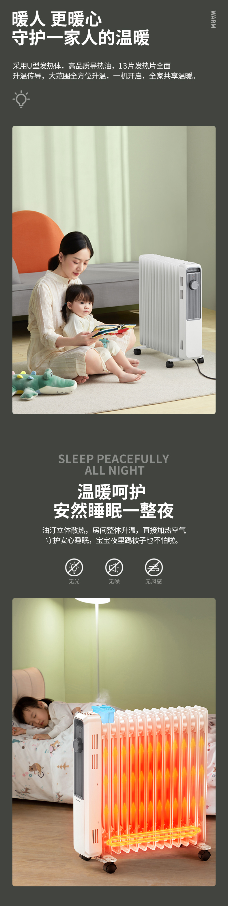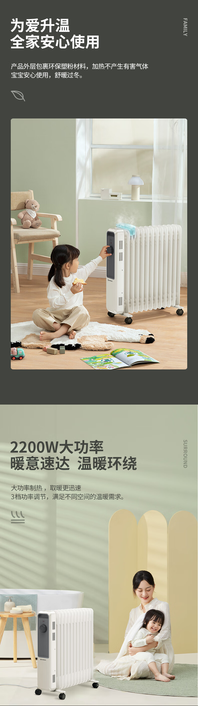 艾美特(AIRMATE)【明星单品】取暖器/电热油汀/电暖器家用/电暖气片 13片大面积速热加湿烘衣干衣烤火炉电油汀