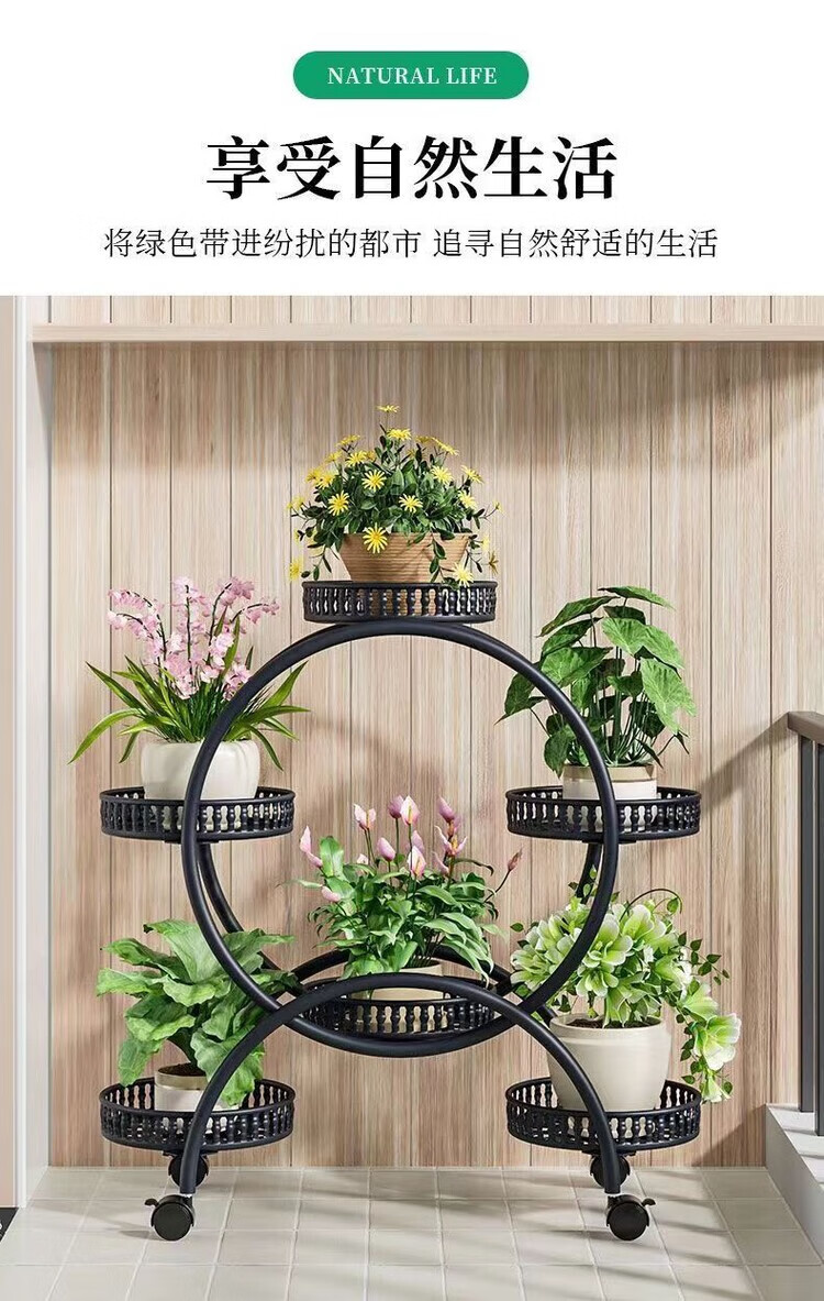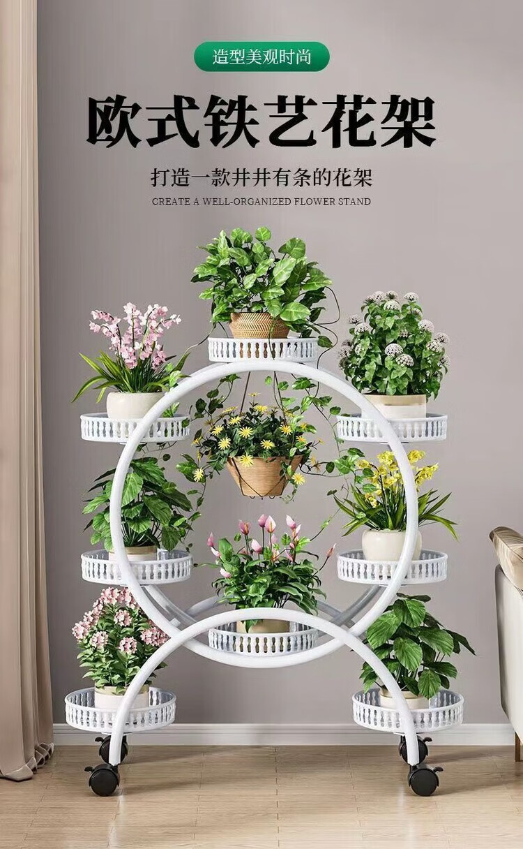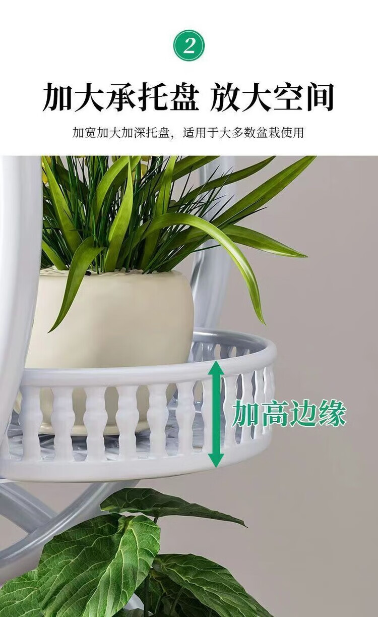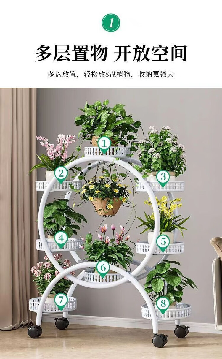 海诗圣堡花架子客厅落地式可移动带轮绿萝花盆架铁艺多层阳台花架家用落地 白色-加粗加厚4盆万向轮