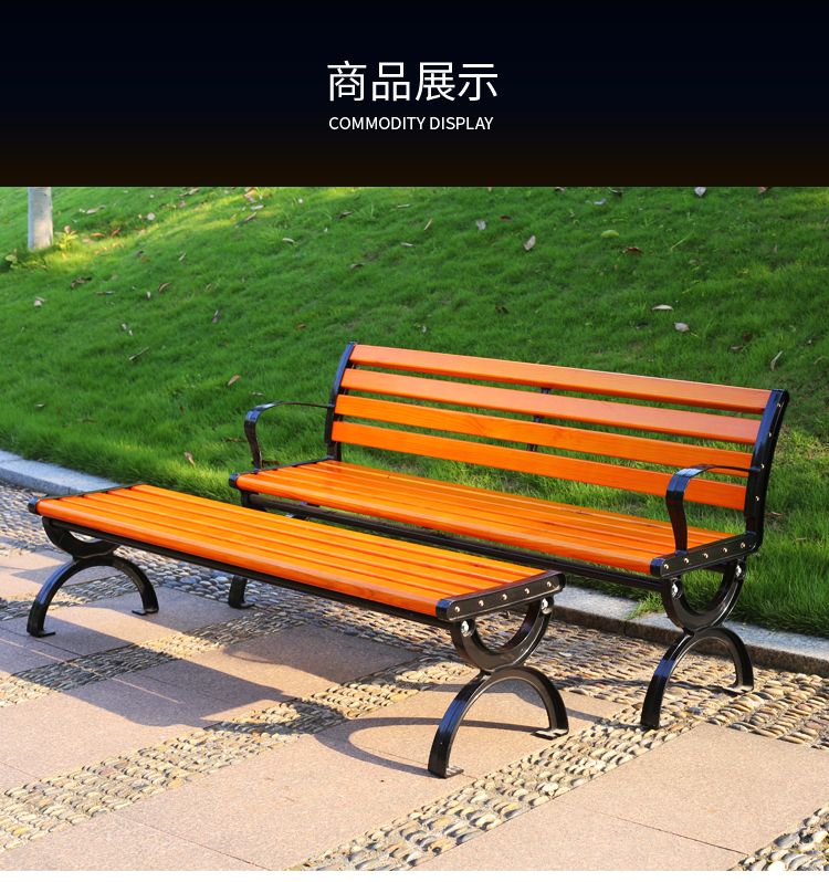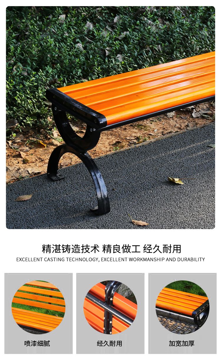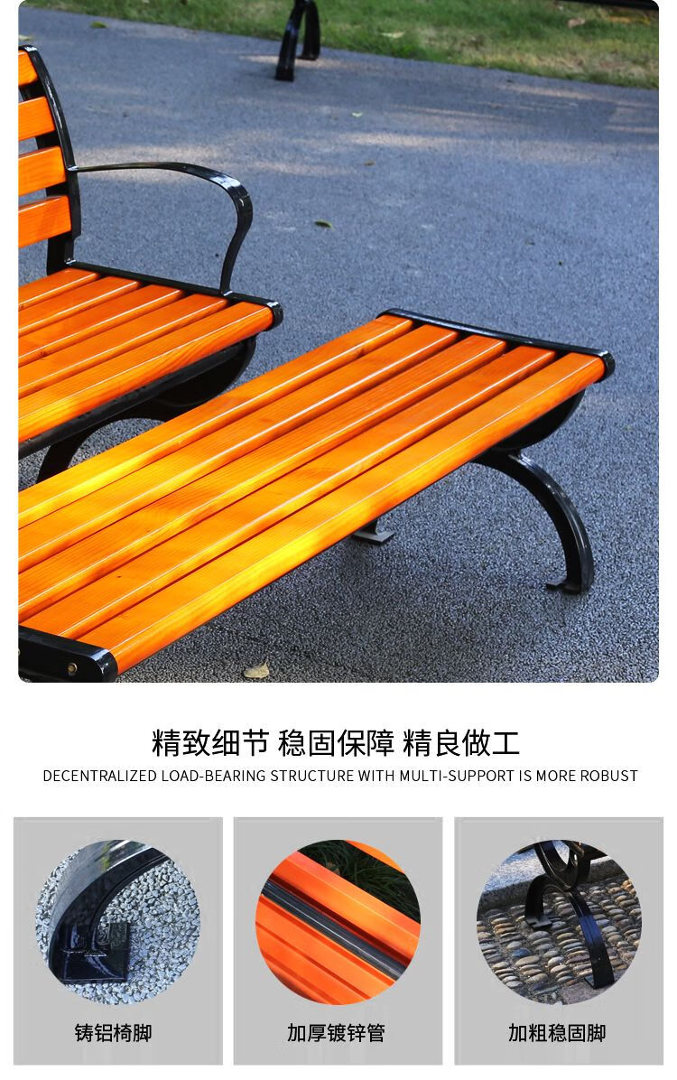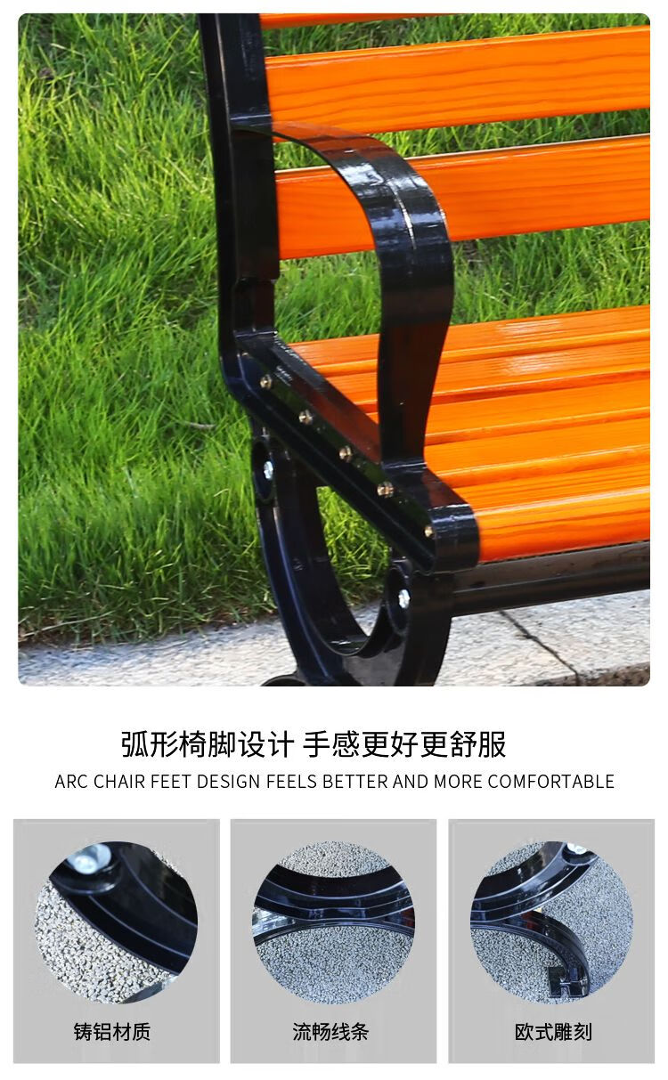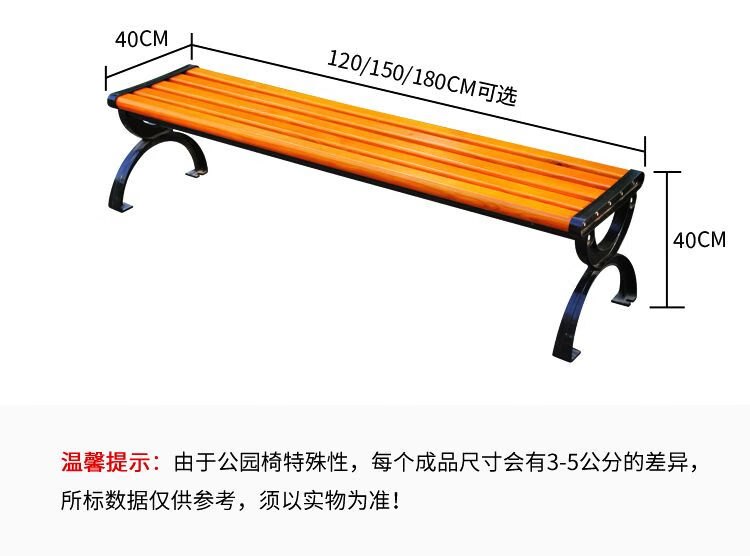 海诗圣堡公园长椅现代金属防腐木户外长椅定制400kg承重休闲坐椅 防腐木无靠背0.4米