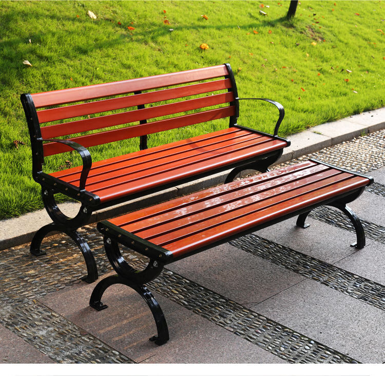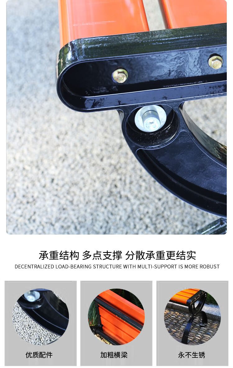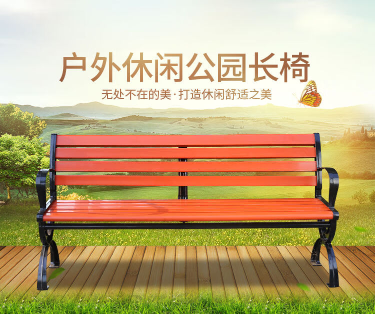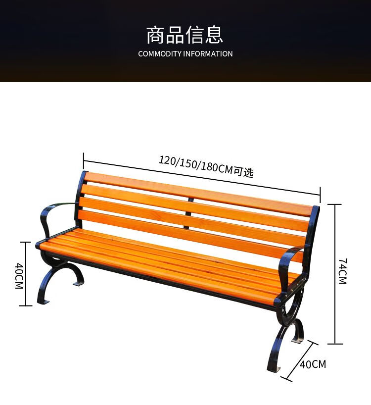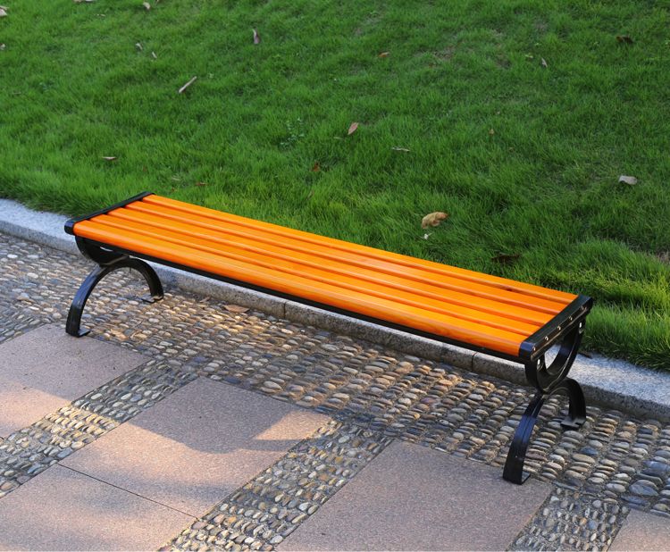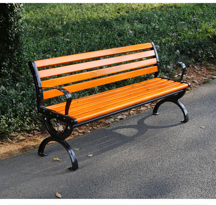 海诗圣堡公园长椅现代金属防腐木户外长椅定制400kg承重休闲坐椅 防腐木无靠背0.4米