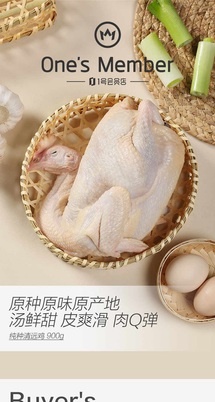 1号会员店 纯种无抗清远鸡 生态散养168天供港土鸡走地鸡鸡肉 900g