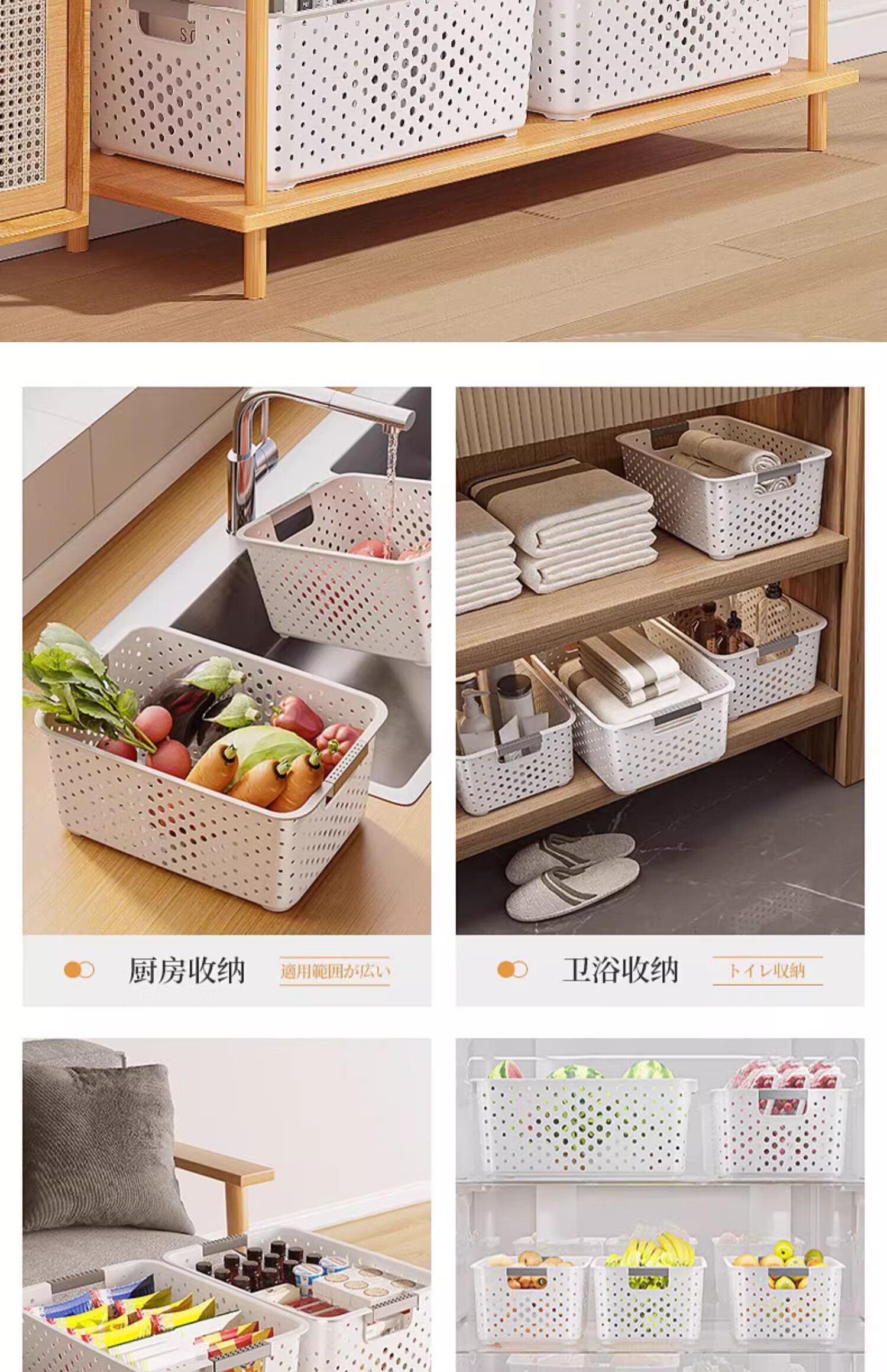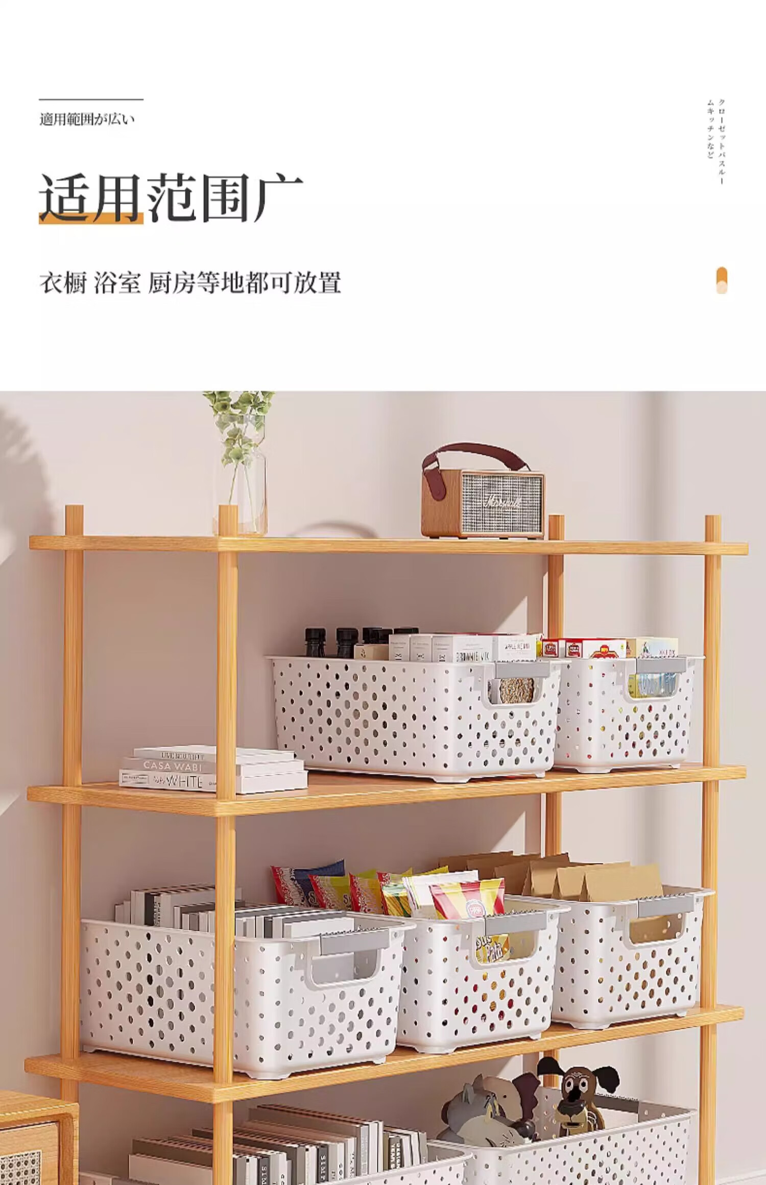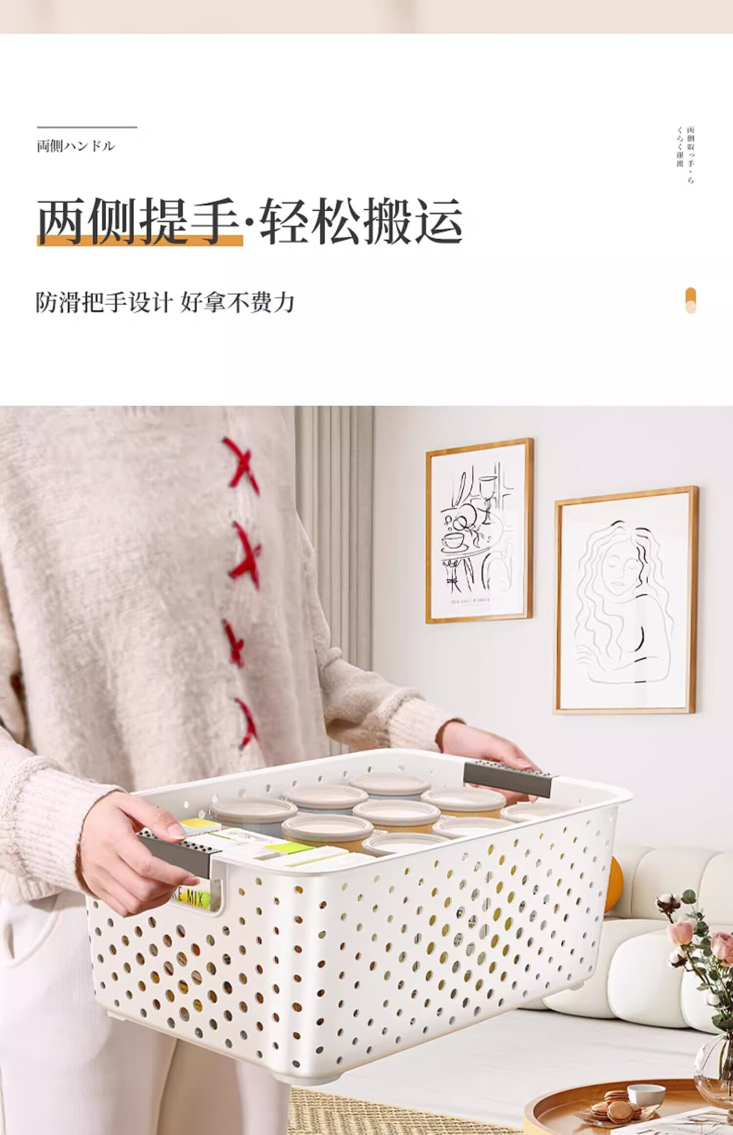 稻草熊零食玩具塑料收纳盒汽车杂物收纳筐车内宿舍户外物品办公收纳篮 北欧白-杂物收纳筐 大号【3个装】31*21*12.5cm