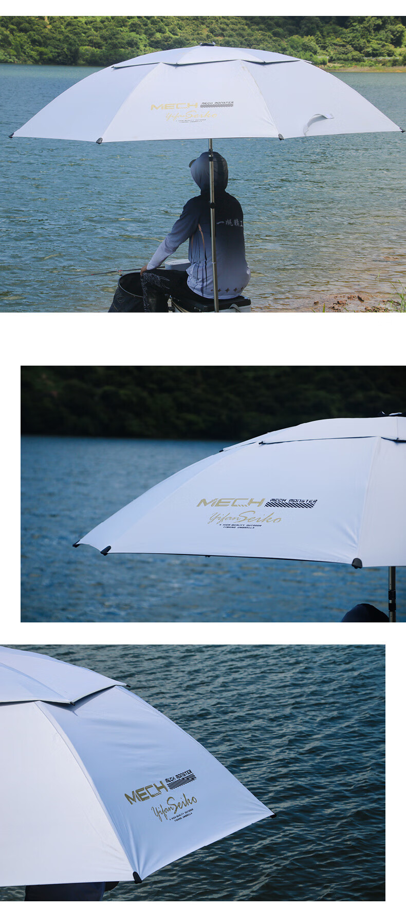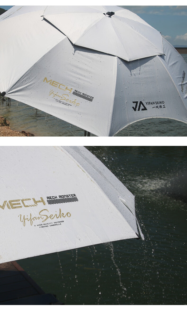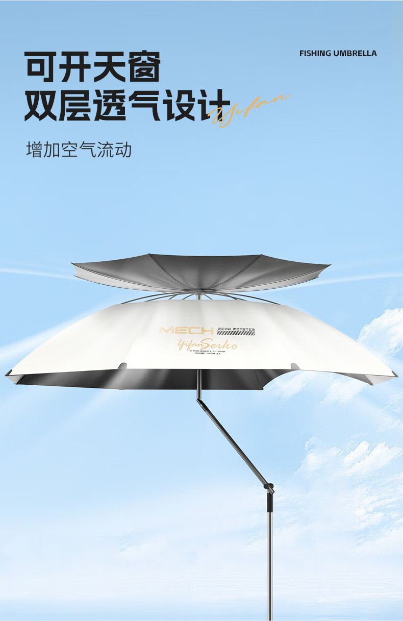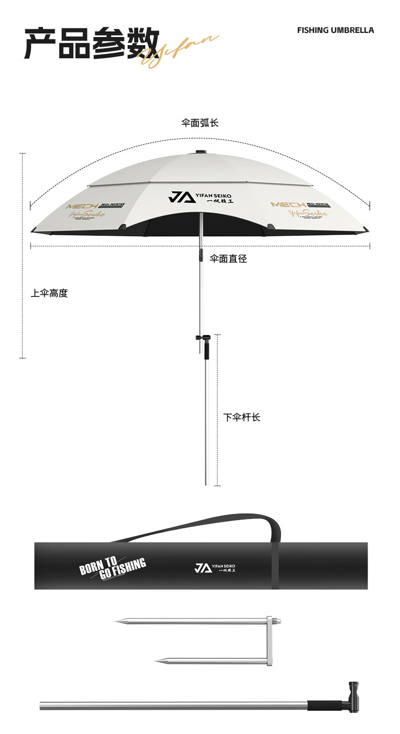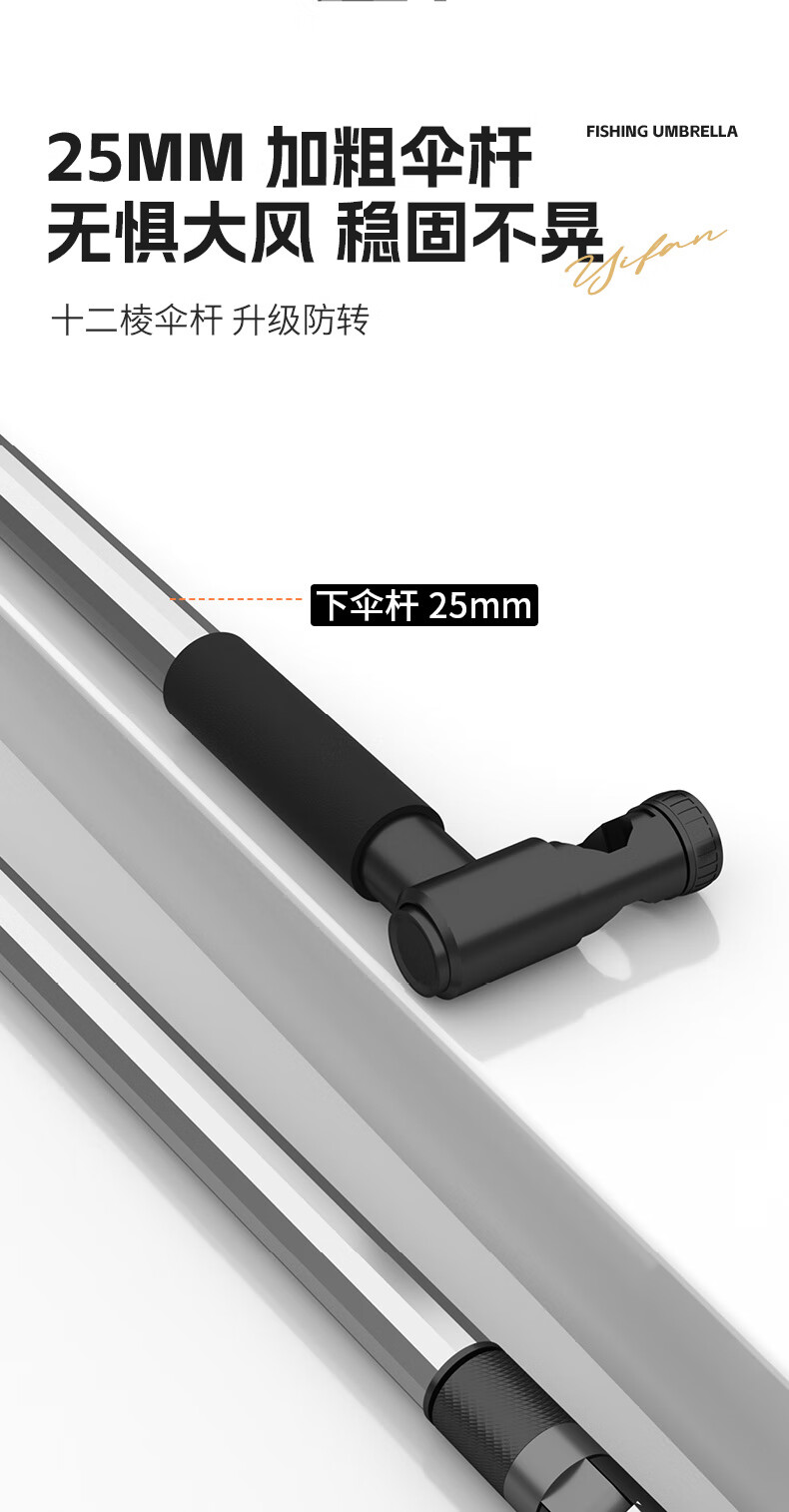 一帆精工新款户外2.4米钓鱼遮阳伞拐杖双弯机械臂多向调节防雨钓伞 2.4米 【双弯】象牙白(带伞杆)