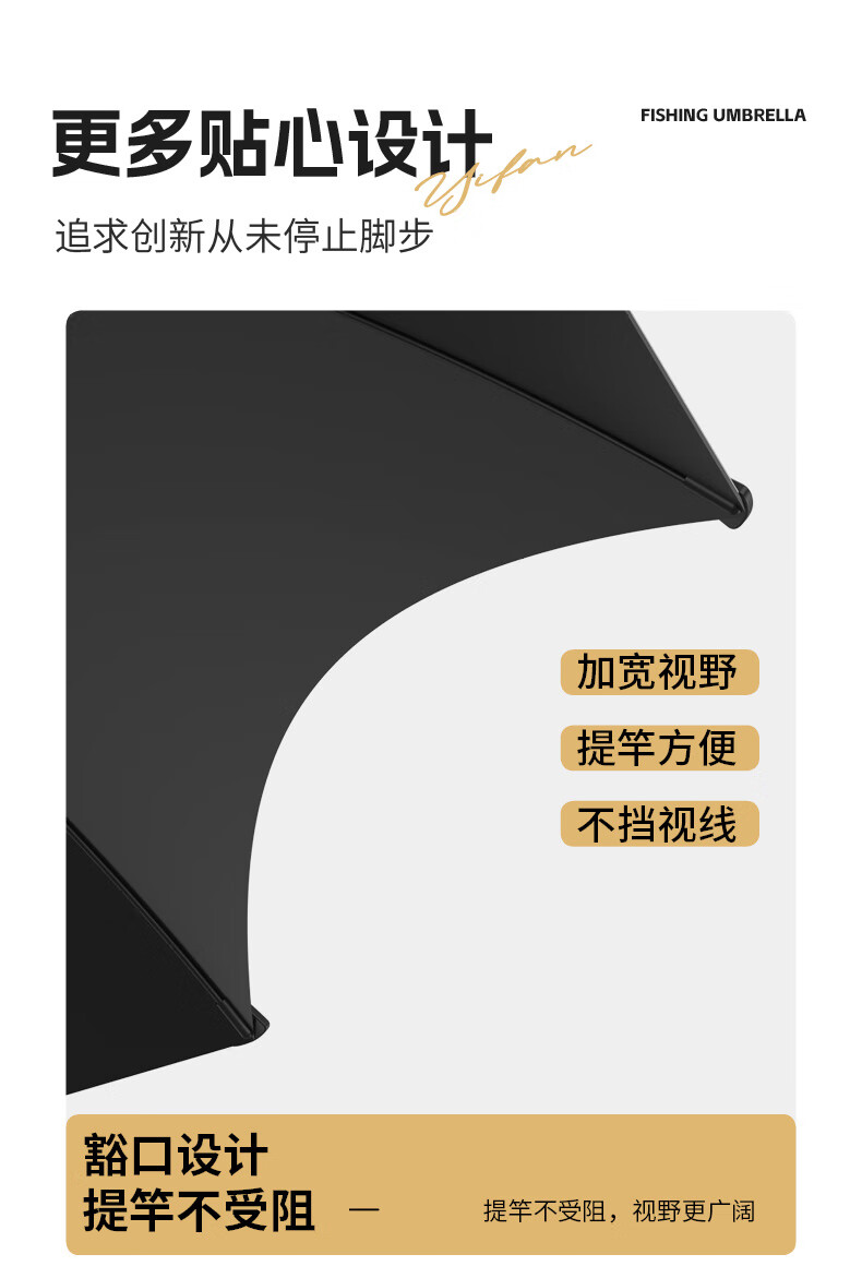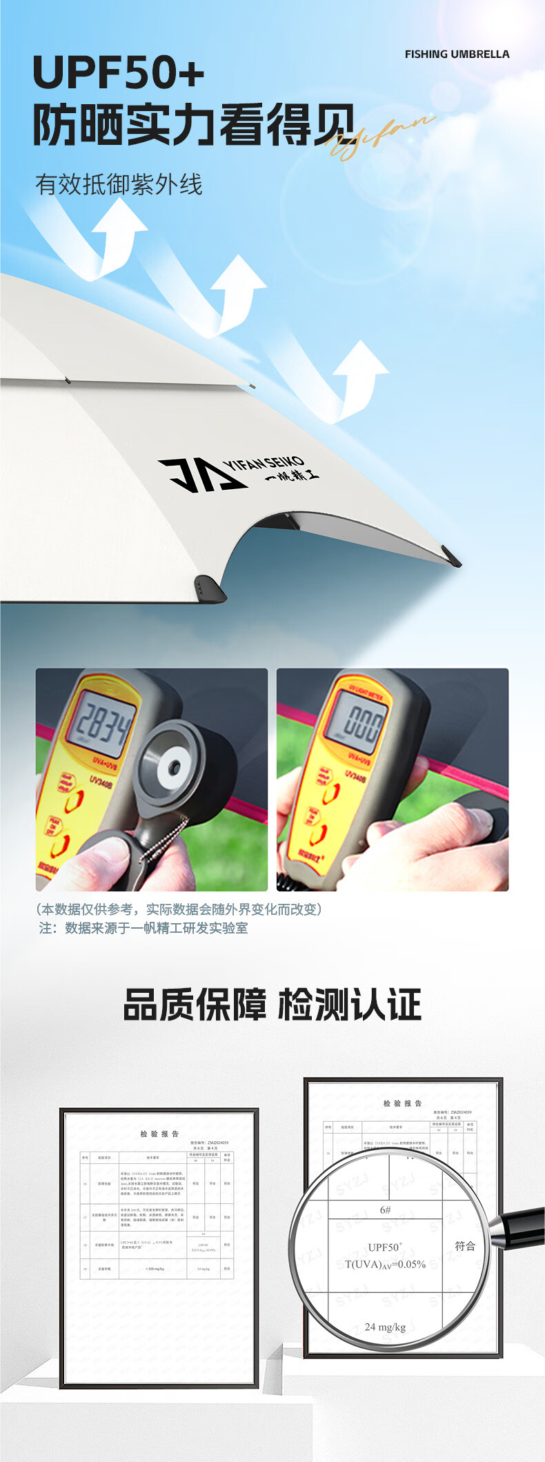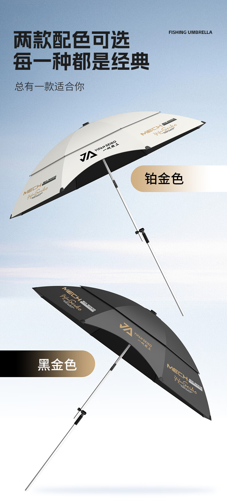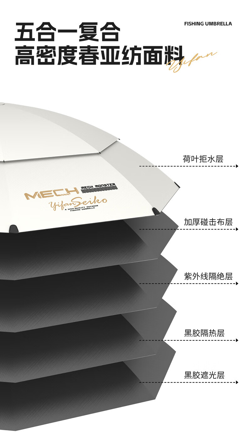 一帆精工新款户外2.4米钓鱼遮阳伞拐杖双弯机械臂多向调节防雨钓伞 2.4米 【双弯】象牙白(带伞杆)