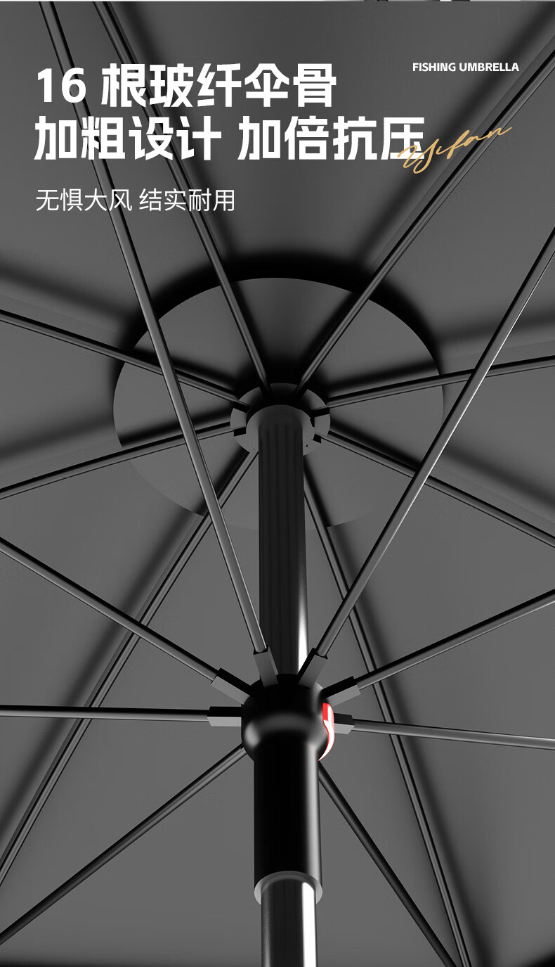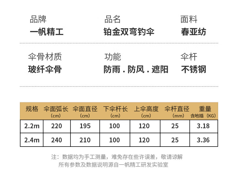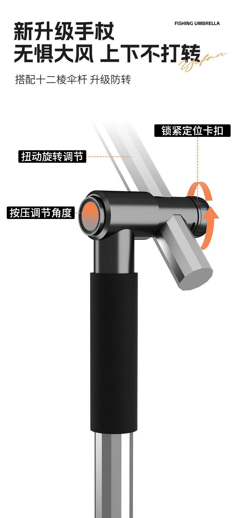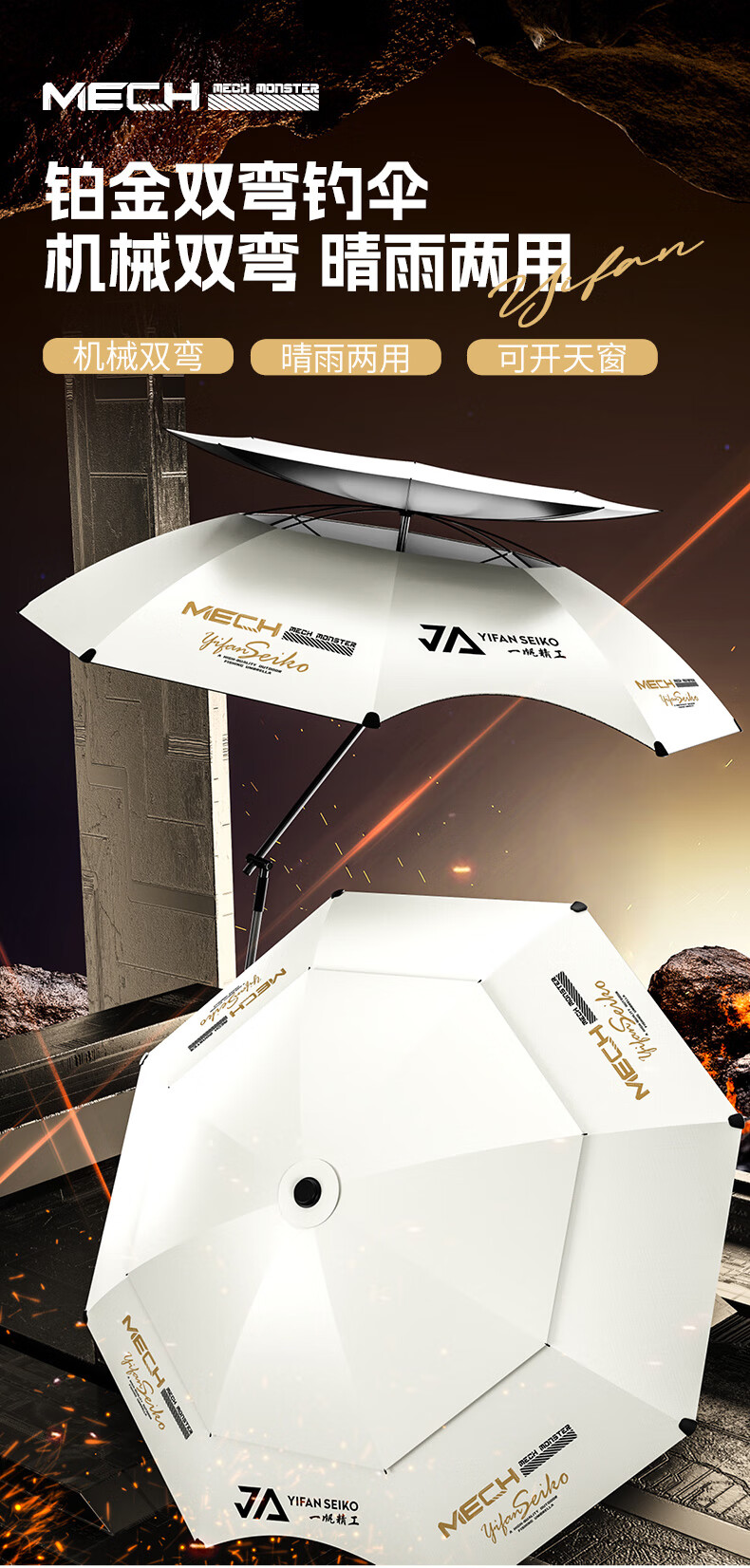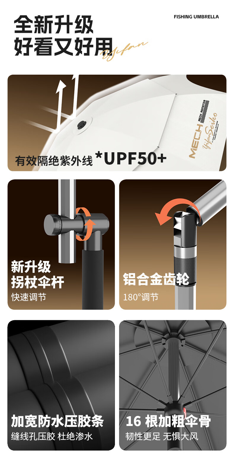 一帆精工新款户外2.4米钓鱼遮阳伞拐杖双弯机械臂多向调节防雨钓伞 2.4米 【双弯】象牙白(带伞杆)