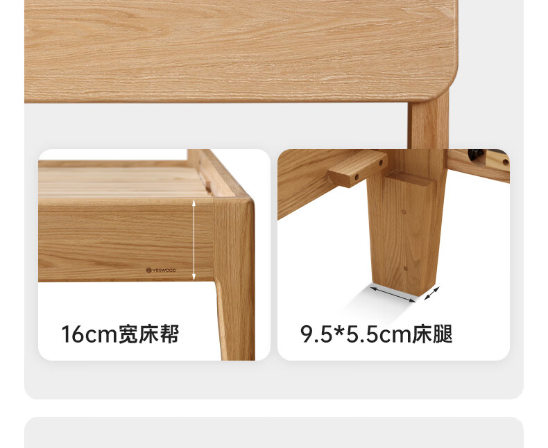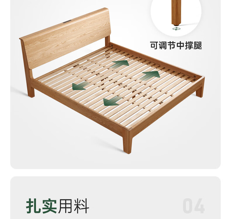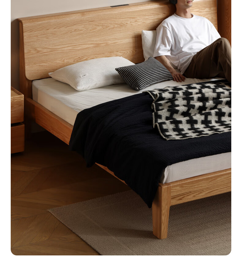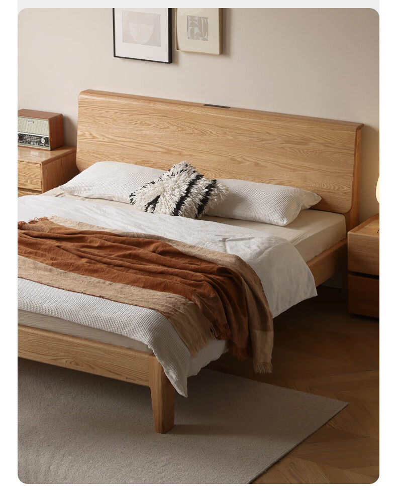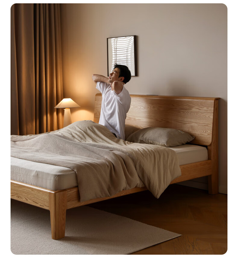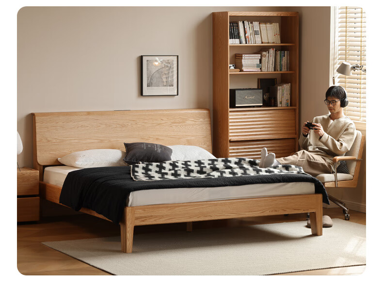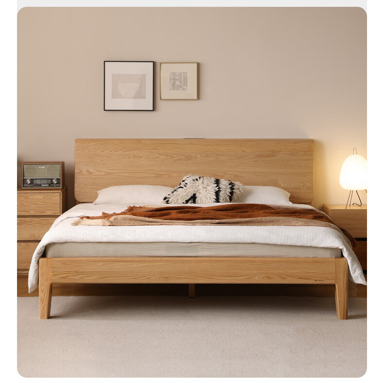 源氏木语实木床现代橡木双人床北欧卧室家用原木风Y110B04低铺床|京仓款