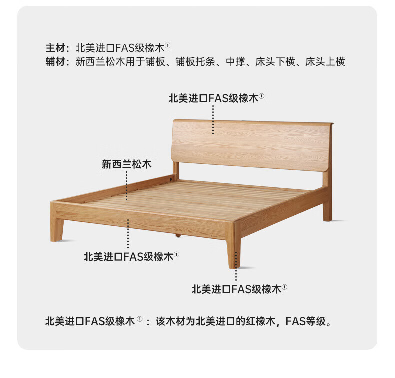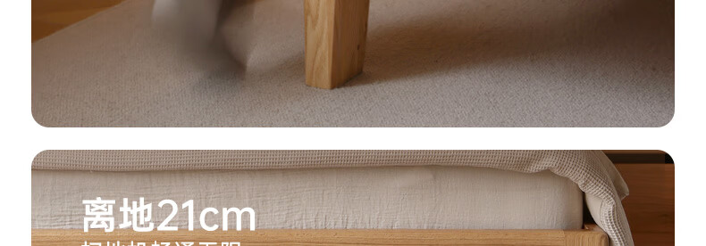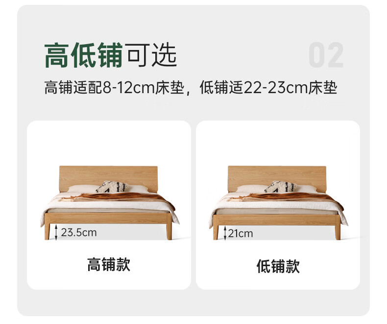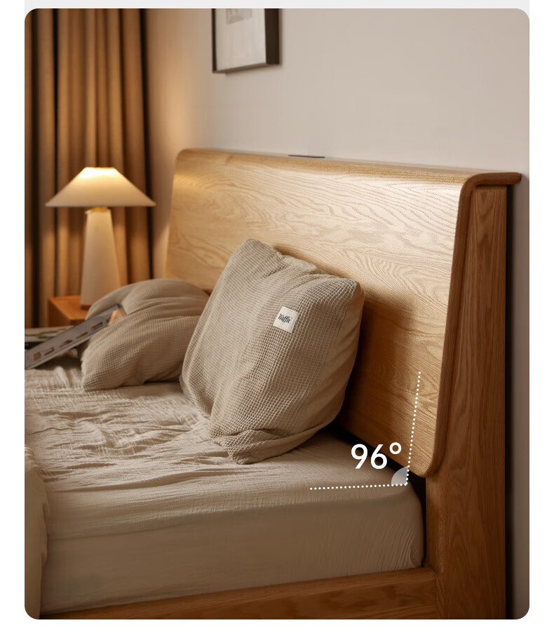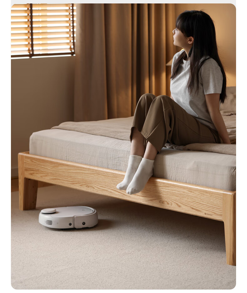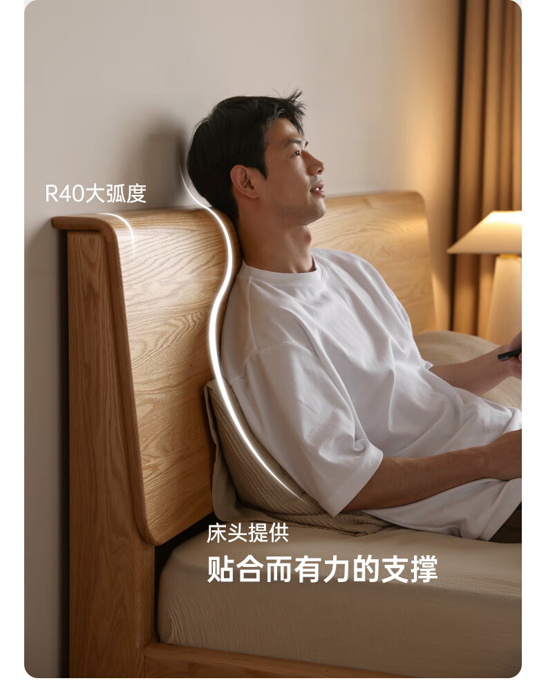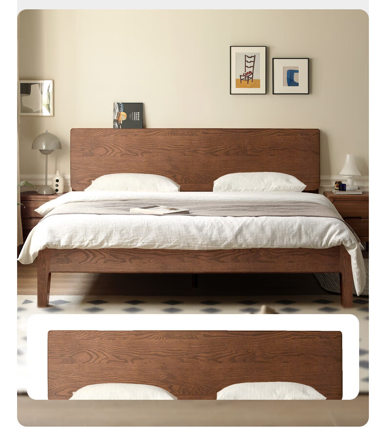 源氏木语实木床现代橡木双人床北欧卧室家用原木风Y110B04低铺床|京仓款