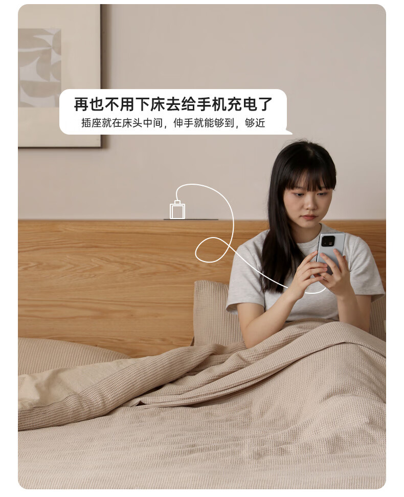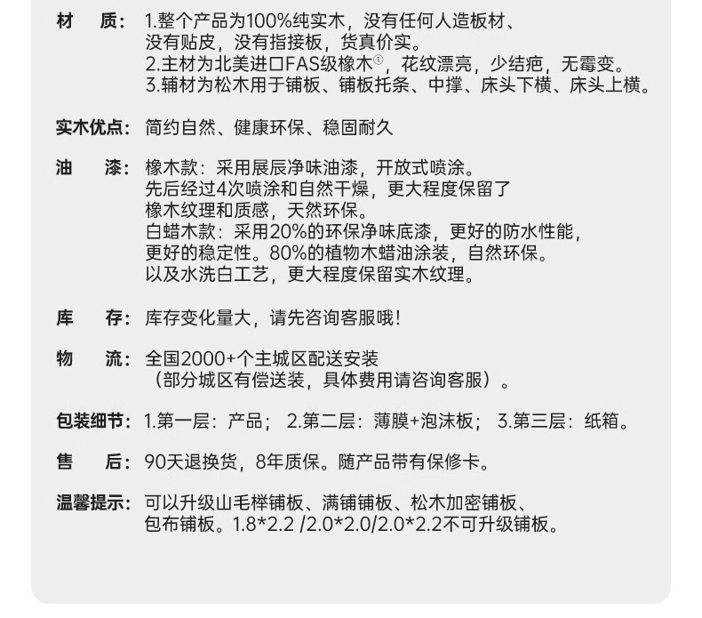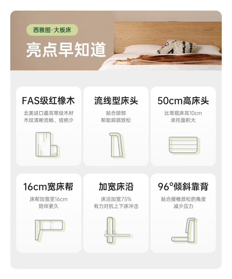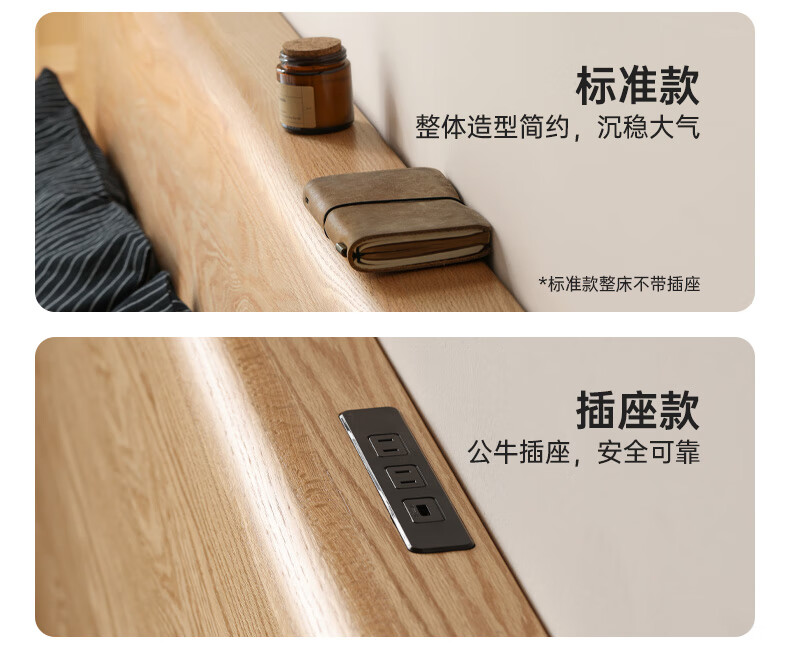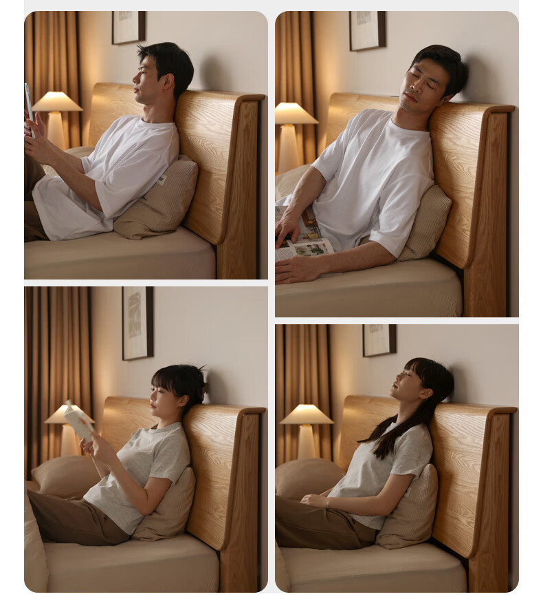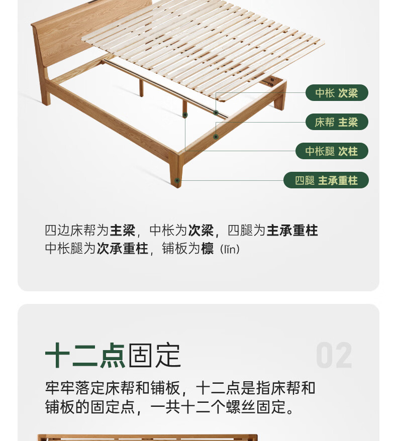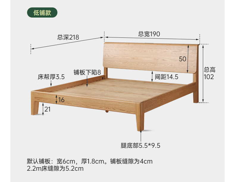 源氏木语实木床现代橡木双人床北欧卧室家用原木风Y110B04低铺床|京仓款