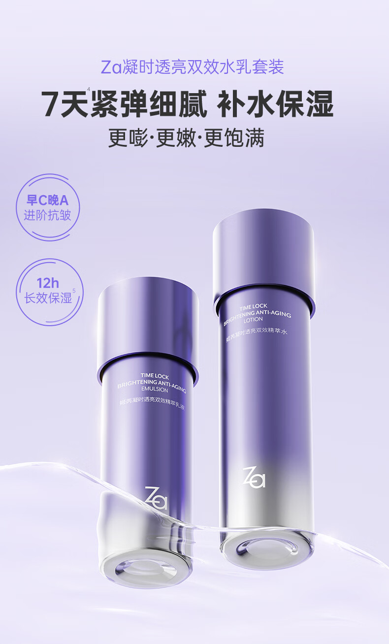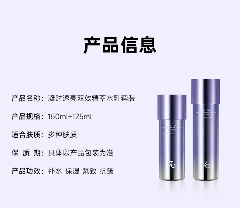 姬芮(ZA)凝时透亮双效补水套装(水+乳 改善暗沉干燥 高保湿) 圣诞礼物