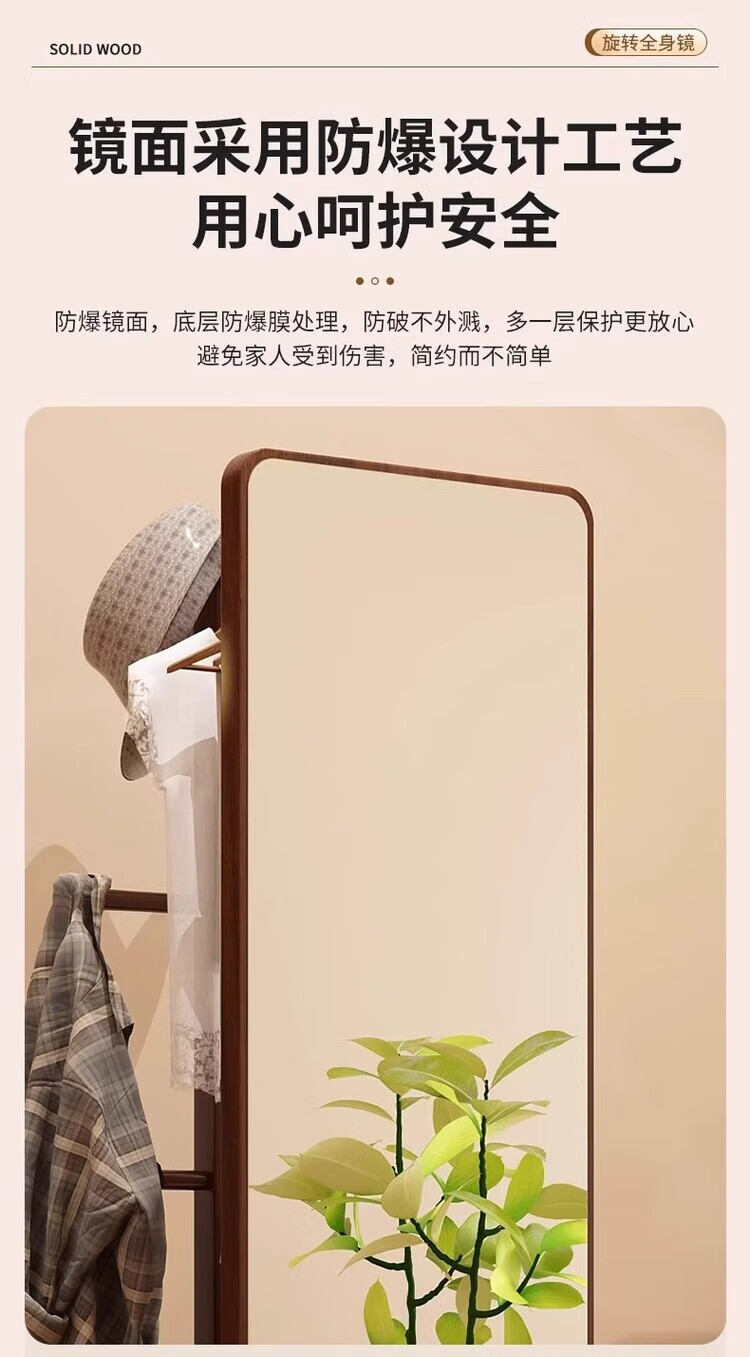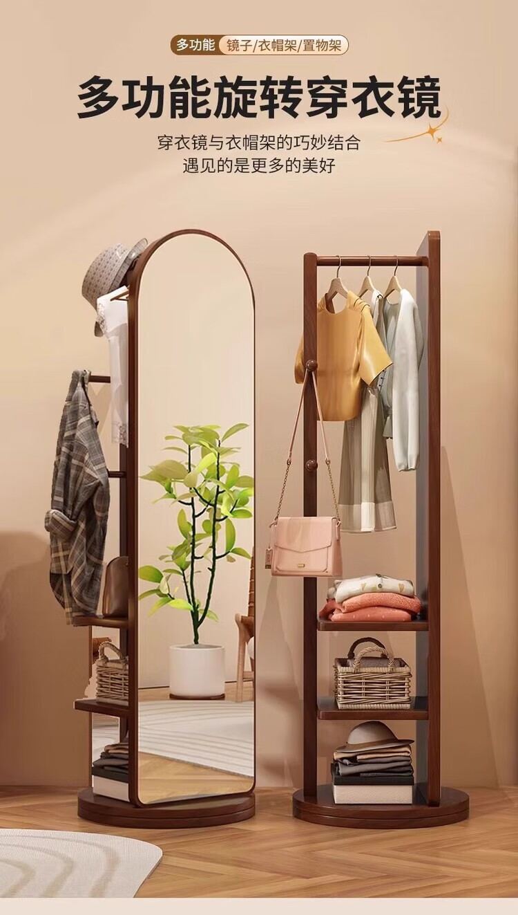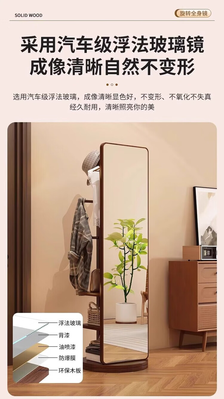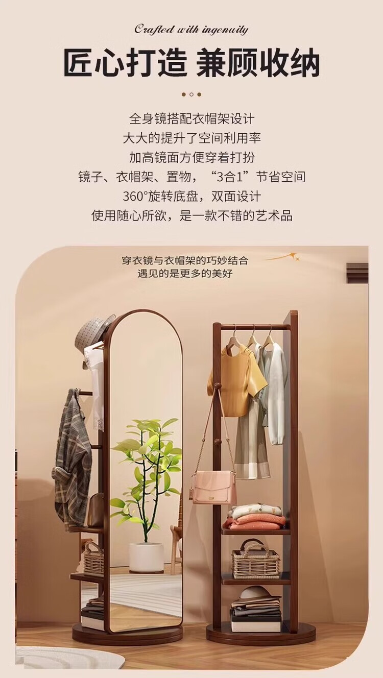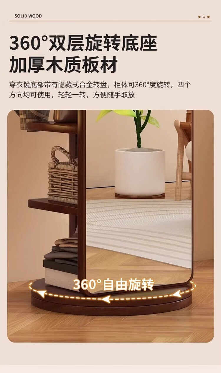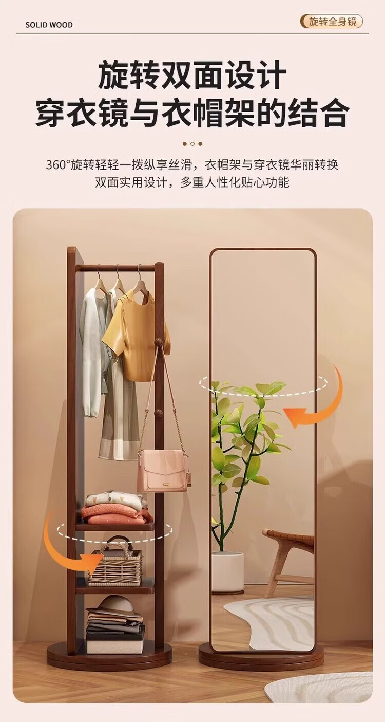 欣慕雅全身镜落地镜家用衣帽架一体穿衣镜可旋转移动女生卧室大试衣镜子 【方形中号双层】胡桃色40*170【旋转+储物+挂衣】