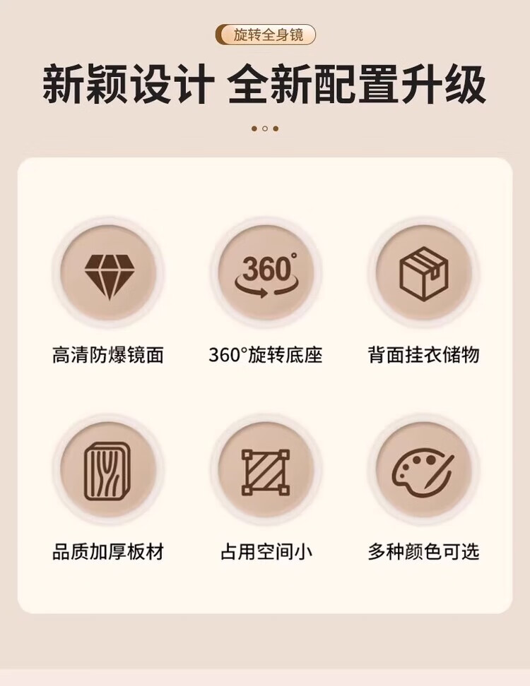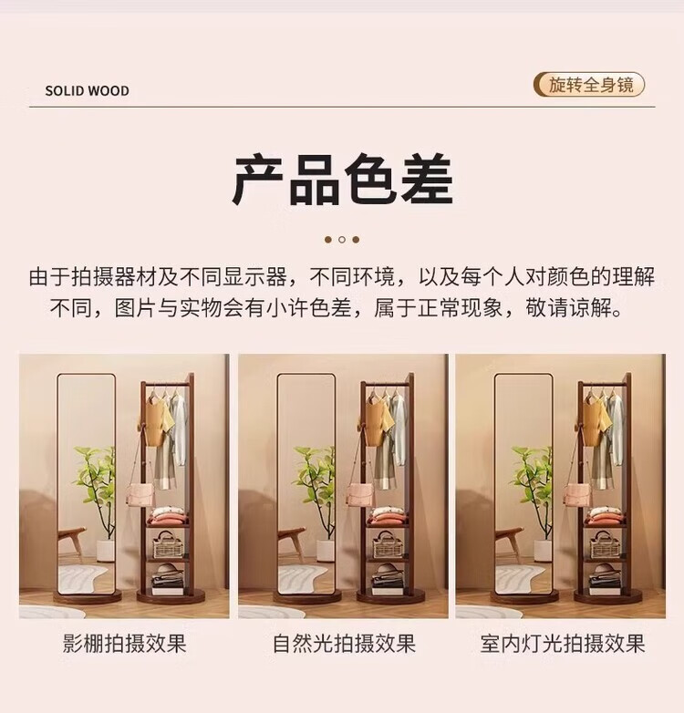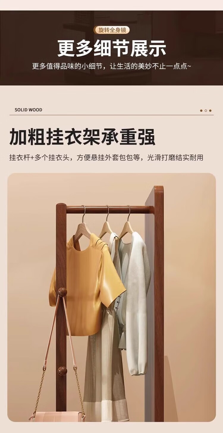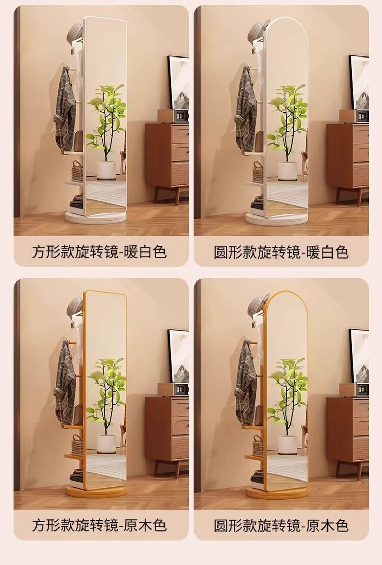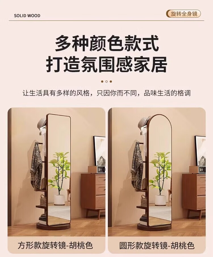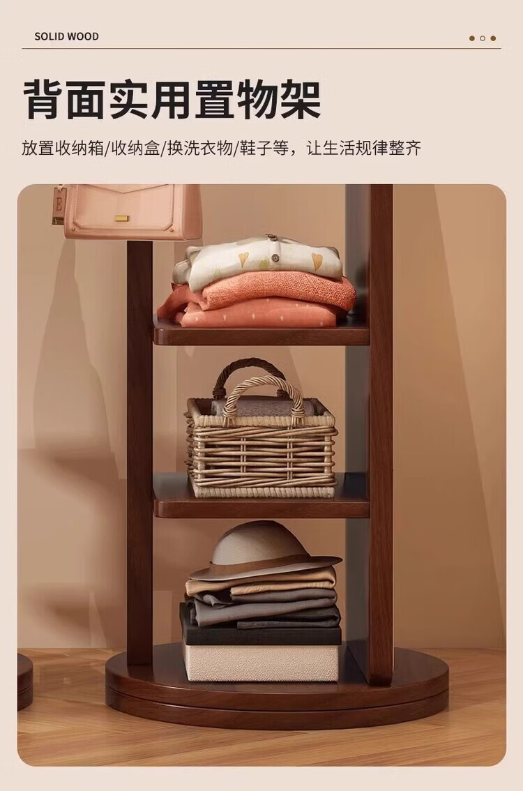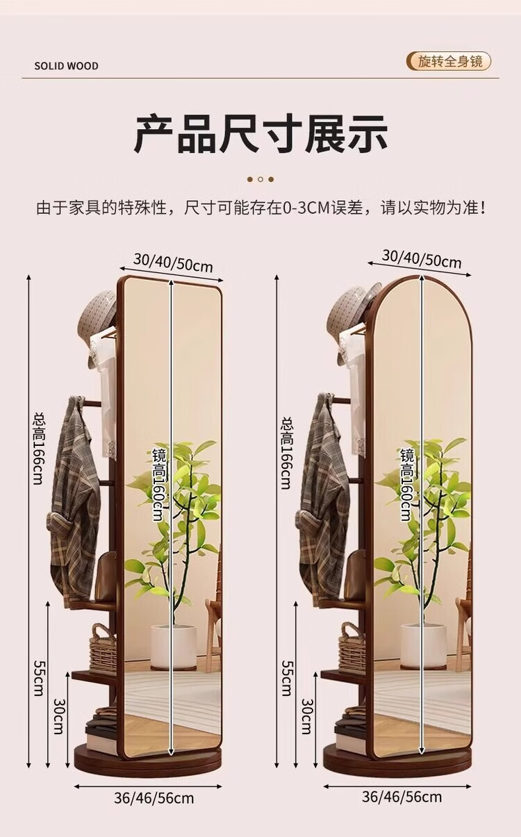 欣慕雅全身镜落地镜家用衣帽架一体穿衣镜可旋转移动女生卧室大试衣镜子 【方形中号双层】胡桃色40*170【旋转+储物+挂衣】