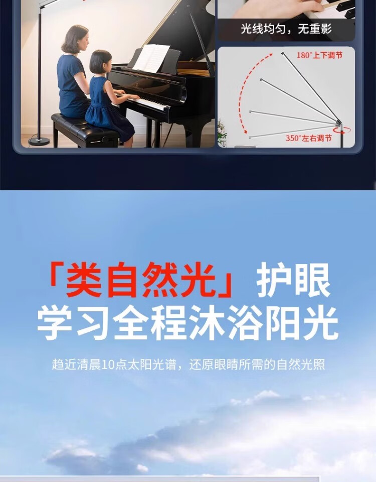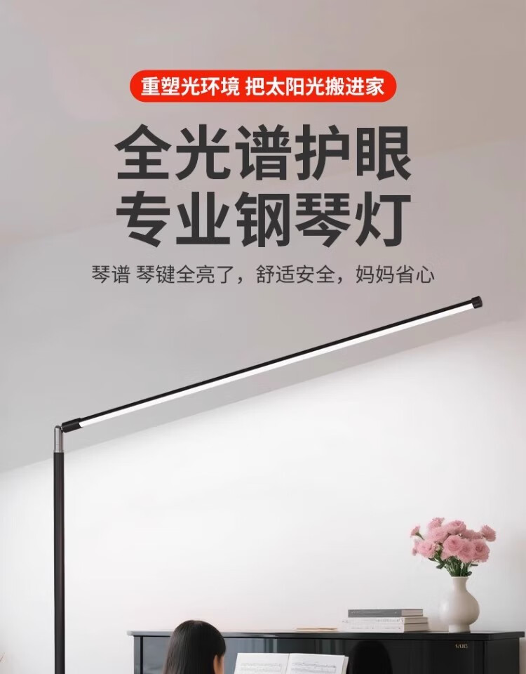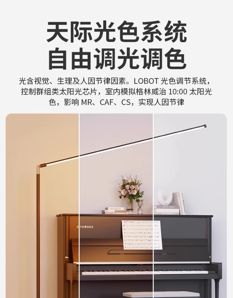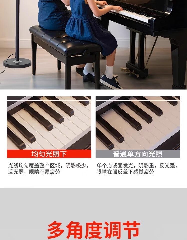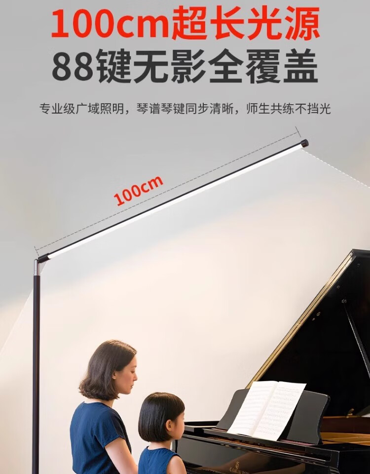 拉伯塔钢琴护眼灯练琴专用落地台灯全光谱儿童学生学习用专业led照明灯 50W【普瑞版-60cm博士白】三色调光+低蓝光 【正品美国普瑞光源】全光谱高显色
