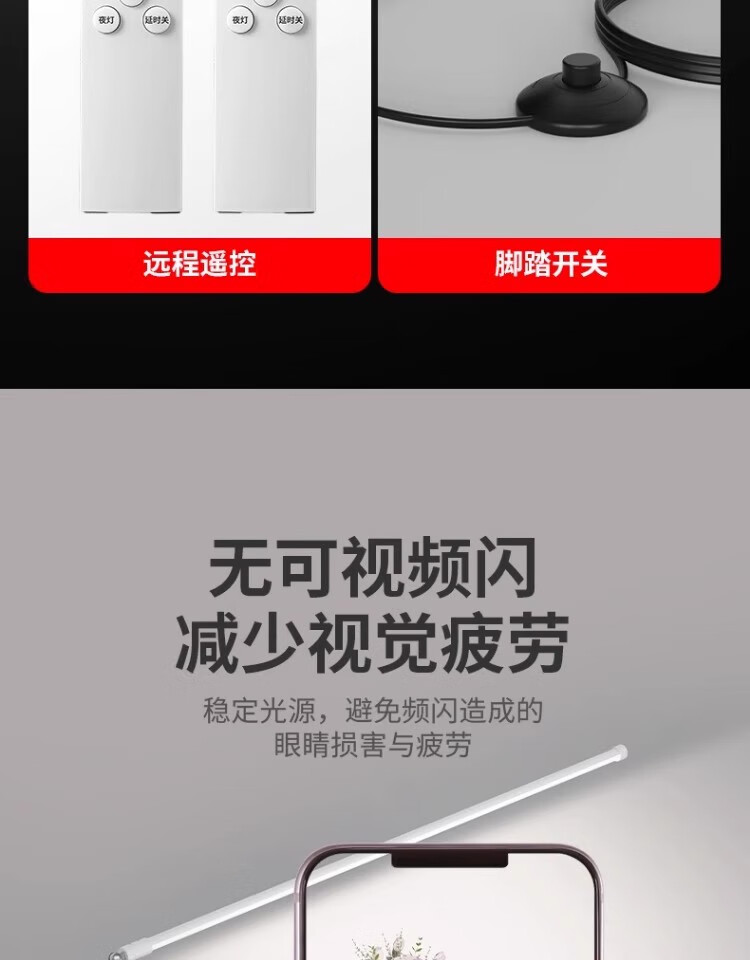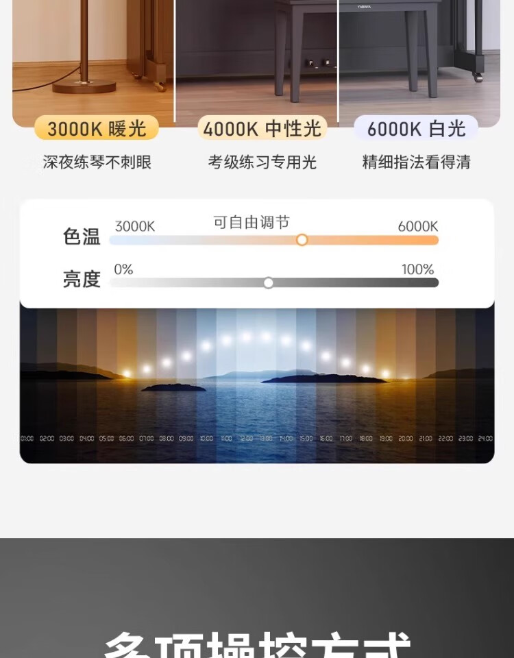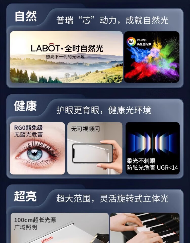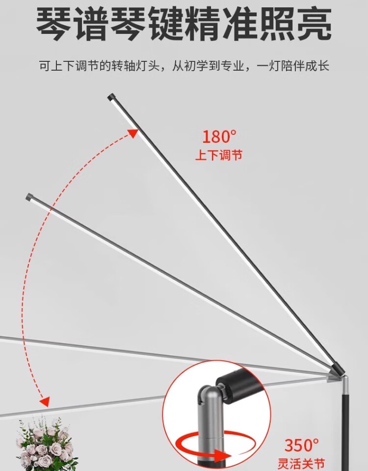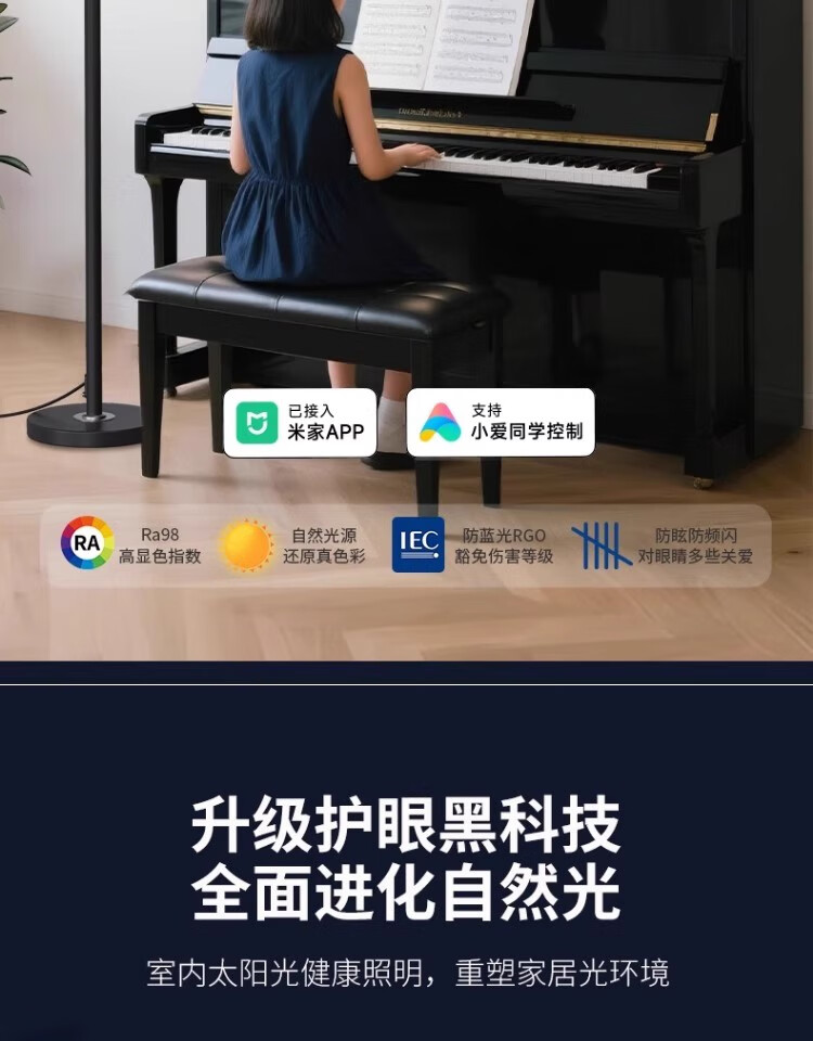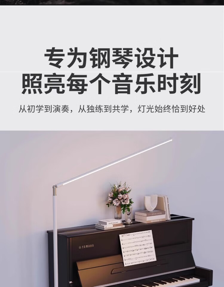 拉伯塔钢琴护眼灯练琴专用落地台灯全光谱儿童学生学习用专业led照明灯 50W【普瑞版-60cm博士白】三色调光+低蓝光 【正品美国普瑞光源】全光谱高显色