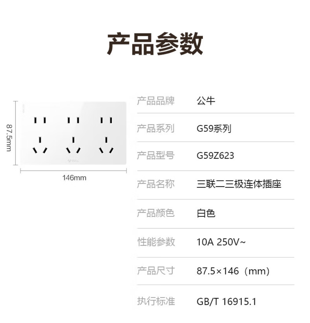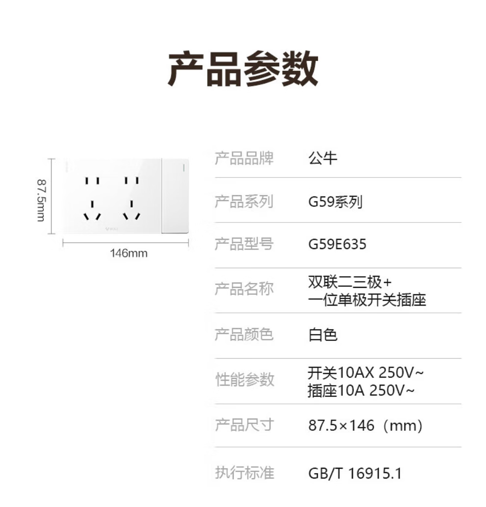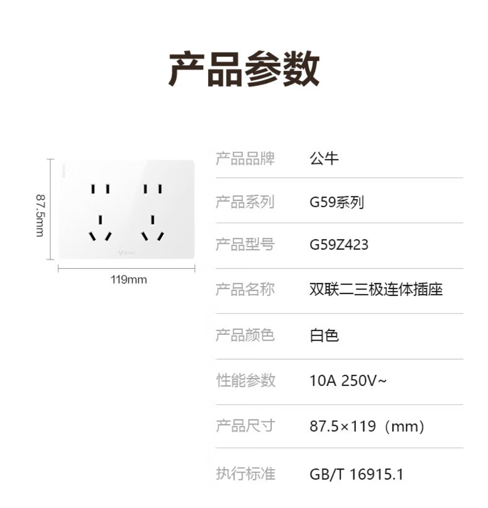 NVC雷士电工 开关插座 10a斜五孔插座 86型暗装插座面板 N25奶油白