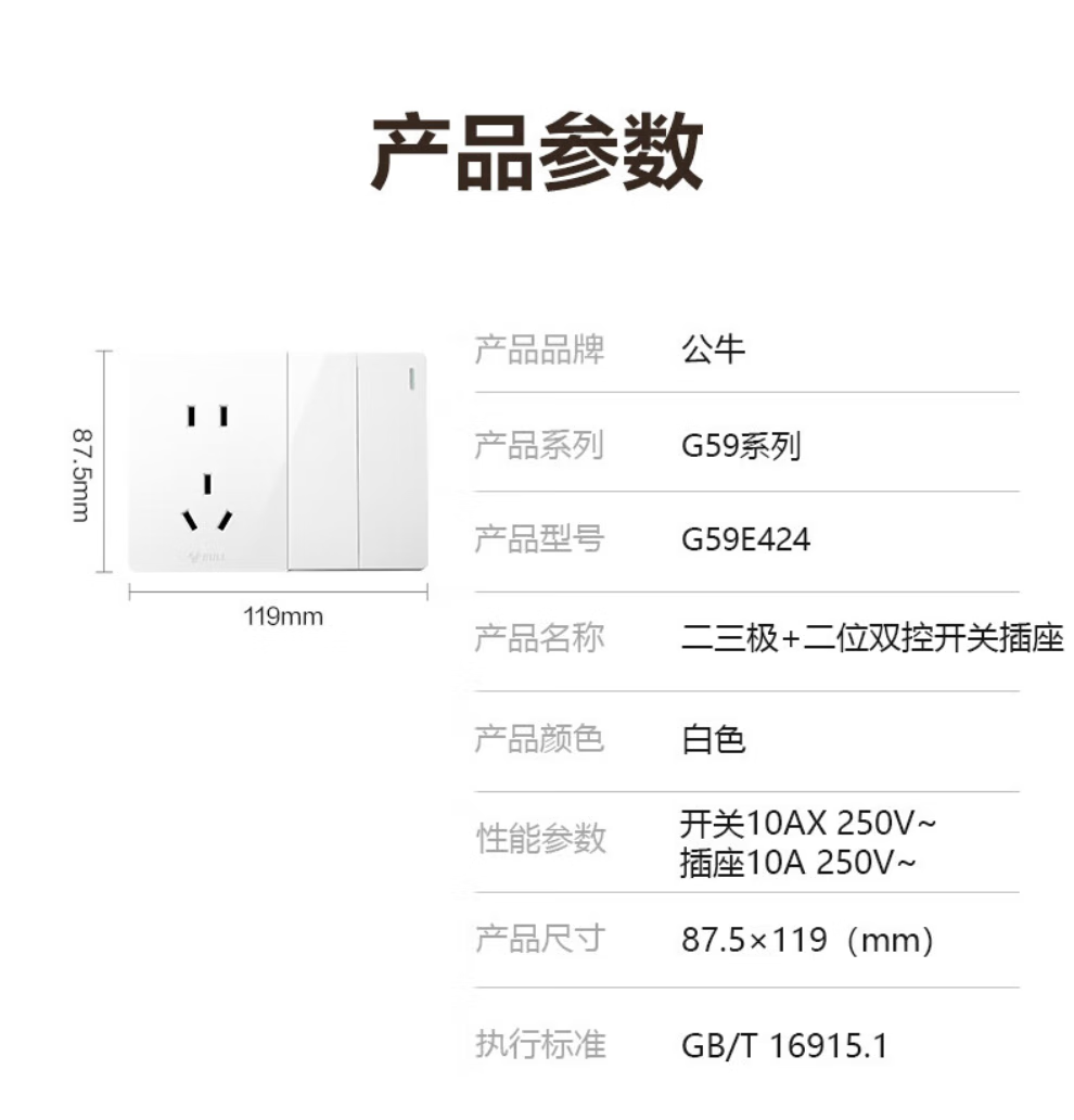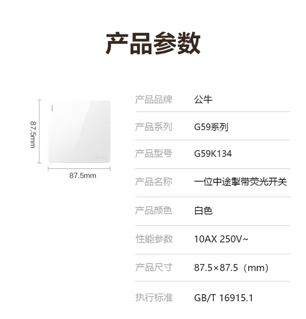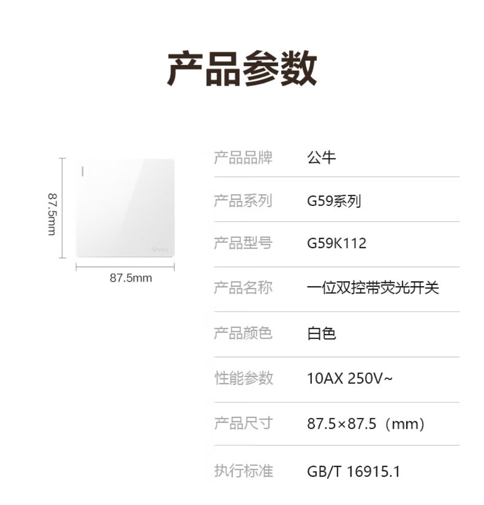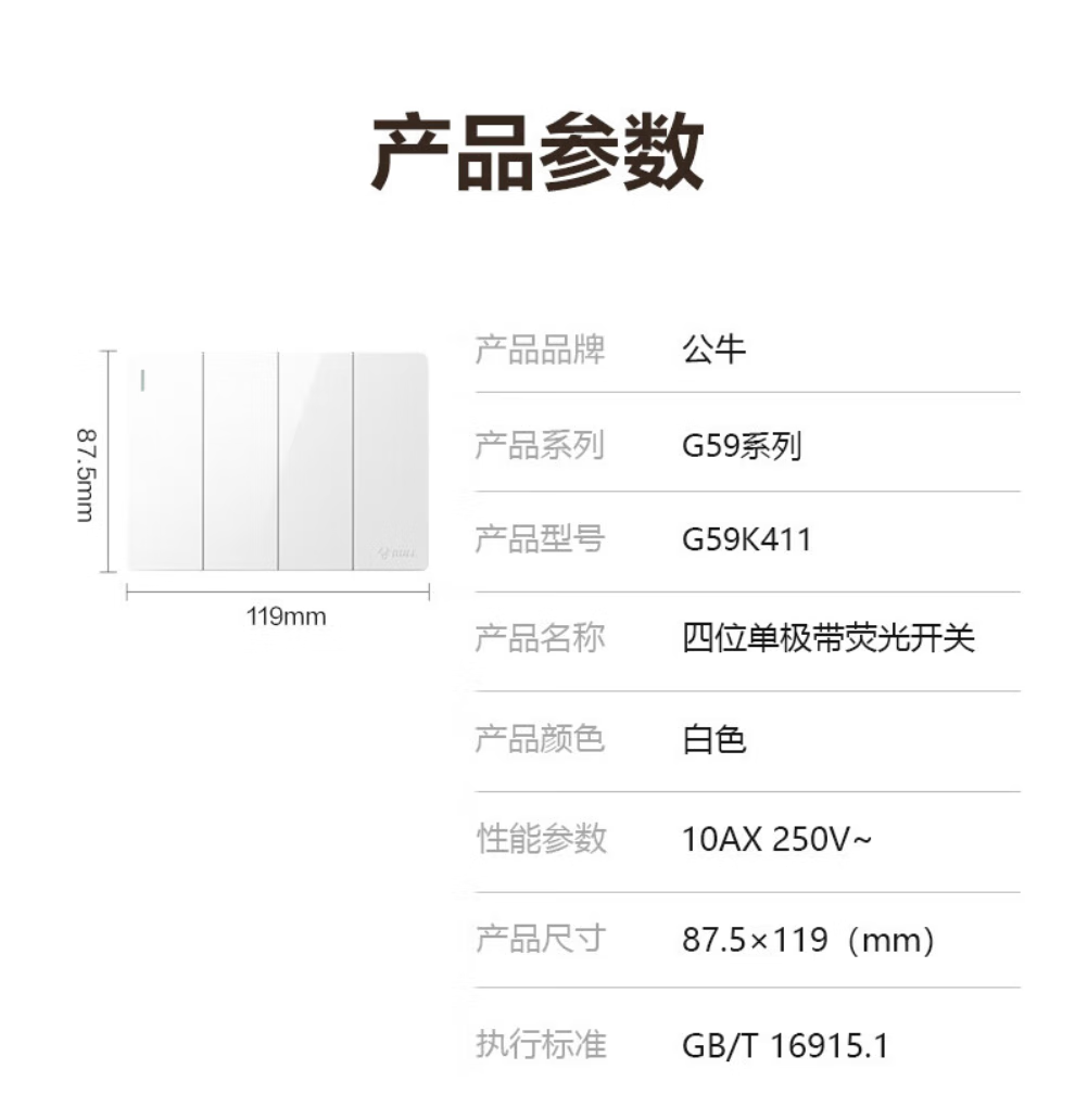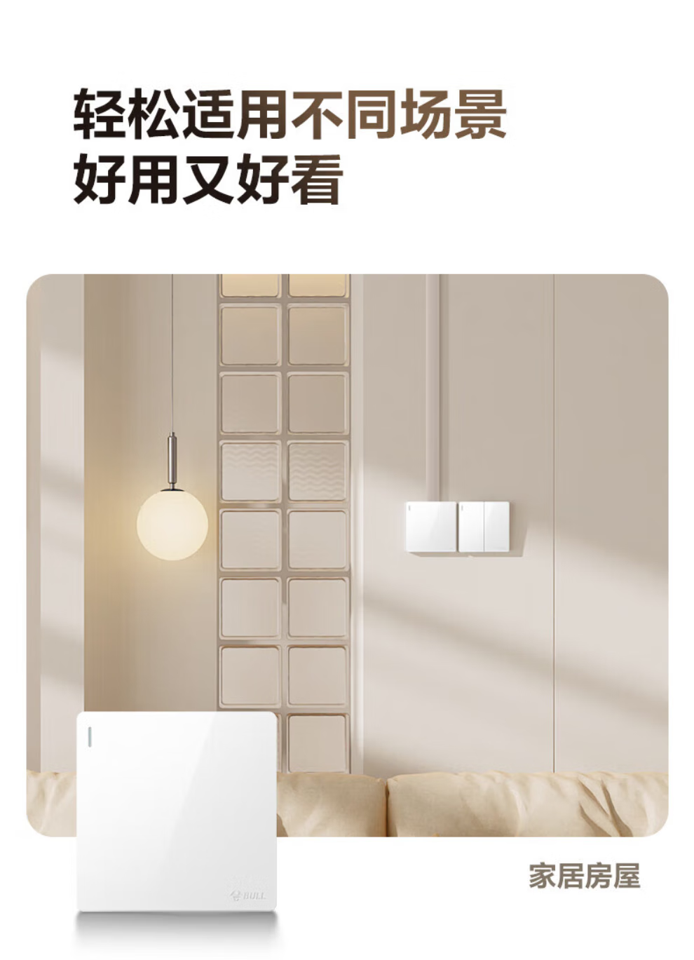 公牛明装开关插座墙面外线明线盒纤薄一体不用开槽免打孔居家白色面板 一开单控(1开单联)