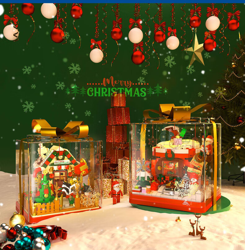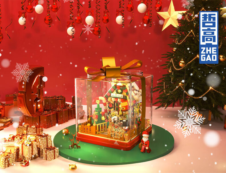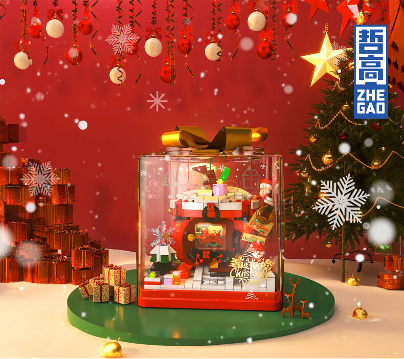 哲高圣诞节礼物创意积木拼装圣诞树圣诞老人diy手工玩具送男女生节日 礼盒圣诞屋【精美摆件】654PCS