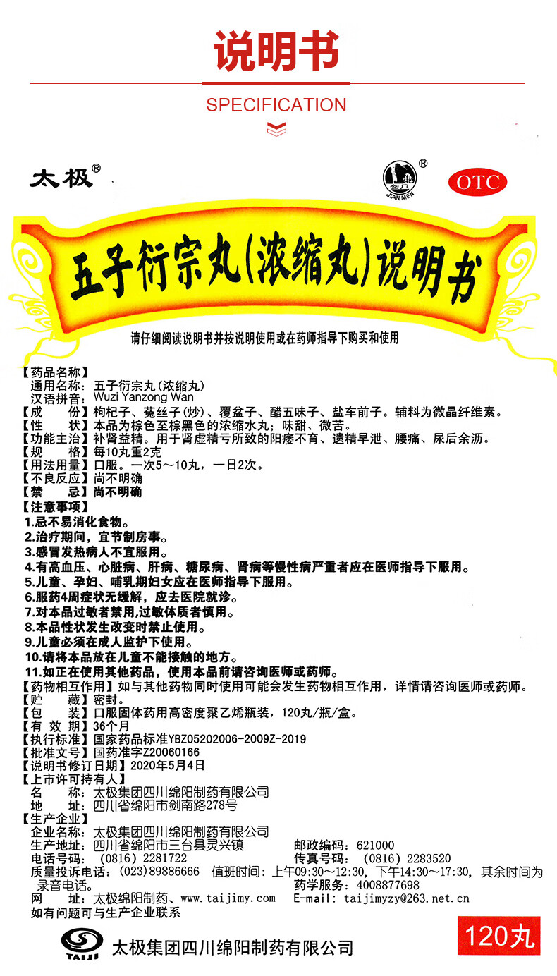 太极五子衍宗丸(浓缩丸)120丸*6盒补肾益精肾虚精亏所致的阳痿不育遗精早泄腰痛尿后余沥正品男科用药自营
