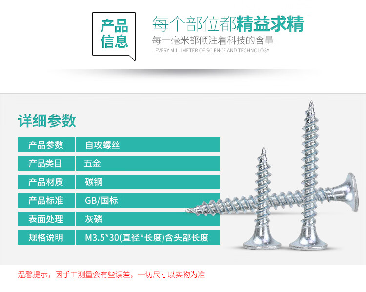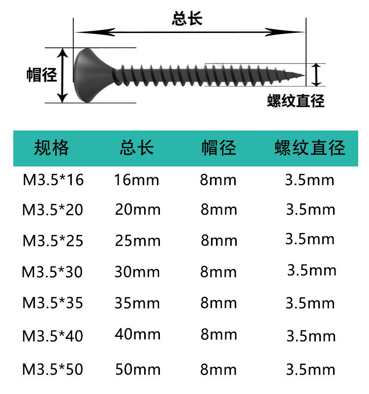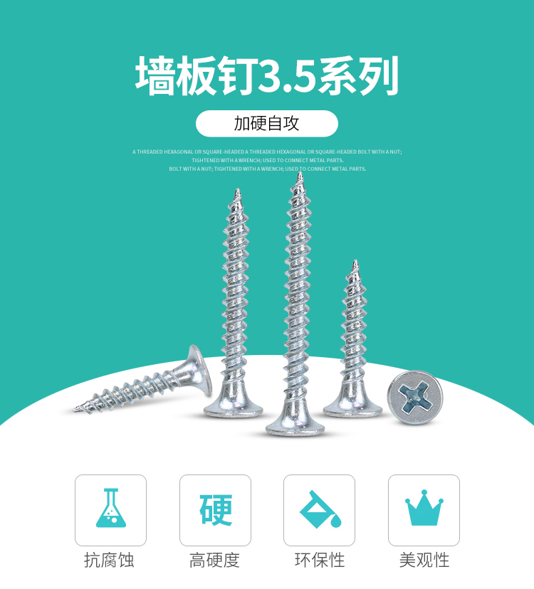 铂特体 墙板自攻螺丝钉 墙板钉干壁钉龙骨自攻螺丝钉纤维木螺钉十字沉头自攻钉 M3.5*20(100只)-蓝白