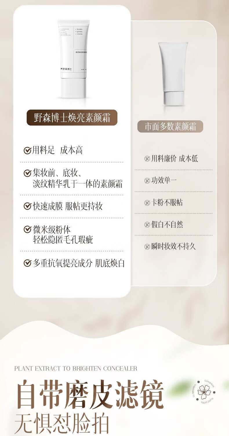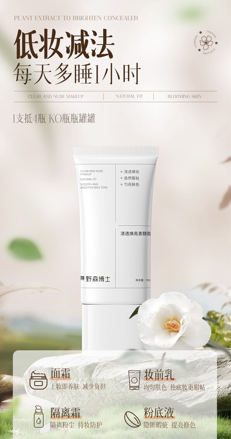 DR. YS 野森博士【拍一发三】素颜霜脸部自然提亮肤色裸妆懒人霜/瓶-A 野森博士清透焕亮素颜霜50g