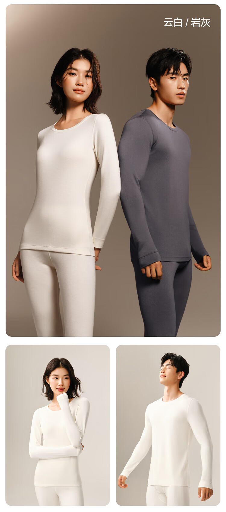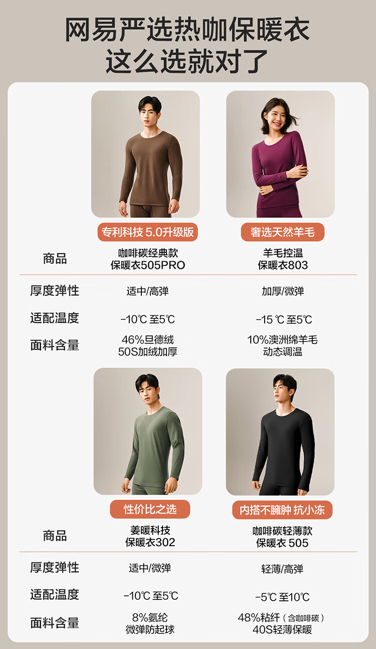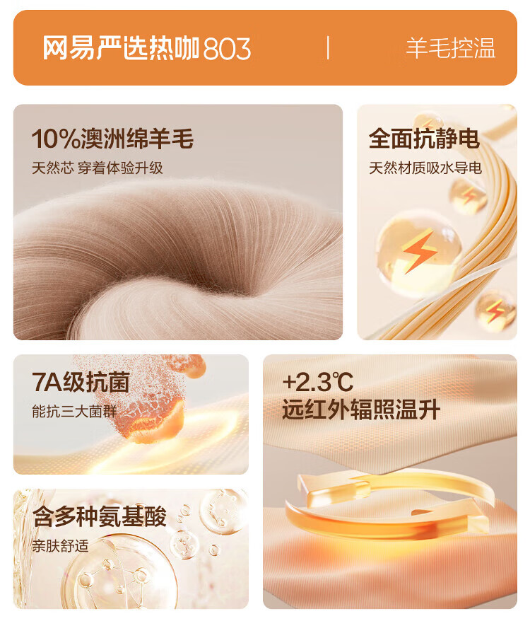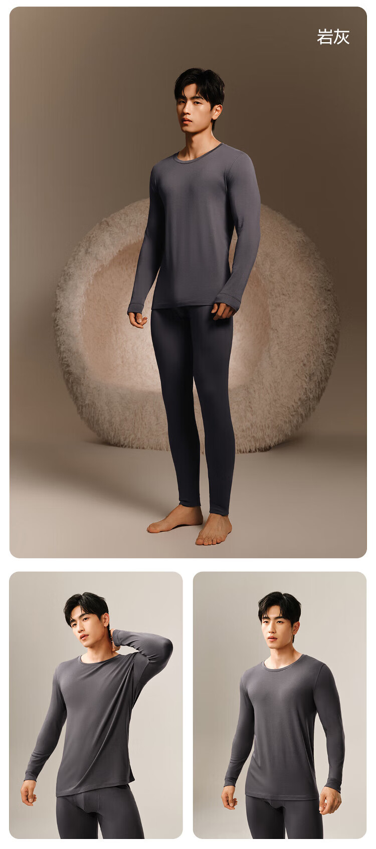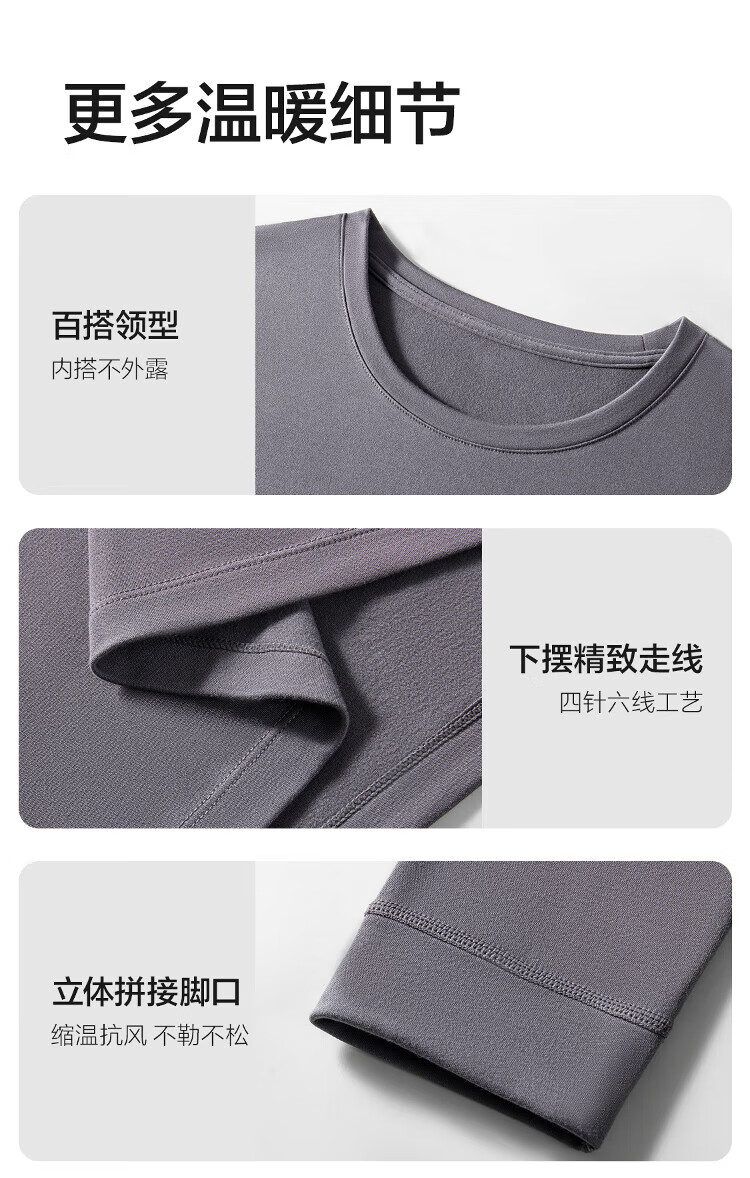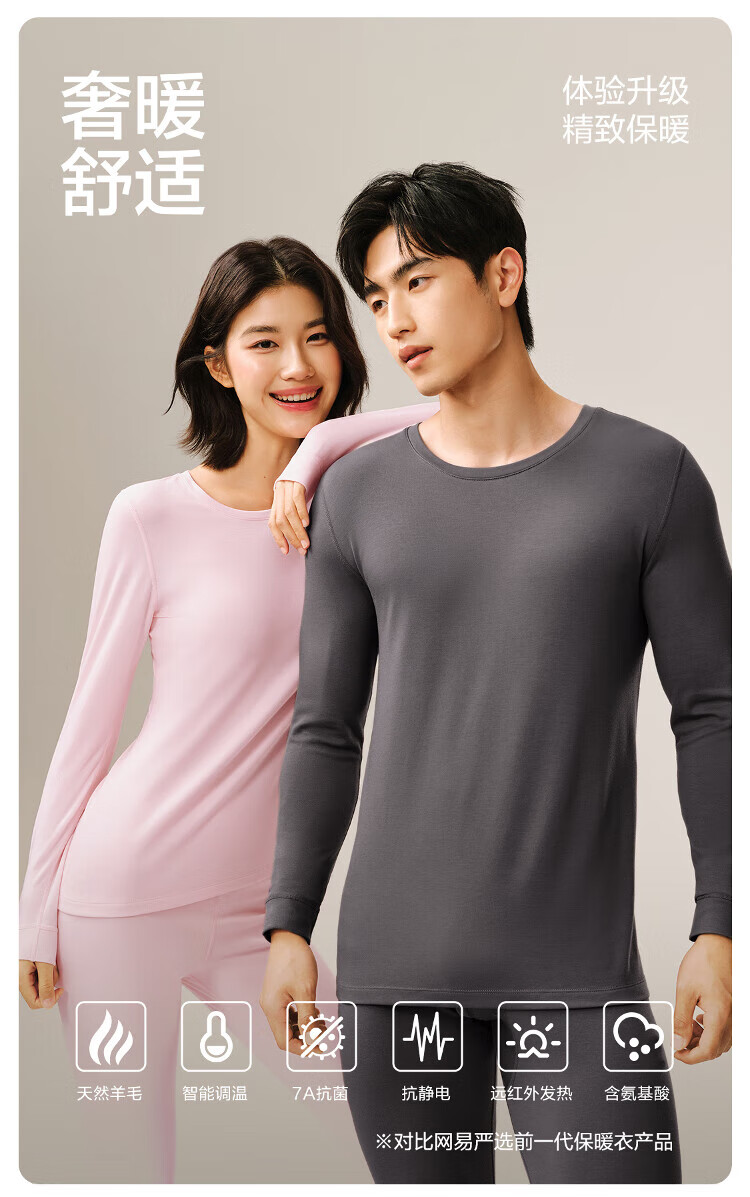 网易严选[新品]热咖803羊毛控温加厚保暖内衣70S超细德绒美肤衣7A抗菌发热 男款-岩灰 L