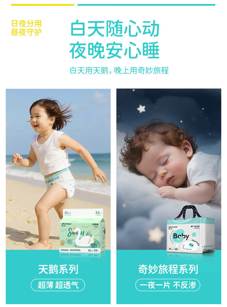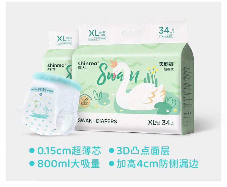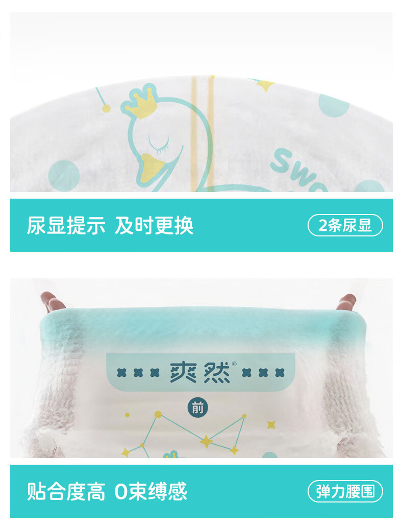 爽然天鹅拉拉裤XXXXL52片超柔透气婴儿尿不湿【品牌直供 安心品质】