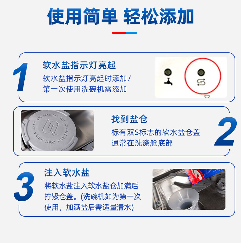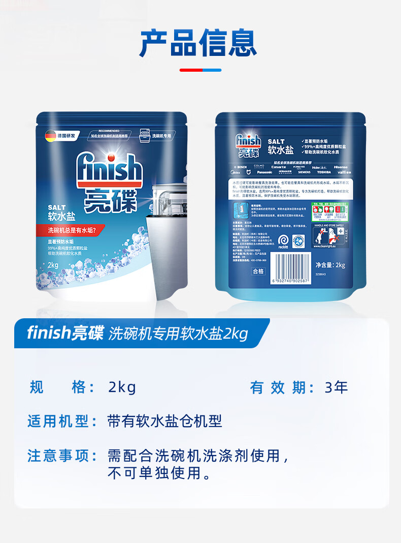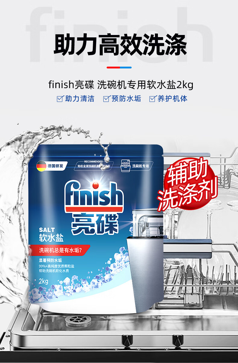 亮碟 洗碗盐清洁剂洗碗机专用软水盐预防水垢延长洗碗机寿命2kg 软水盐*2 软水盐2kg