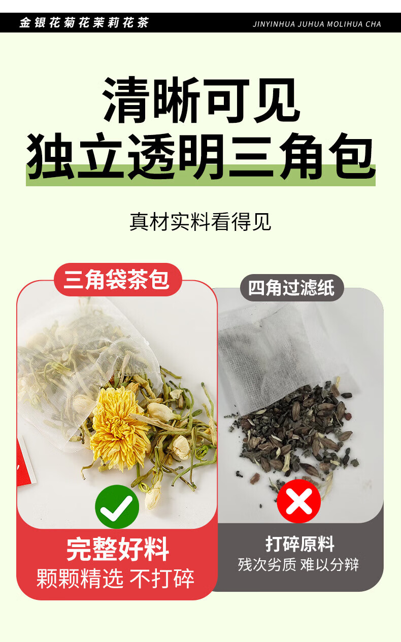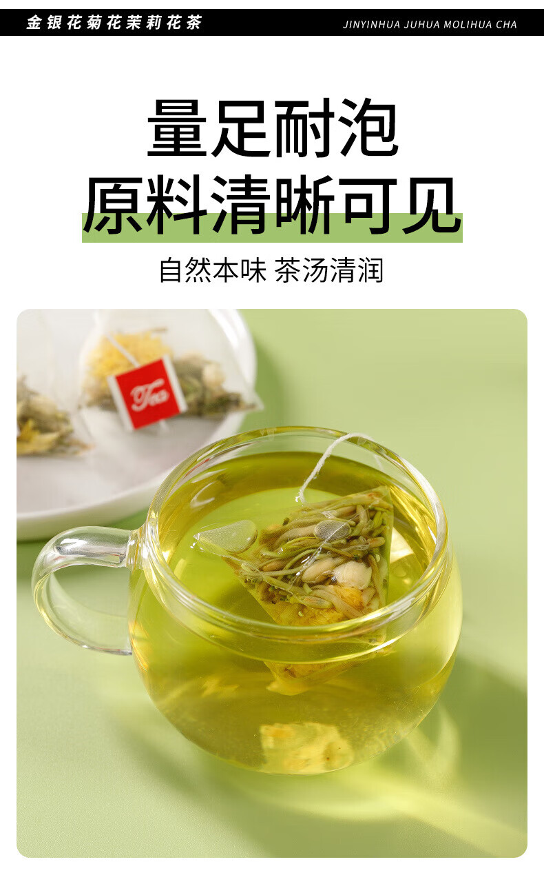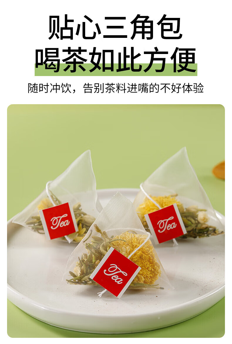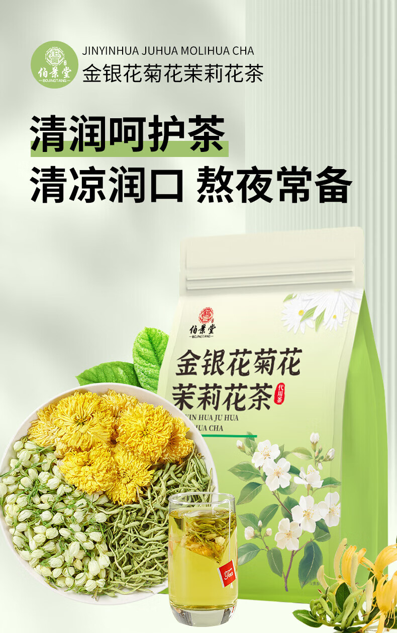 伯景堂金银花菊花茉莉花茶茶包组合三花茶独立三角包热水冲泡 【1袋10包】