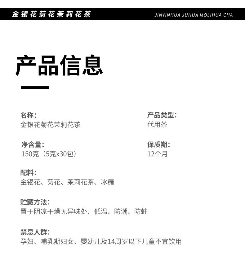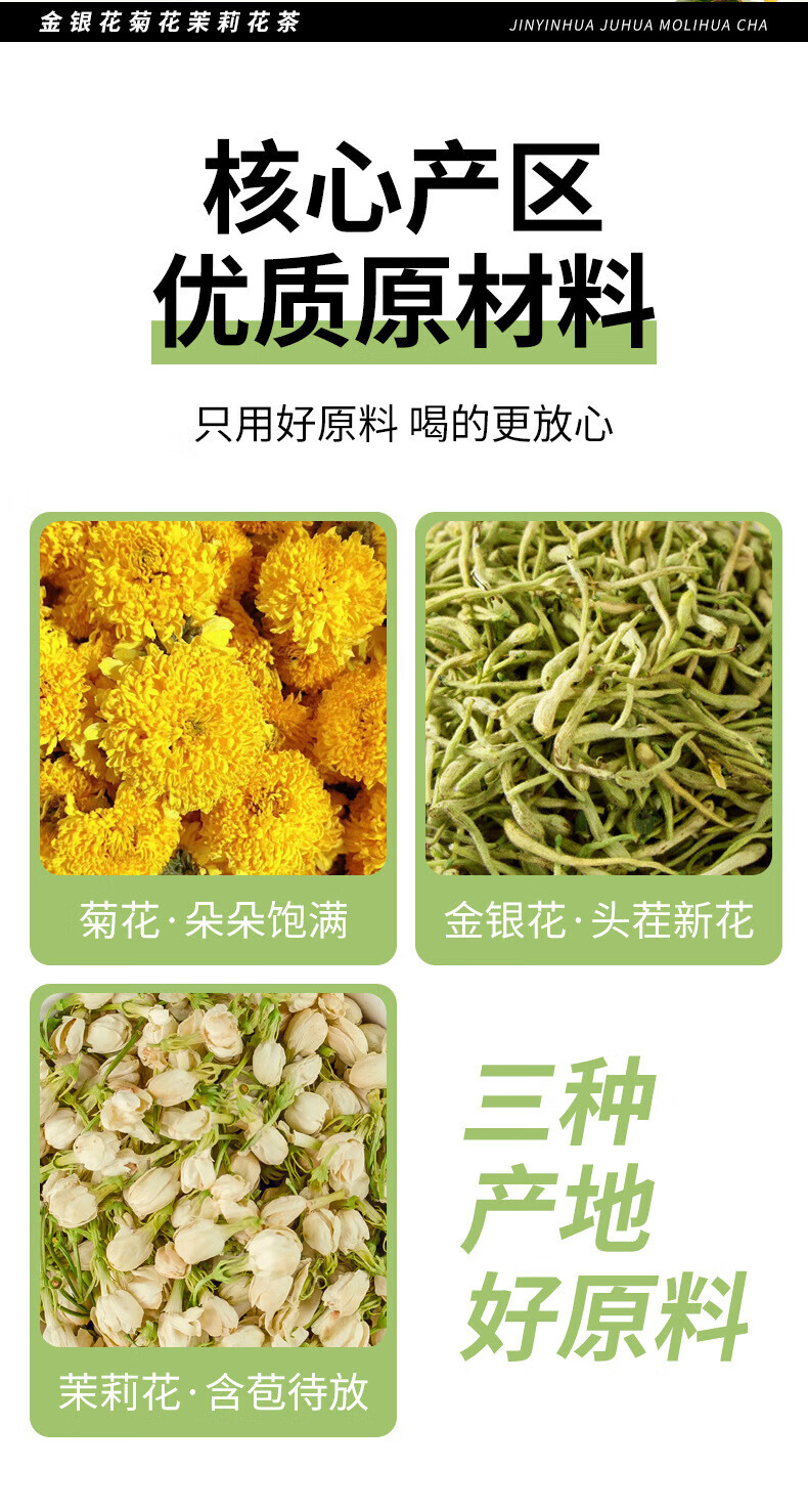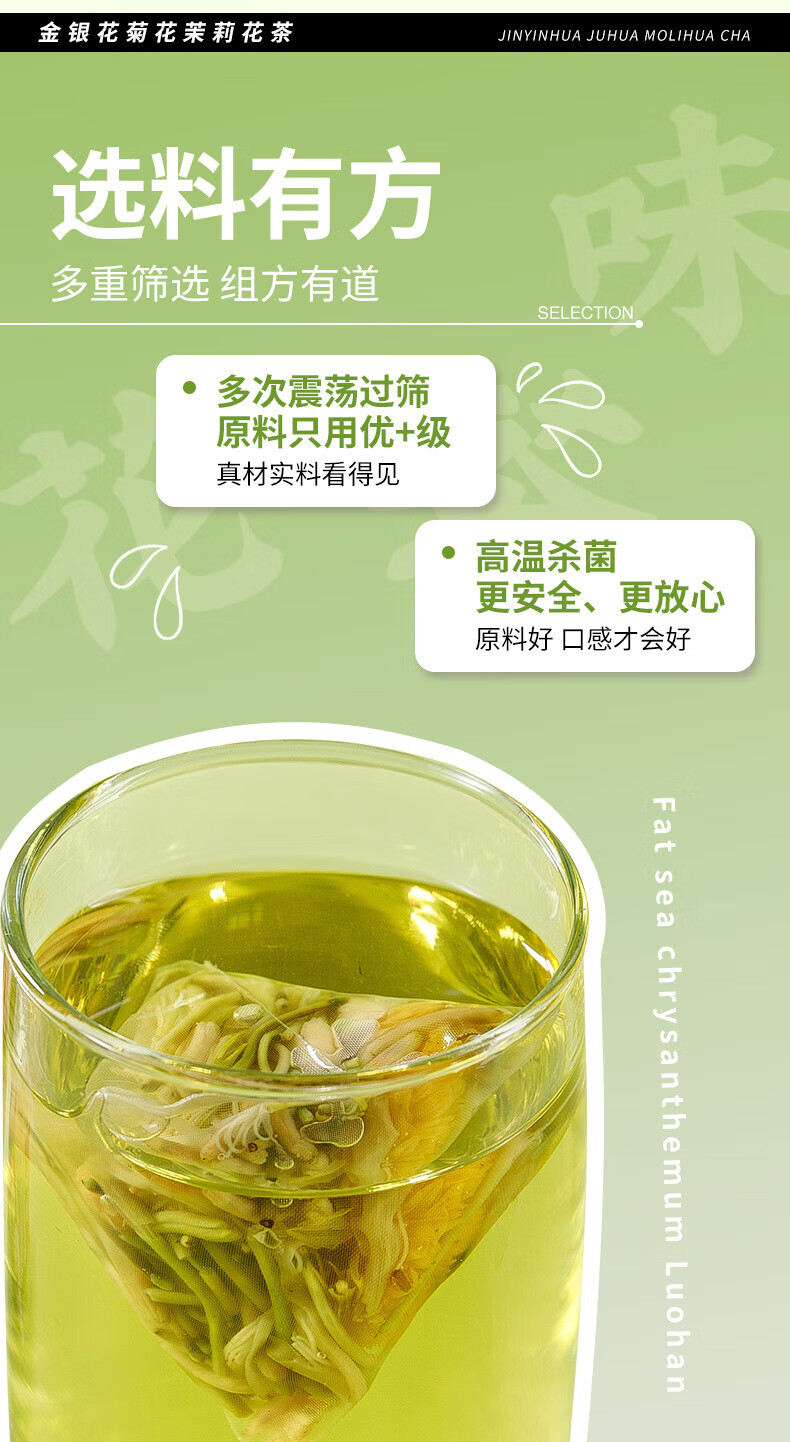 伯景堂金银花菊花茉莉花茶茶包组合三花茶独立三角包热水冲泡 【1袋10包】