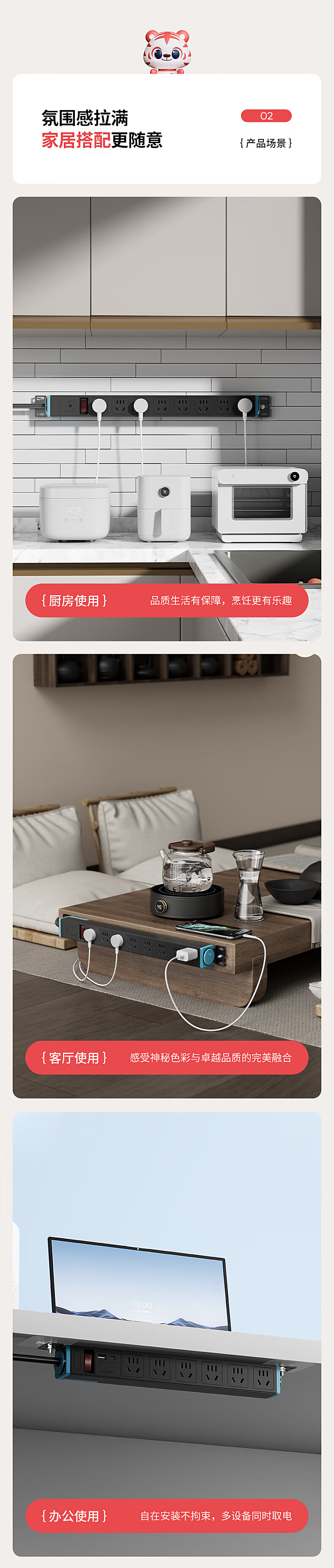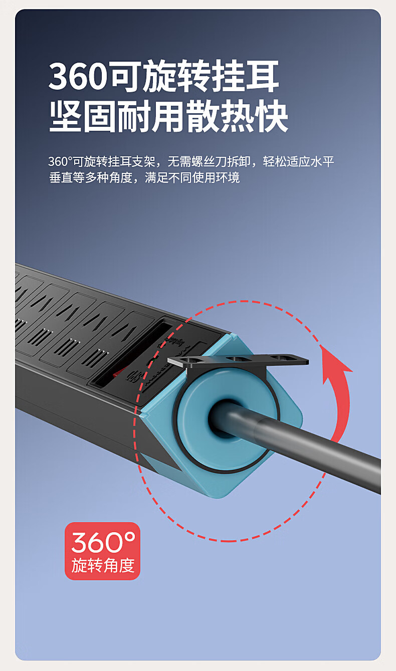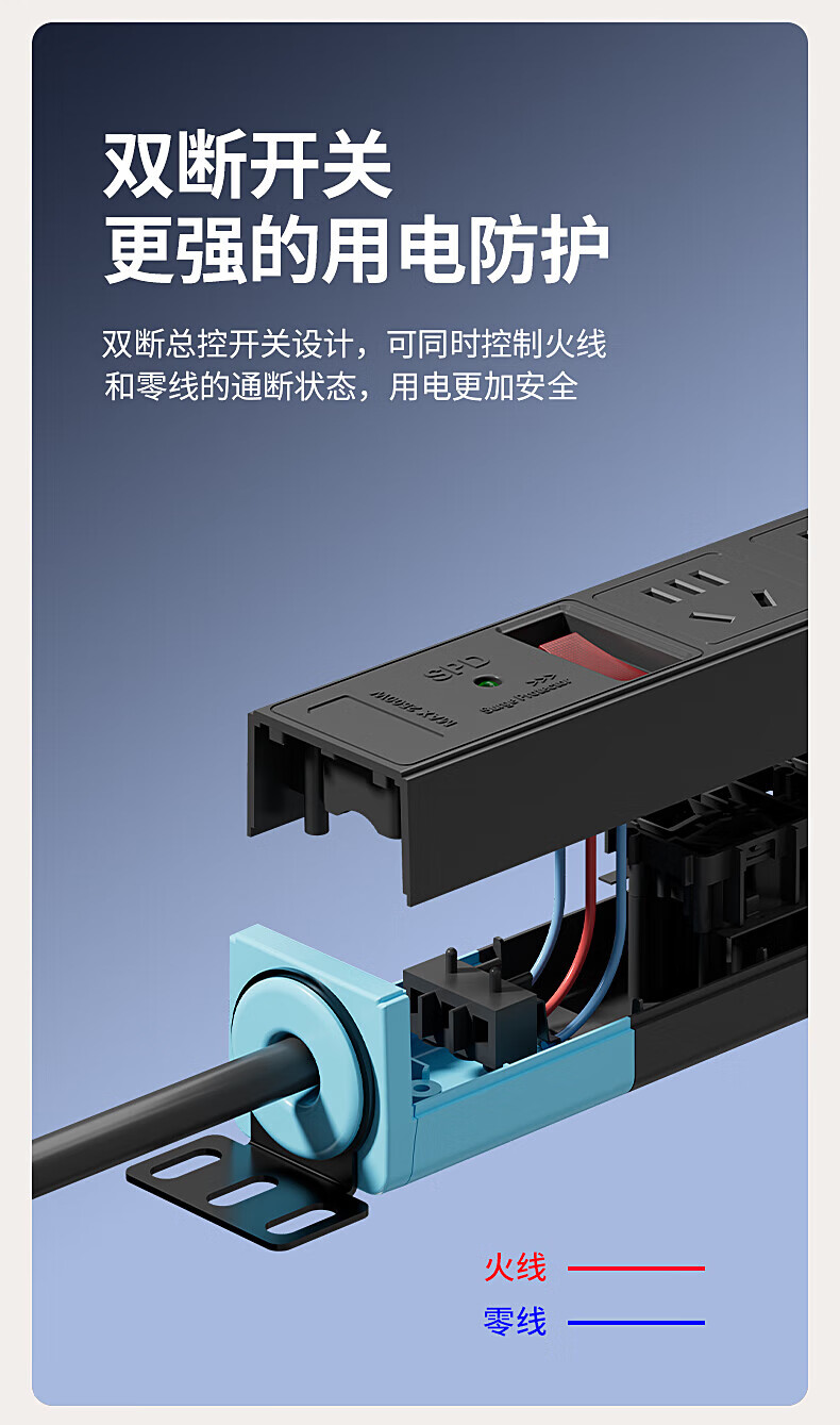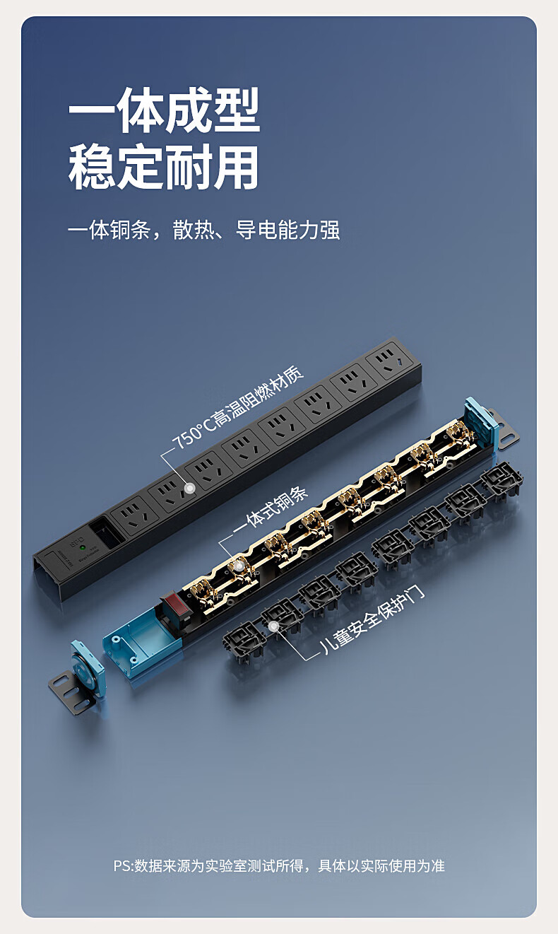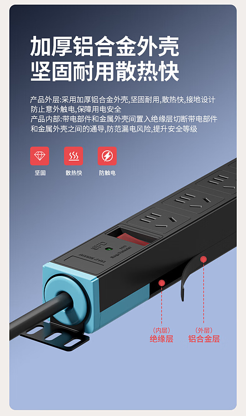 FDD国际电工PDU机柜排插机房插座过载保护新国标防雷接线板桌下家用电竞插座 六位过载保护插座(白色) 不带线