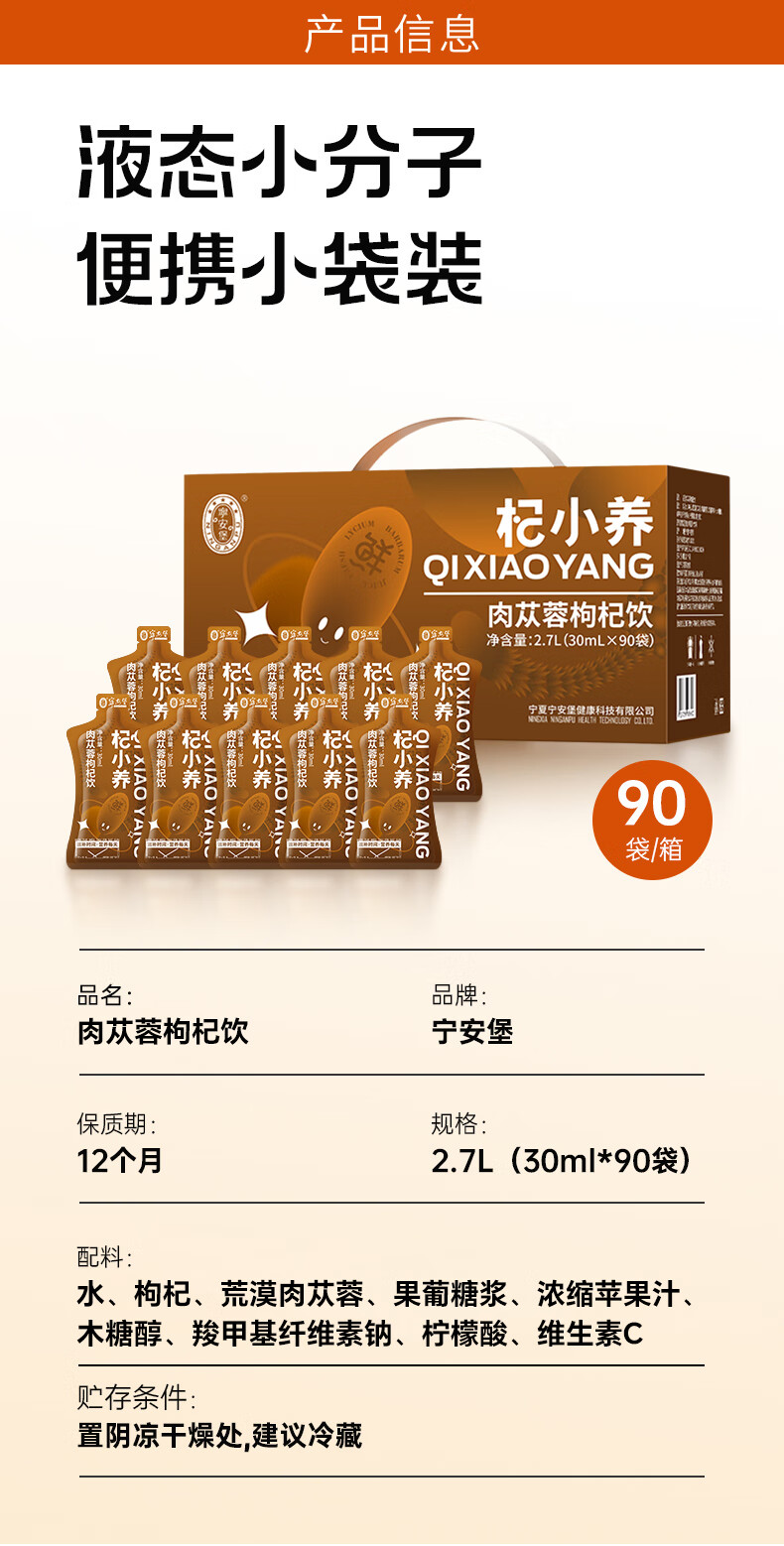 宁安堡肉苁蓉原浆 荒漠肉苁蓉枸杞原汁 便携装 专属男士原浆 90袋*1箱【升级礼盒装】